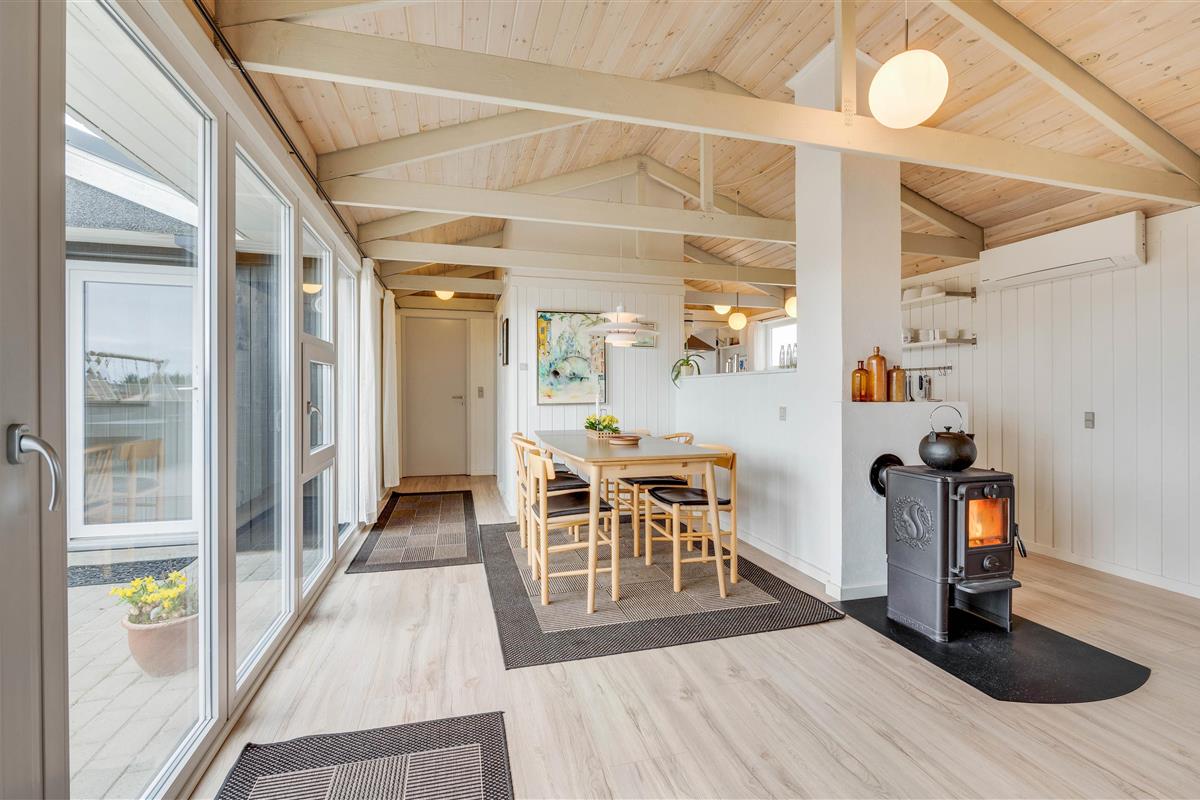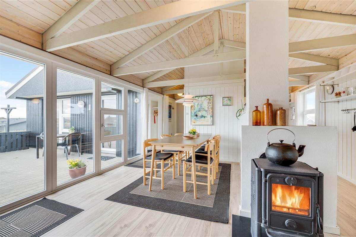 Located just 500 metres from the beach on Arvidvej 11, this holiday home enjoys an ideal position for a relaxing holiday on the Danish west coast. With its open-plan living space featuring a wood-burning stove and enclosed sunroom, this holiday home offers true comfort.