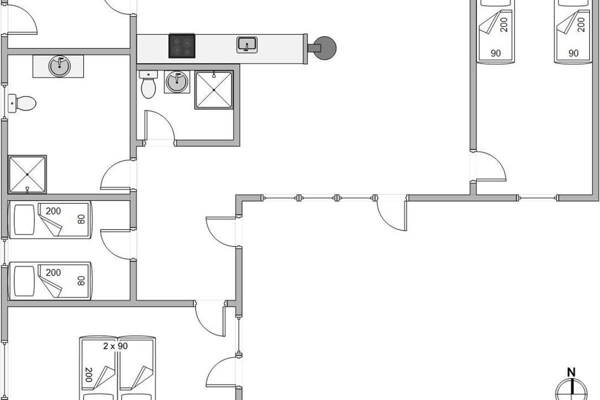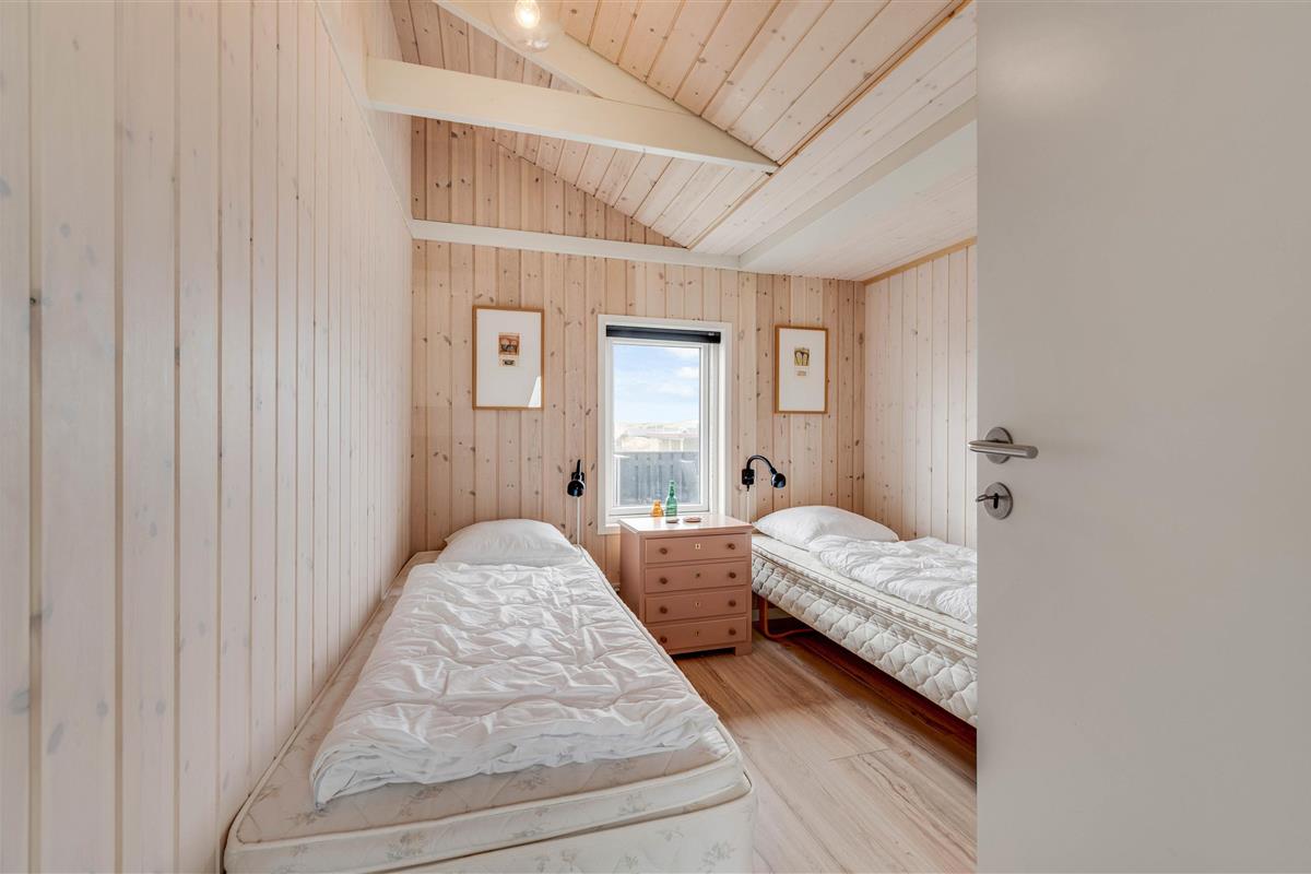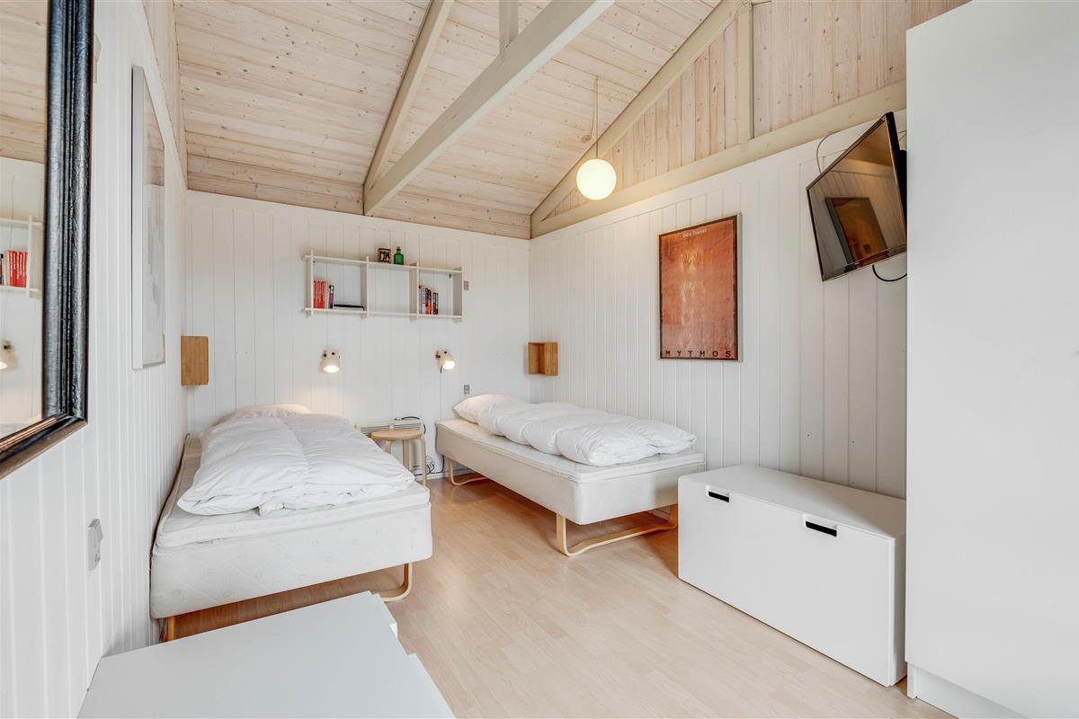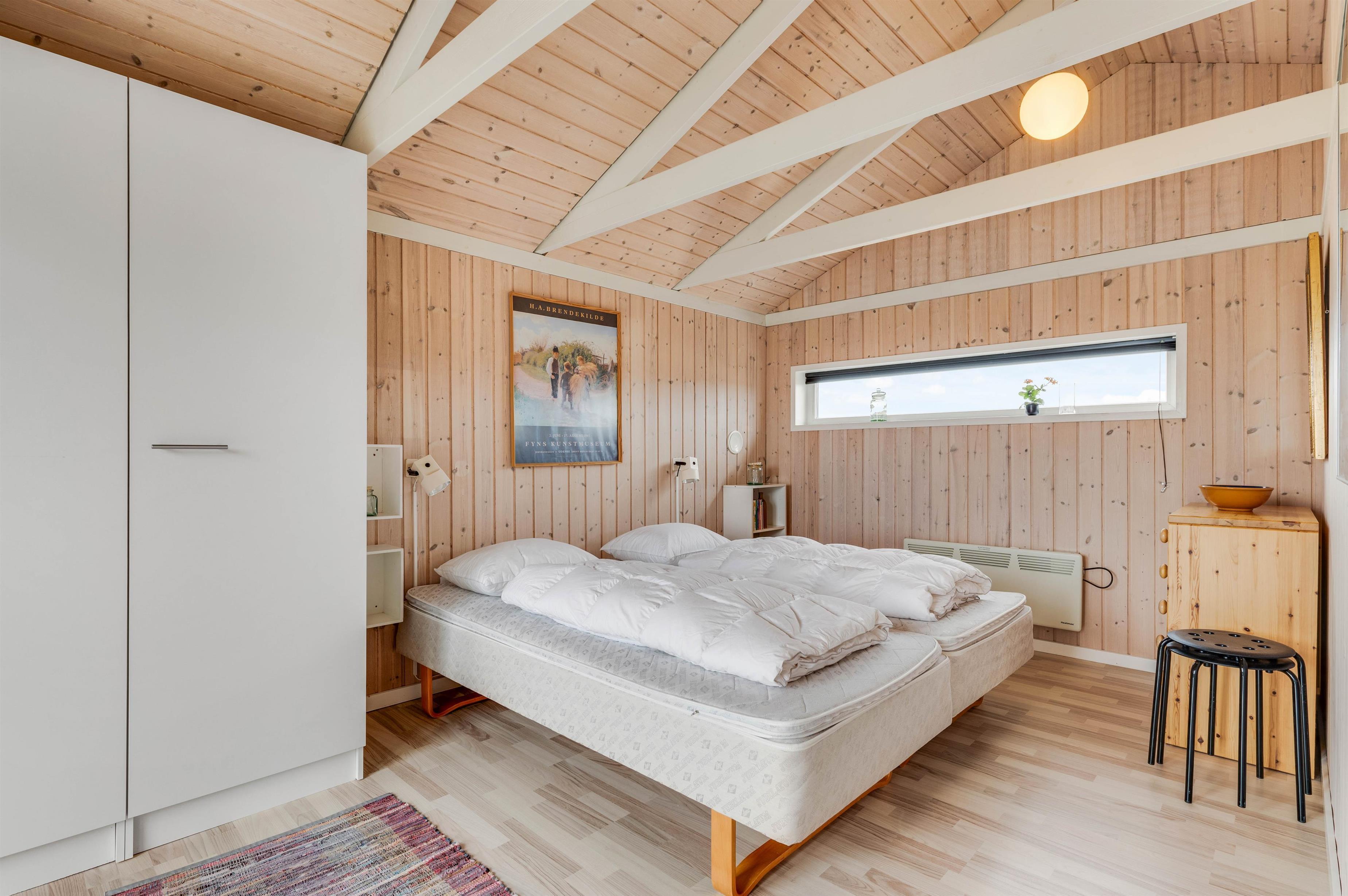 The holiday home features two modern bathrooms with underfloor heating. The three spacious bedrooms comprise one room with a double bed and two rooms with single beds, ensuring a peaceful night's sleep. The holiday home's heat pump provides an energy-efficient heating method.