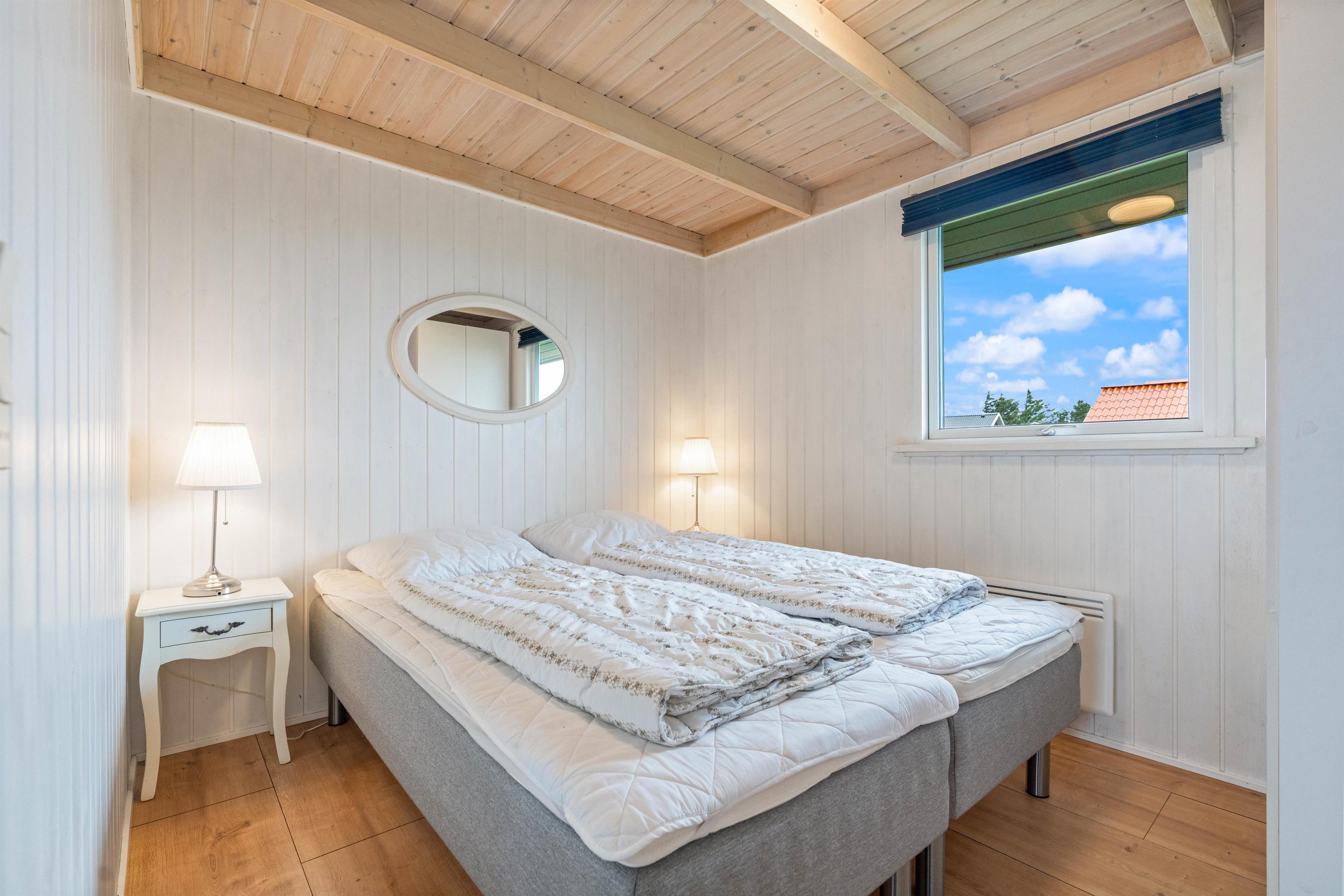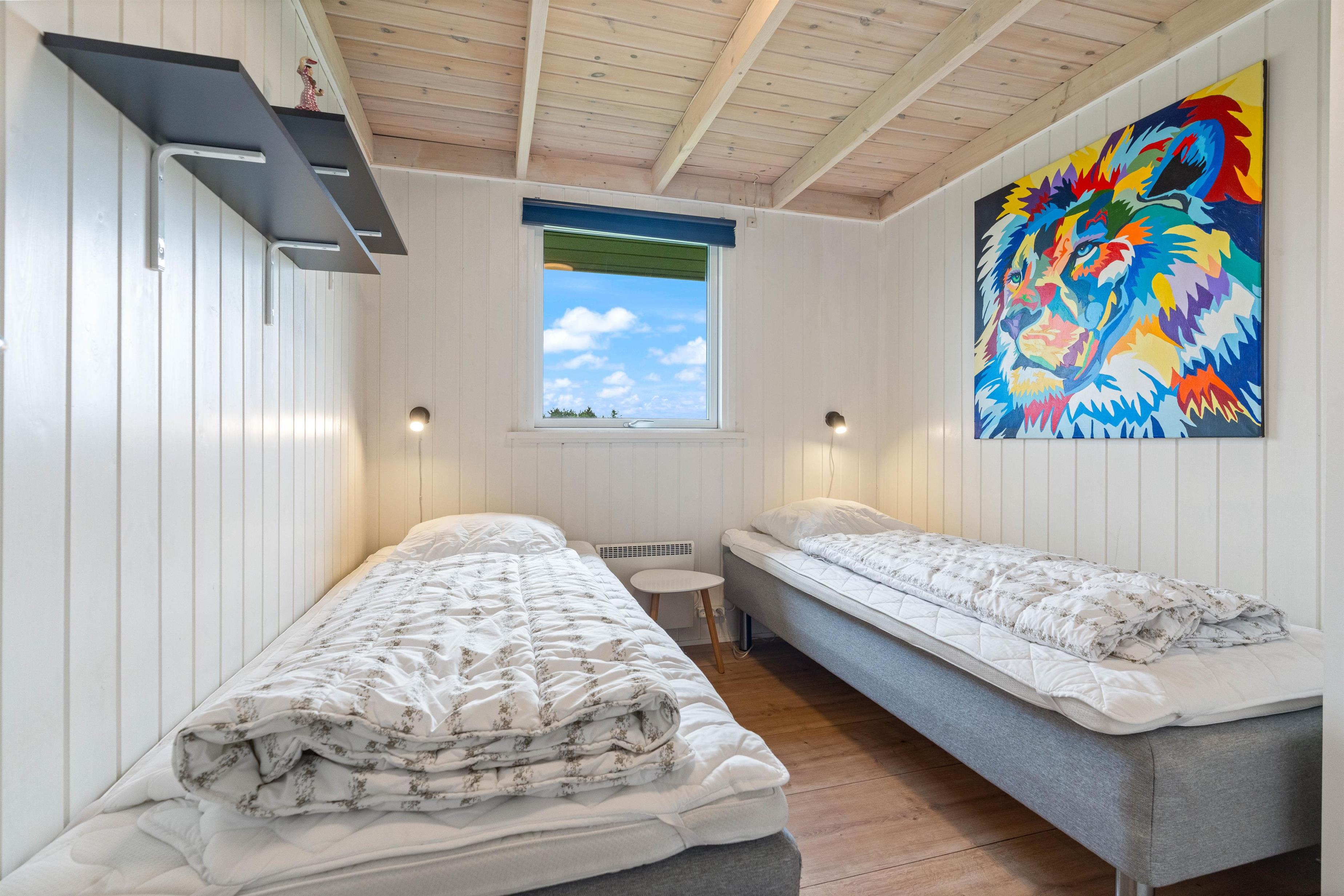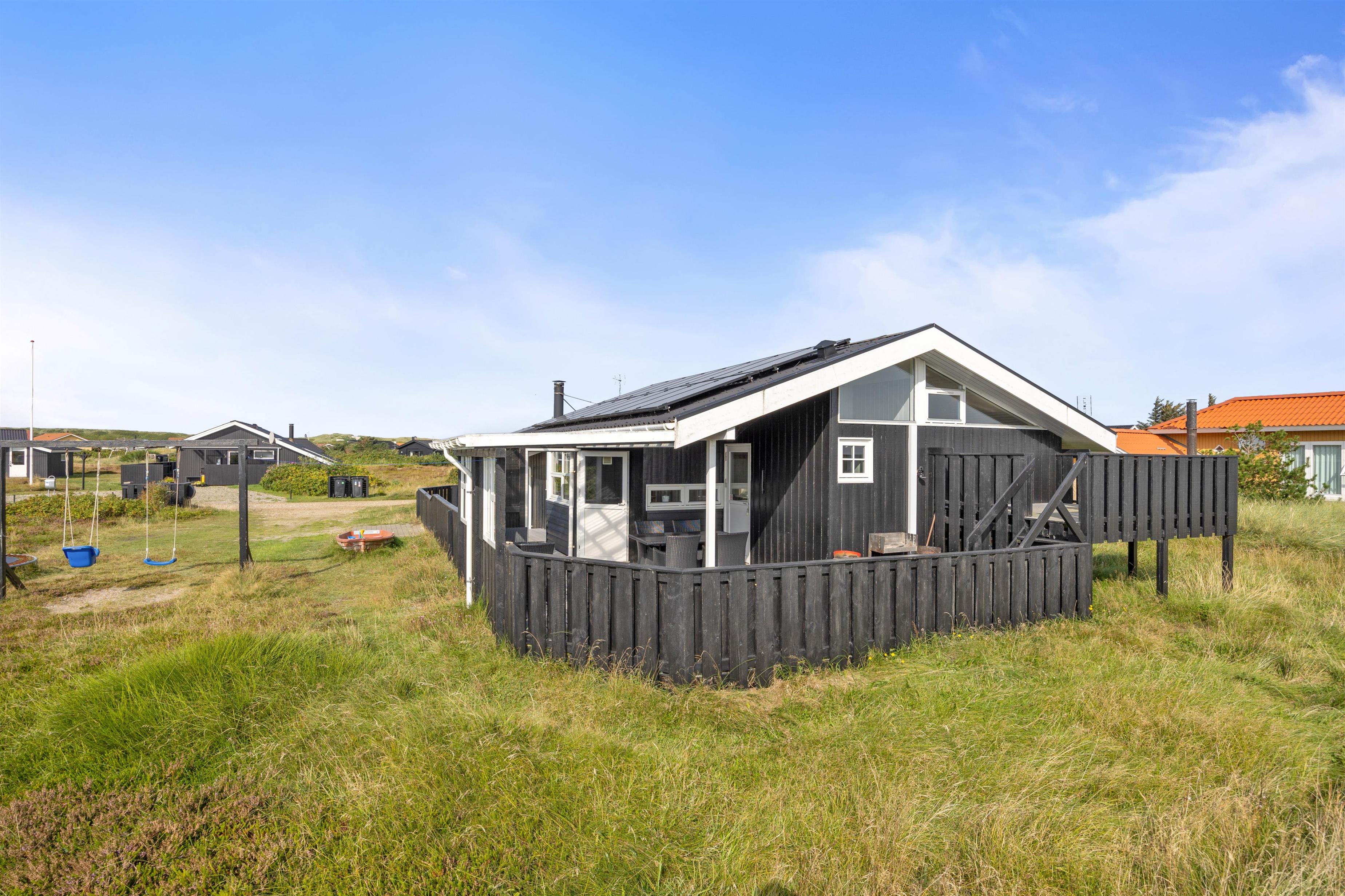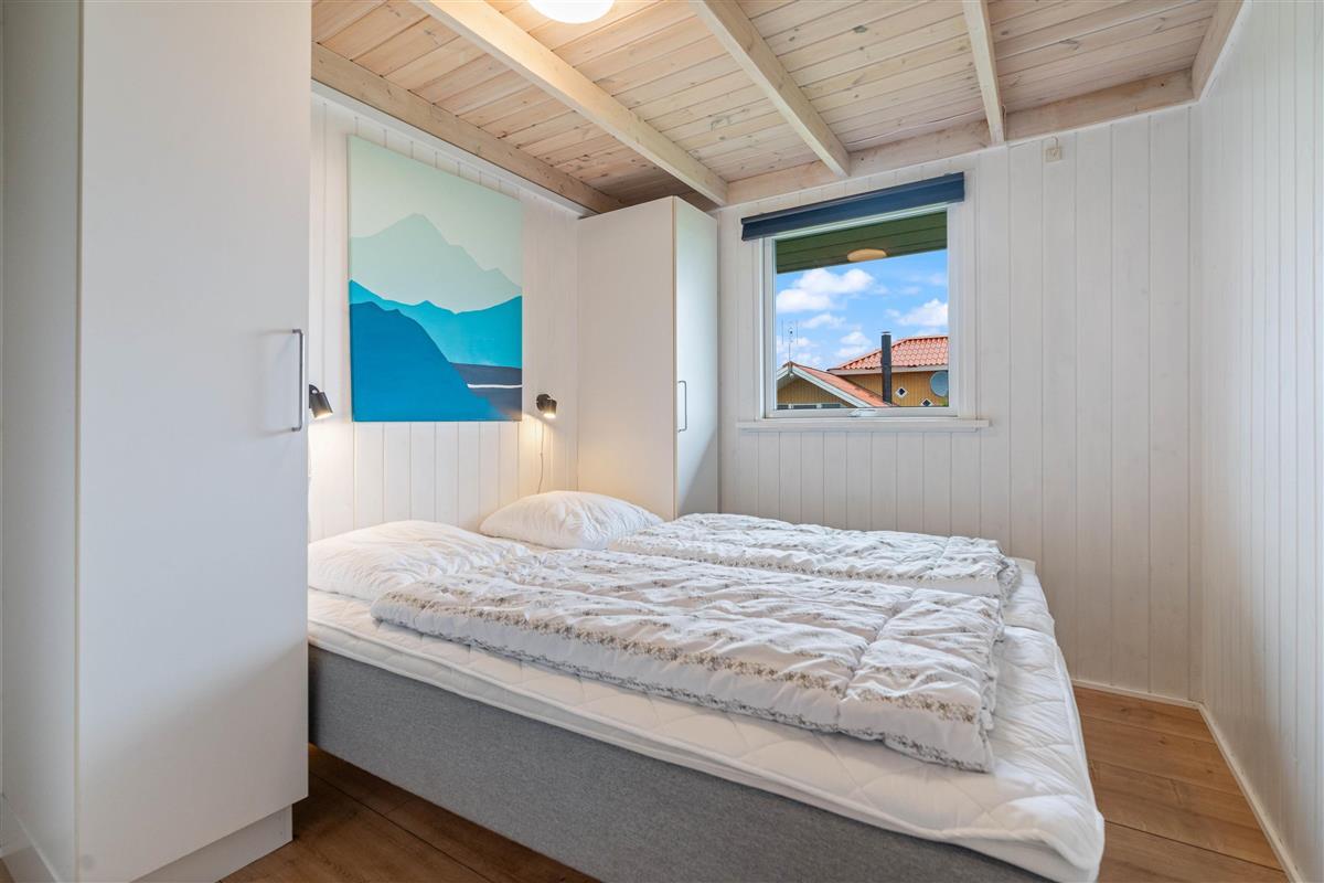 Located at Auroravej 4, this 110-square-metre holiday home accommodates up to 6 guests and was renovated in 2023. Your two dogs are also welcome here. The 6 beds are distributed across 3 beautiful bedrooms, all featuring comfortable beds and plenty of storage space. Conveniently, there's also an extra room with sliding door wardrobes and a large loft for playing. The youngest family members will surely feel at home here.