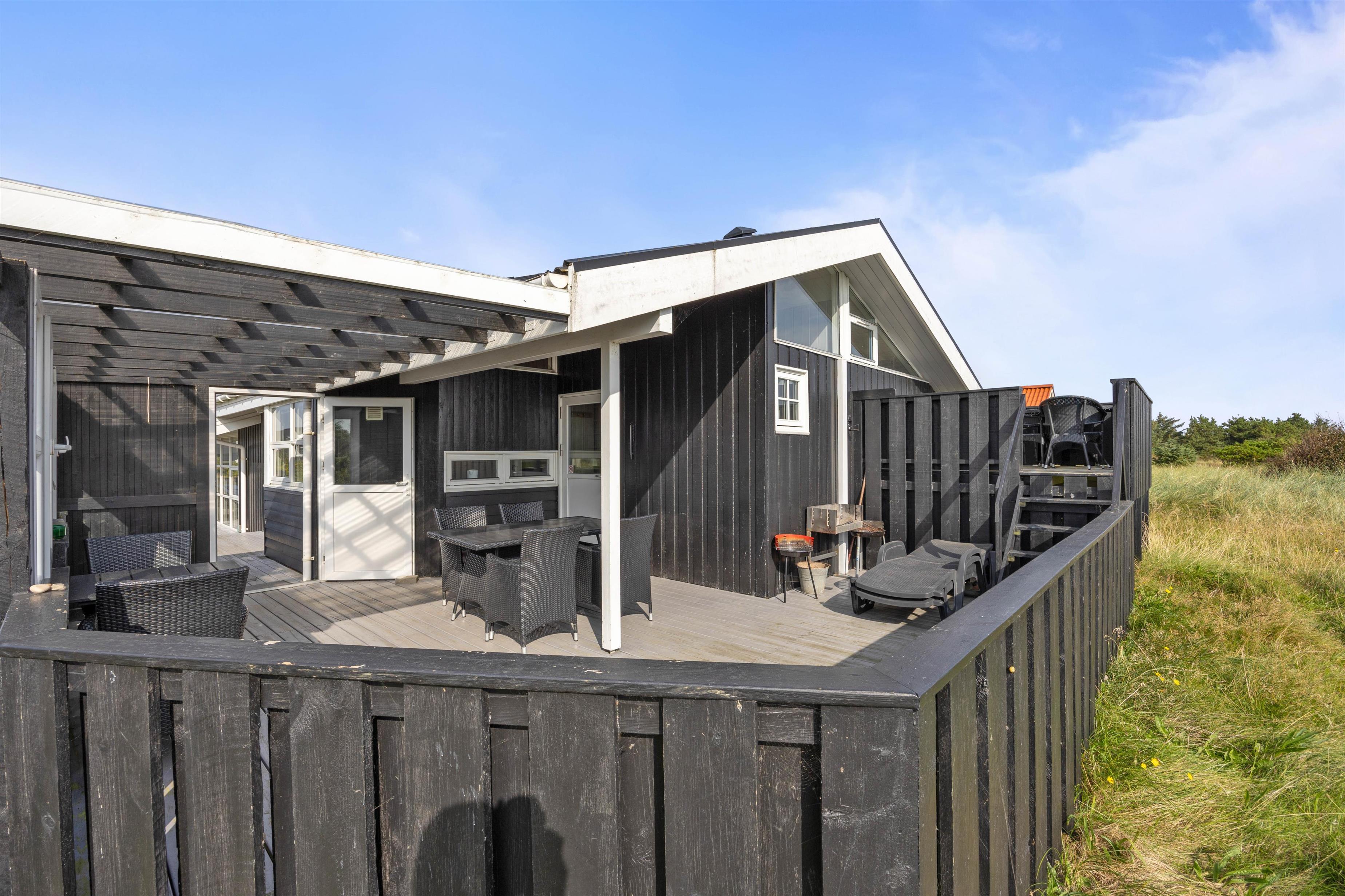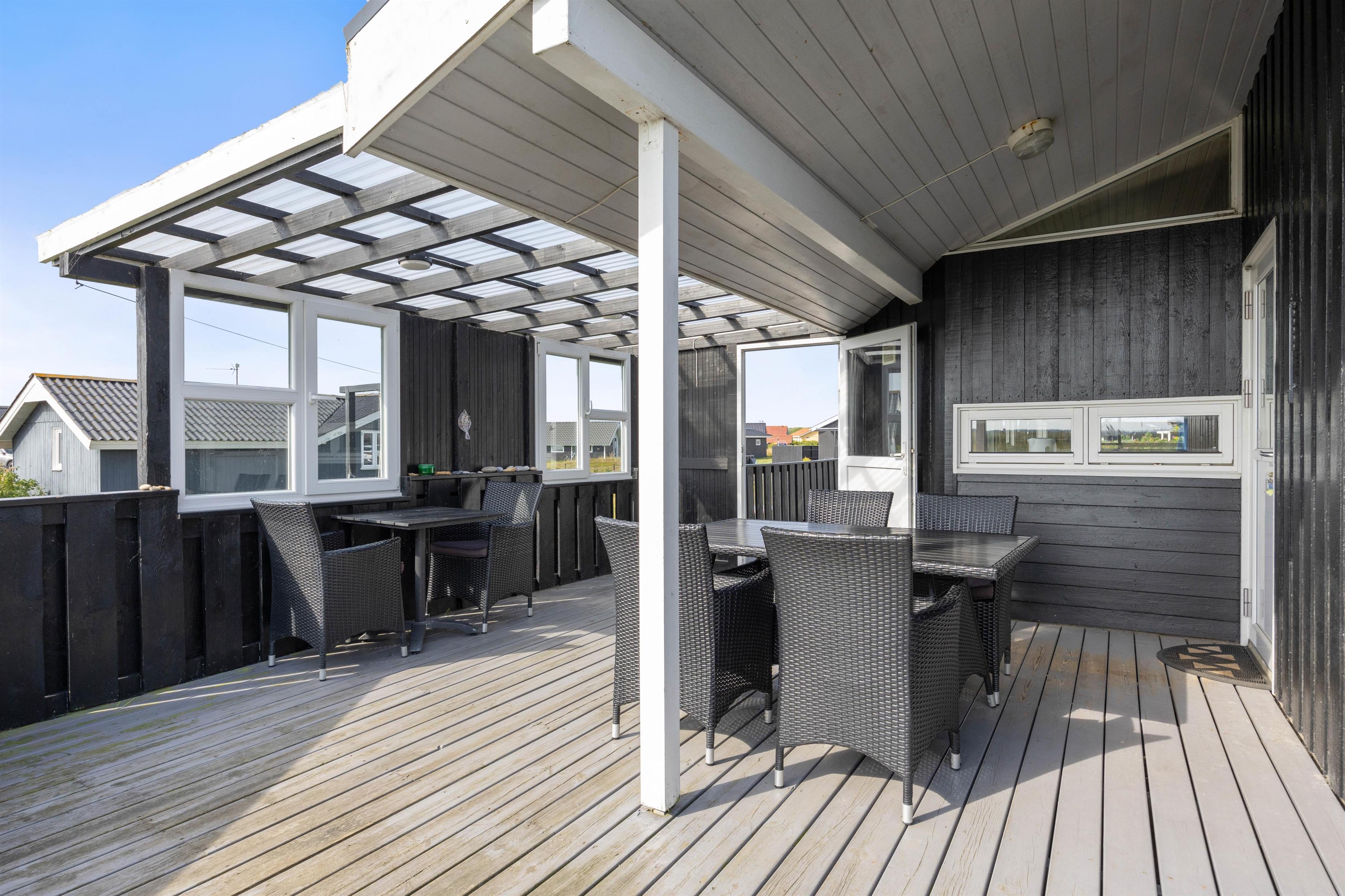The outdoor area of your holiday home is equally appealing. Here you can enjoy the sunshine, relax and plan your holiday excursions. The holiday home is surrounded on several sides by a beautiful terrace that is fenced and partially covered. It's perfect for a barbecue lunch - perhaps with freshly grilled fish.