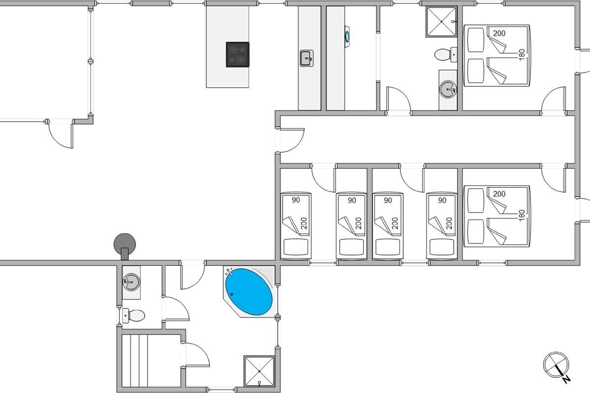 A comfortable holiday retreat awaits you at Midtvej 14, Bjerregård. Newly renovated in 2024, this welcoming holiday home offers a spacious 121 square metres of living space. Accommodating up to 8 guests for a well-deserved holiday, it also warmly welcomes your four-legged friend. Immerse yourself in the tranquility and beauty of the Danish west coast, enjoying relaxation in the sauna and whirlpool.