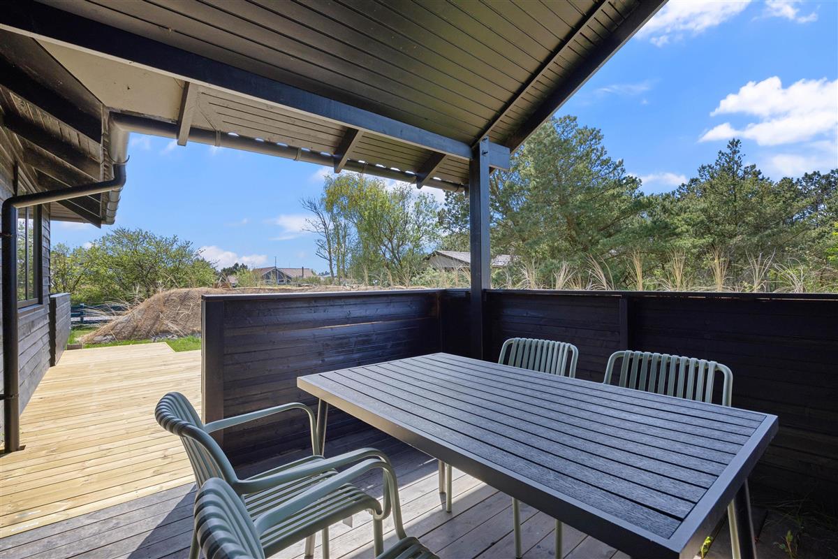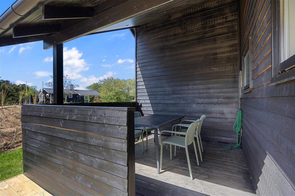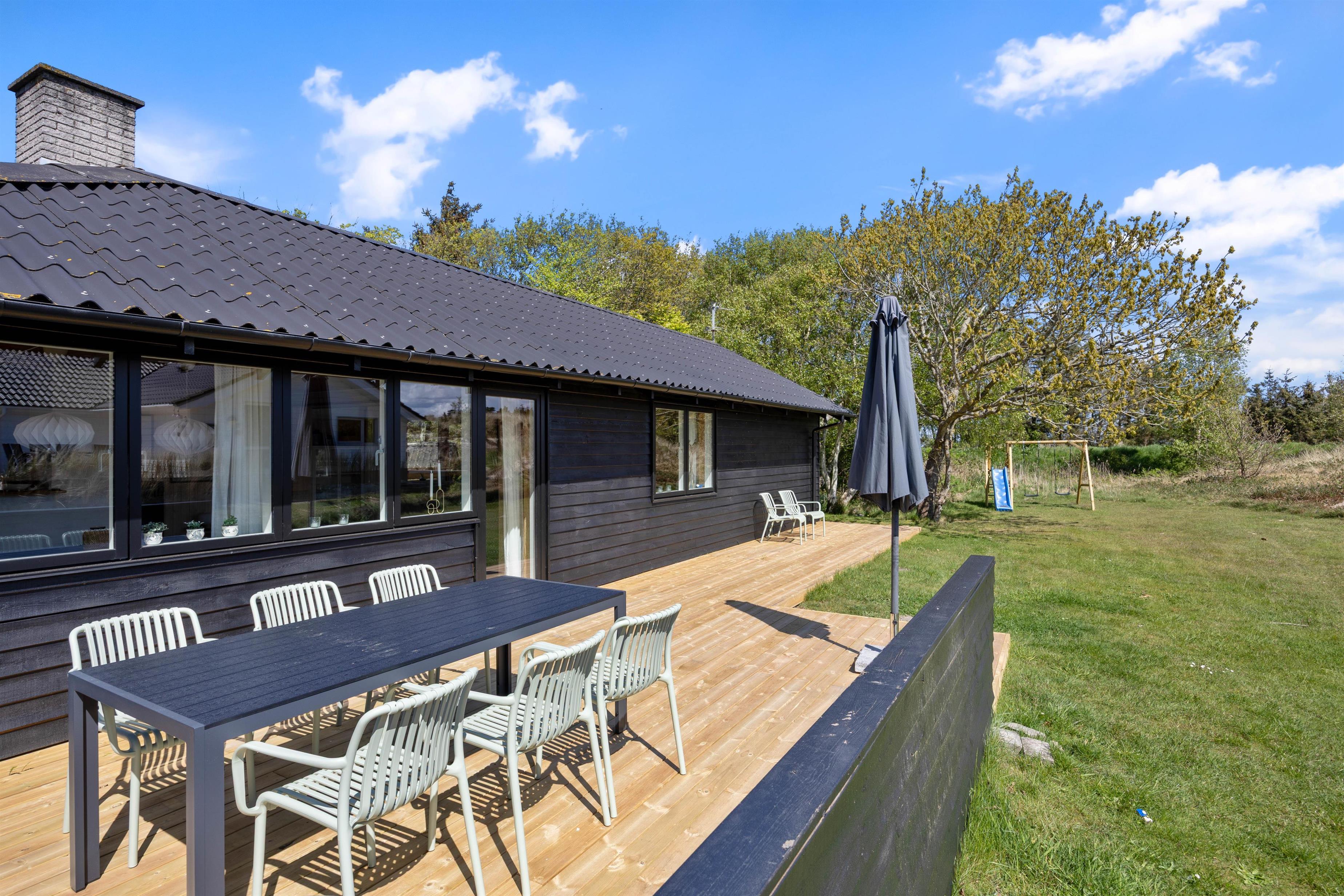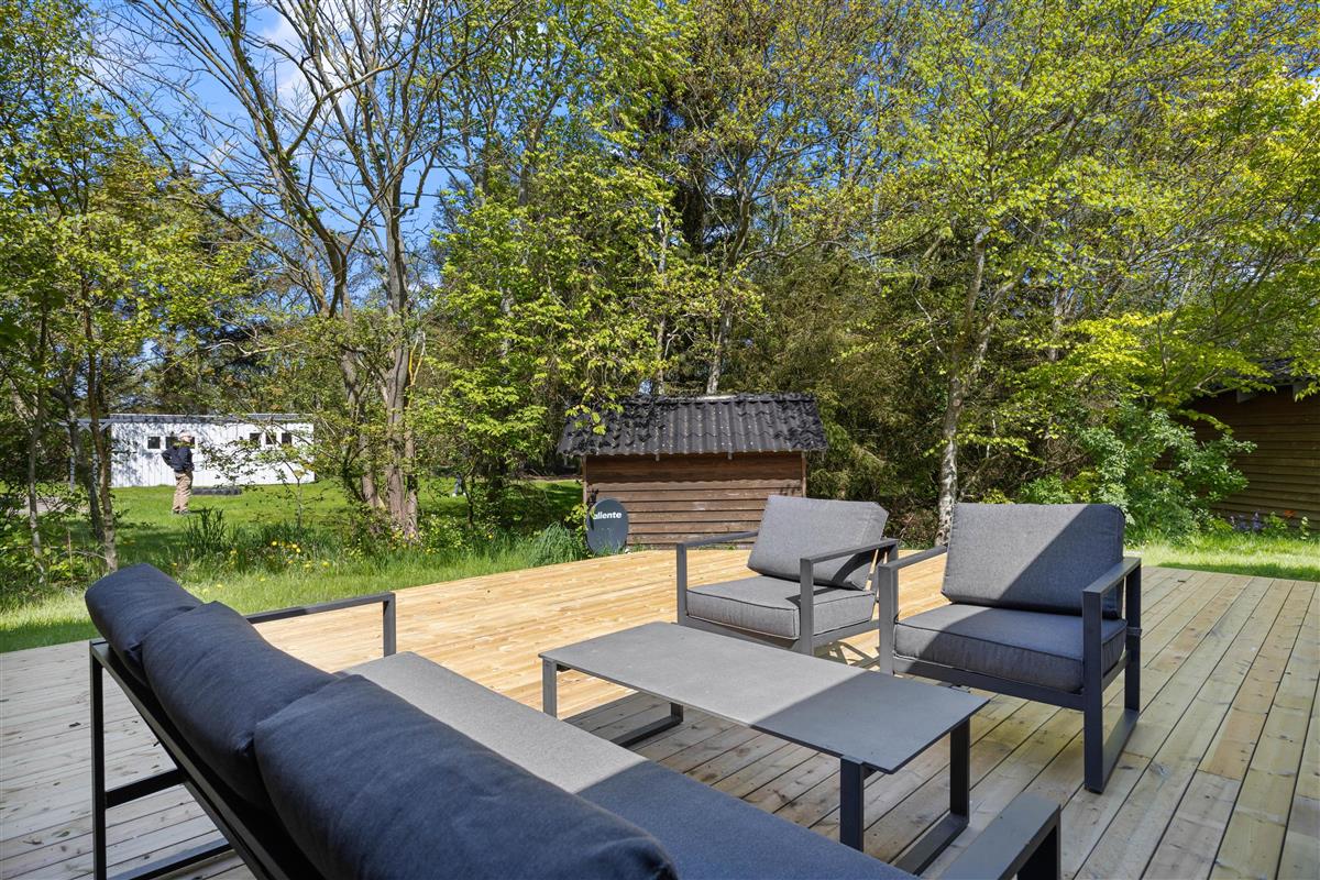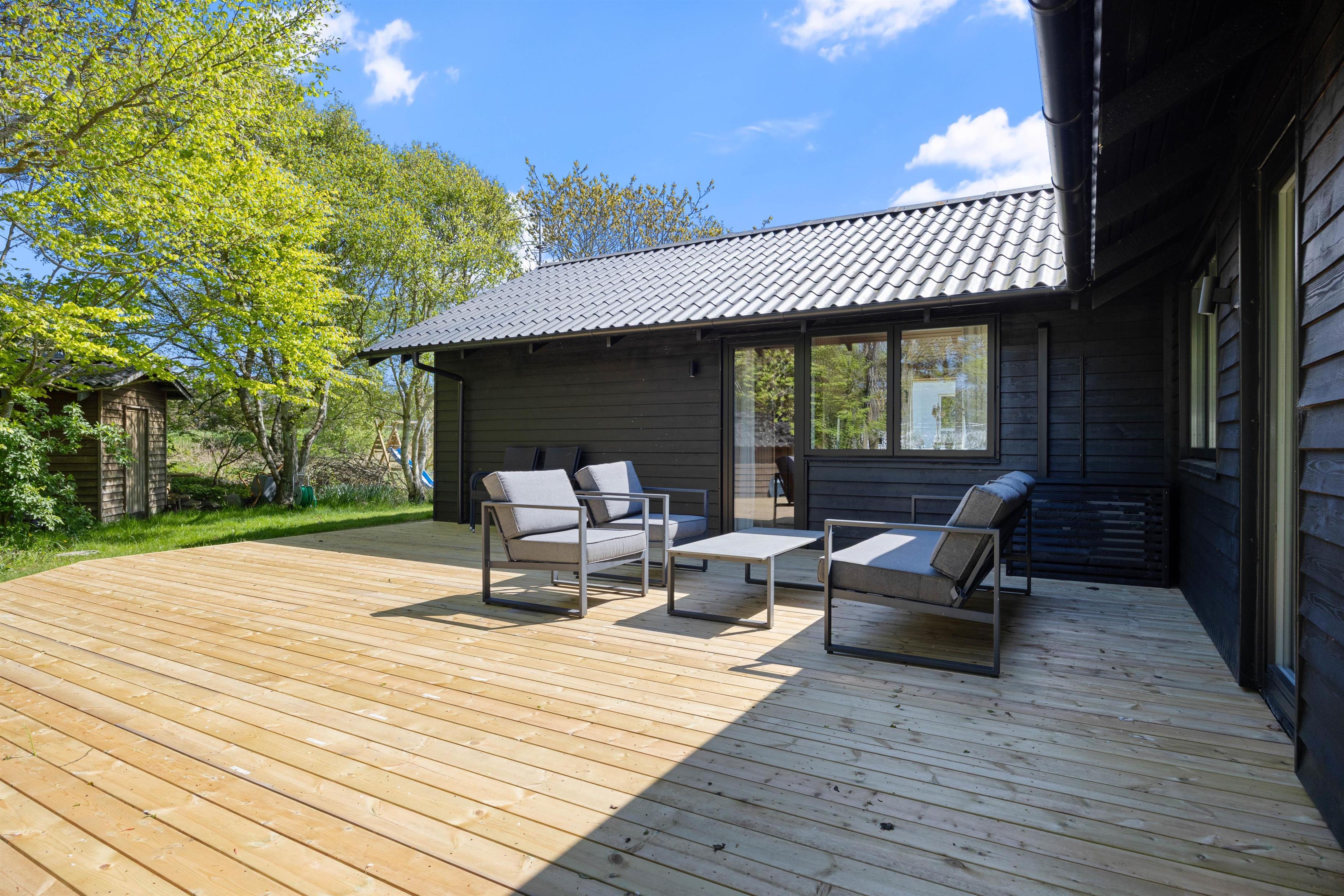 Outside, you're surrounded by verdant nature. The terrace has both open and covered areas, ensuring you'll always find a comfortable spot to relax. Enjoy a game of football or Viking chess (Kubb). It's a perfect space for both young and old to be active.