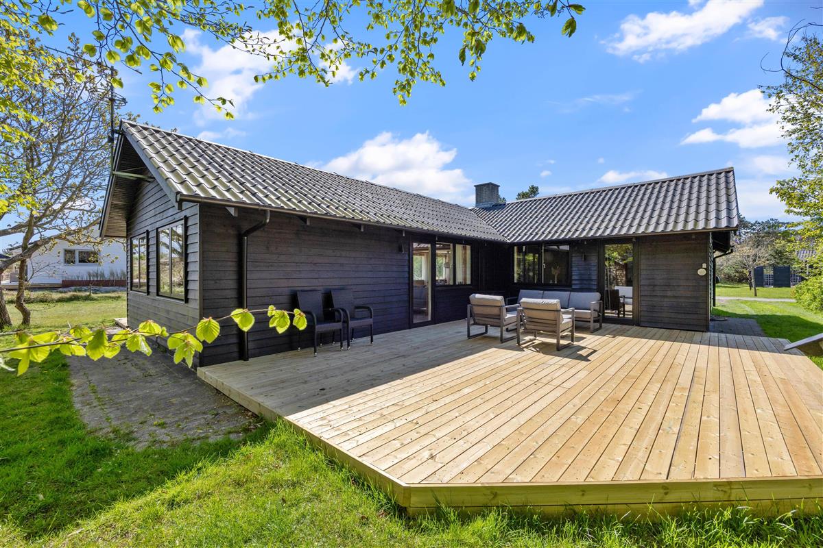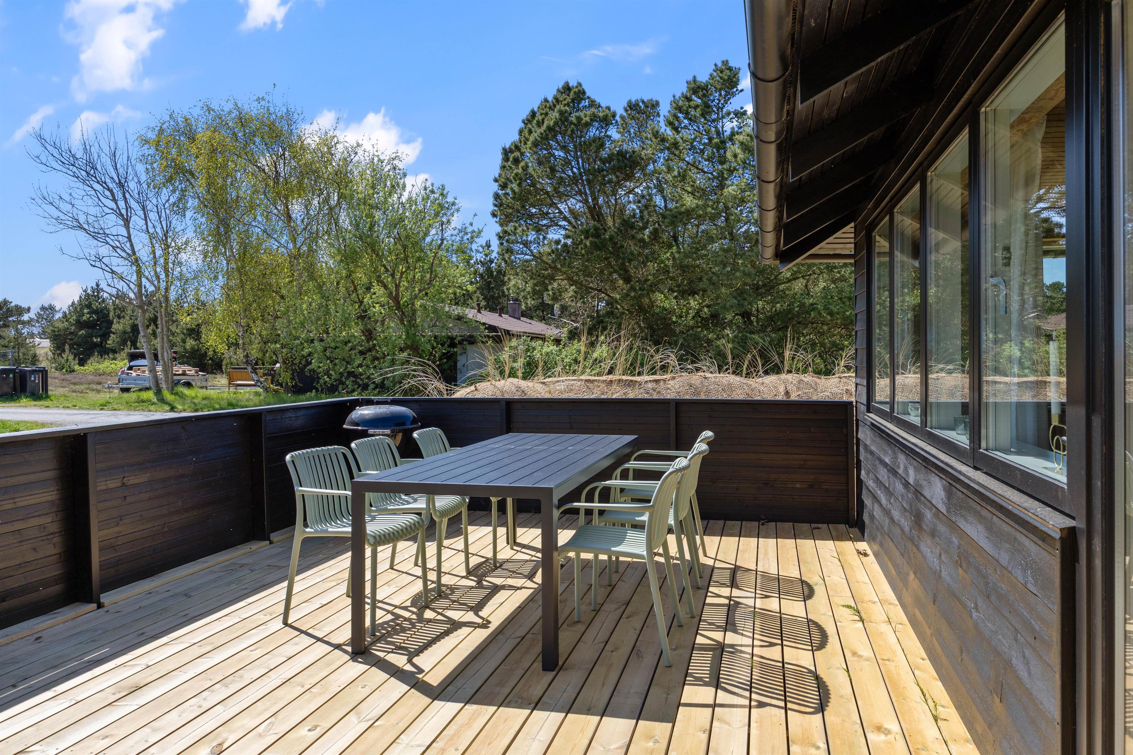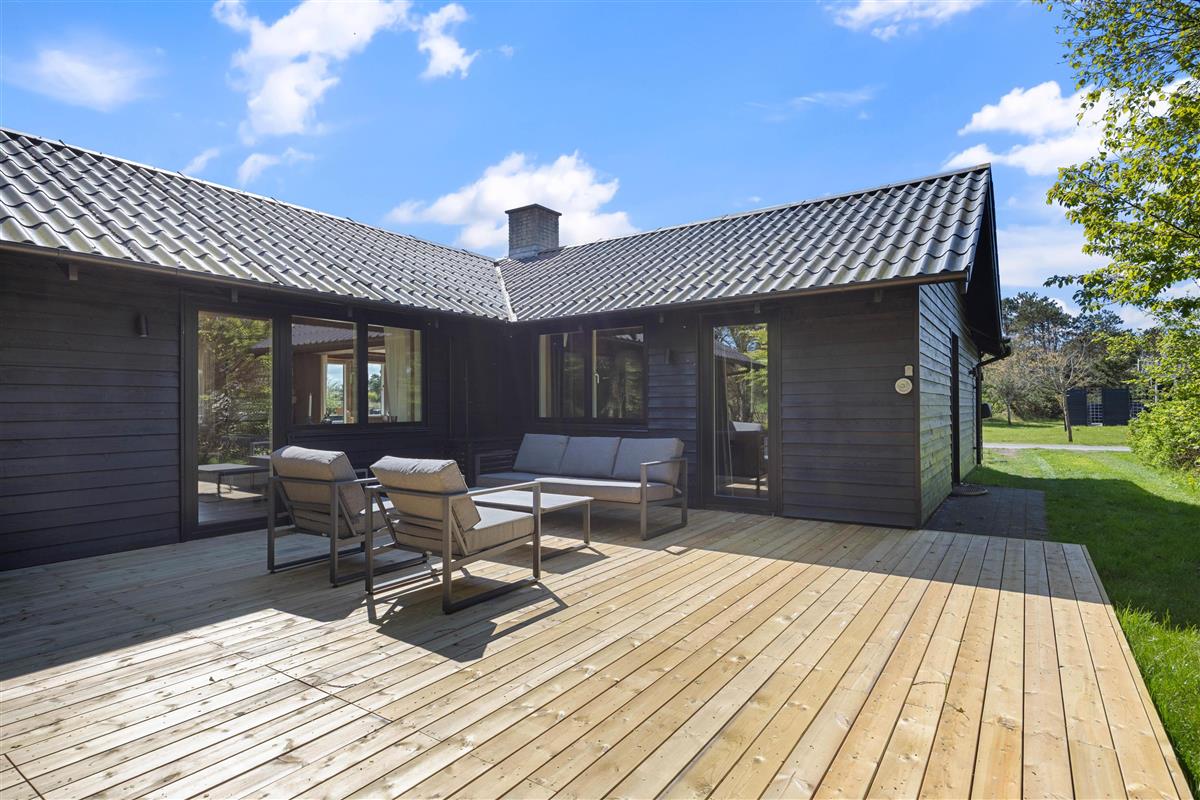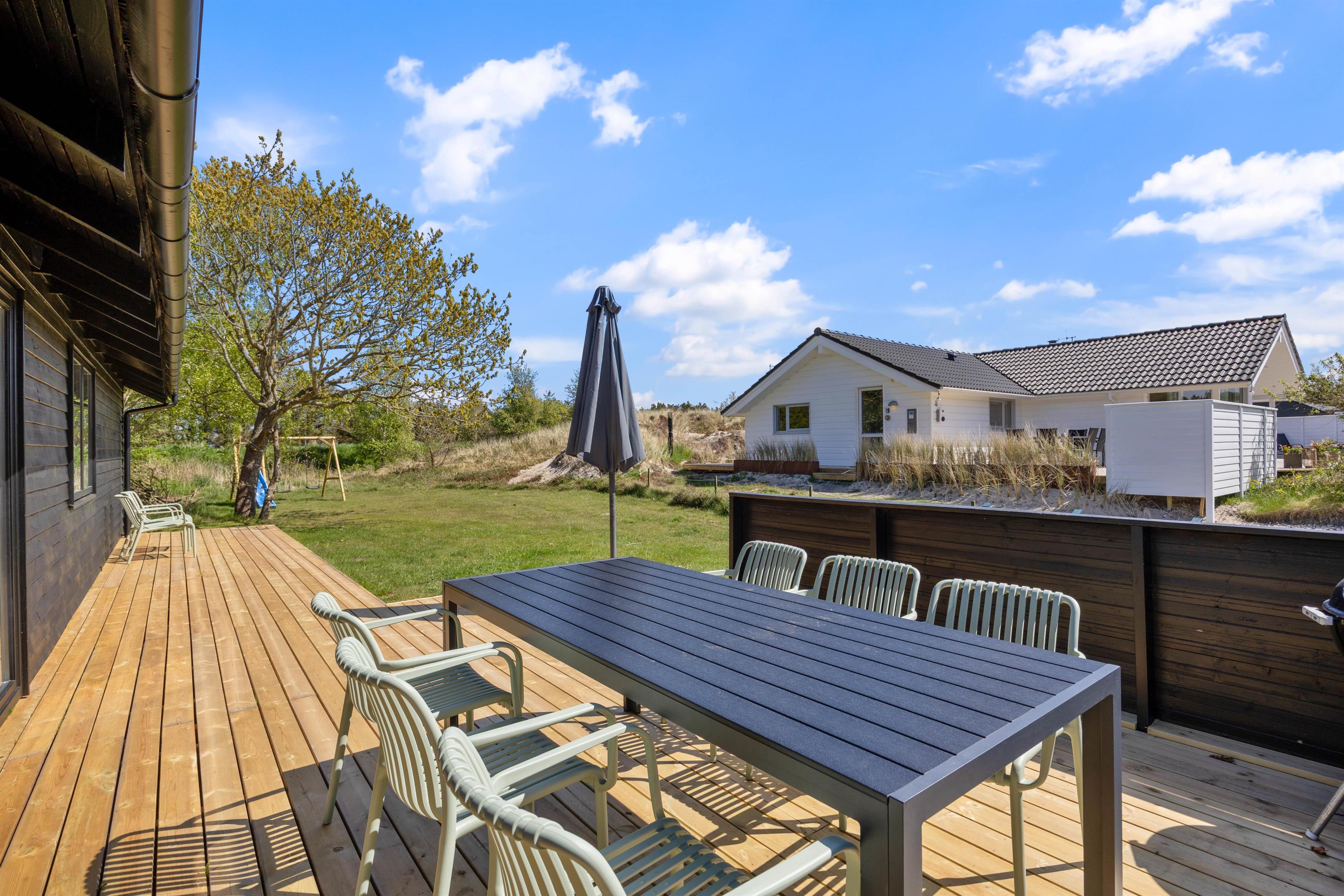 Outside, you're surrounded by verdant nature. The terrace has both open and covered areas, ensuring you'll always find a comfortable spot to relax. Enjoy a game of football or Viking chess (Kubb). It's a perfect space for both young and old to be active.