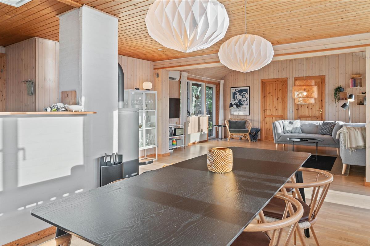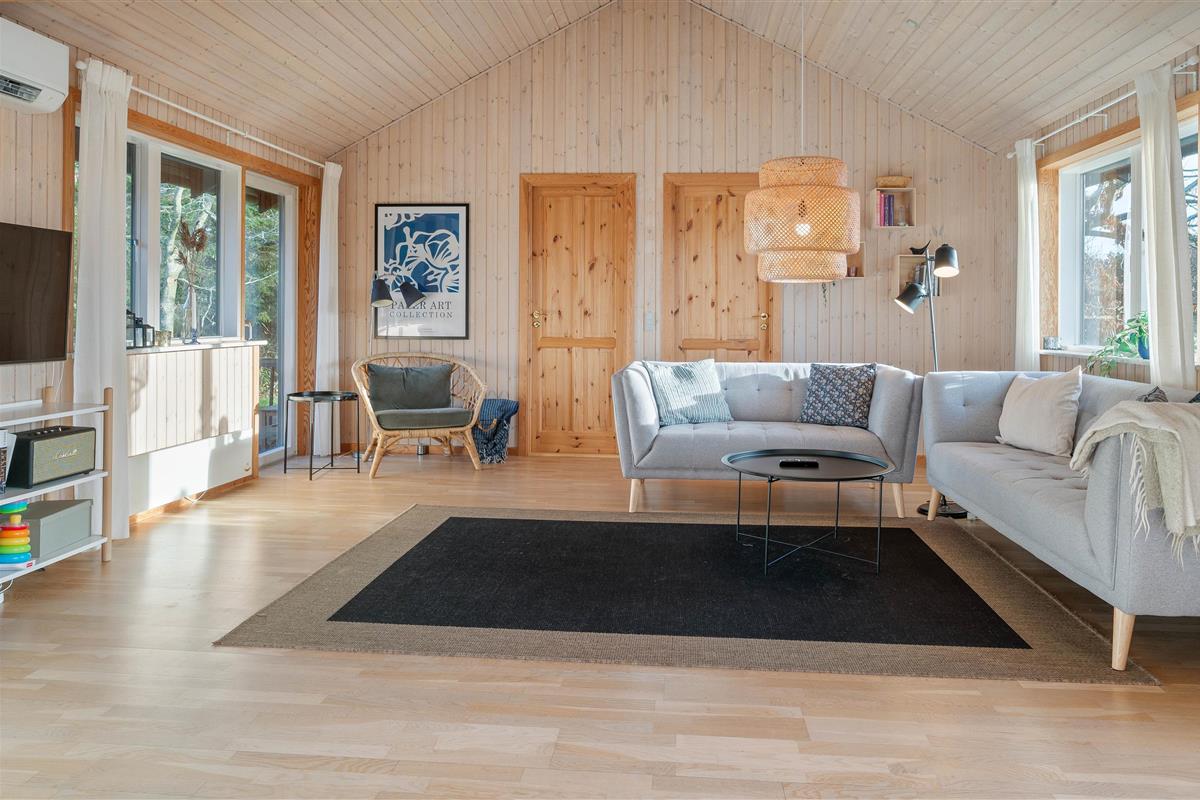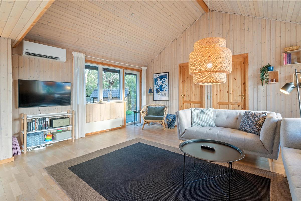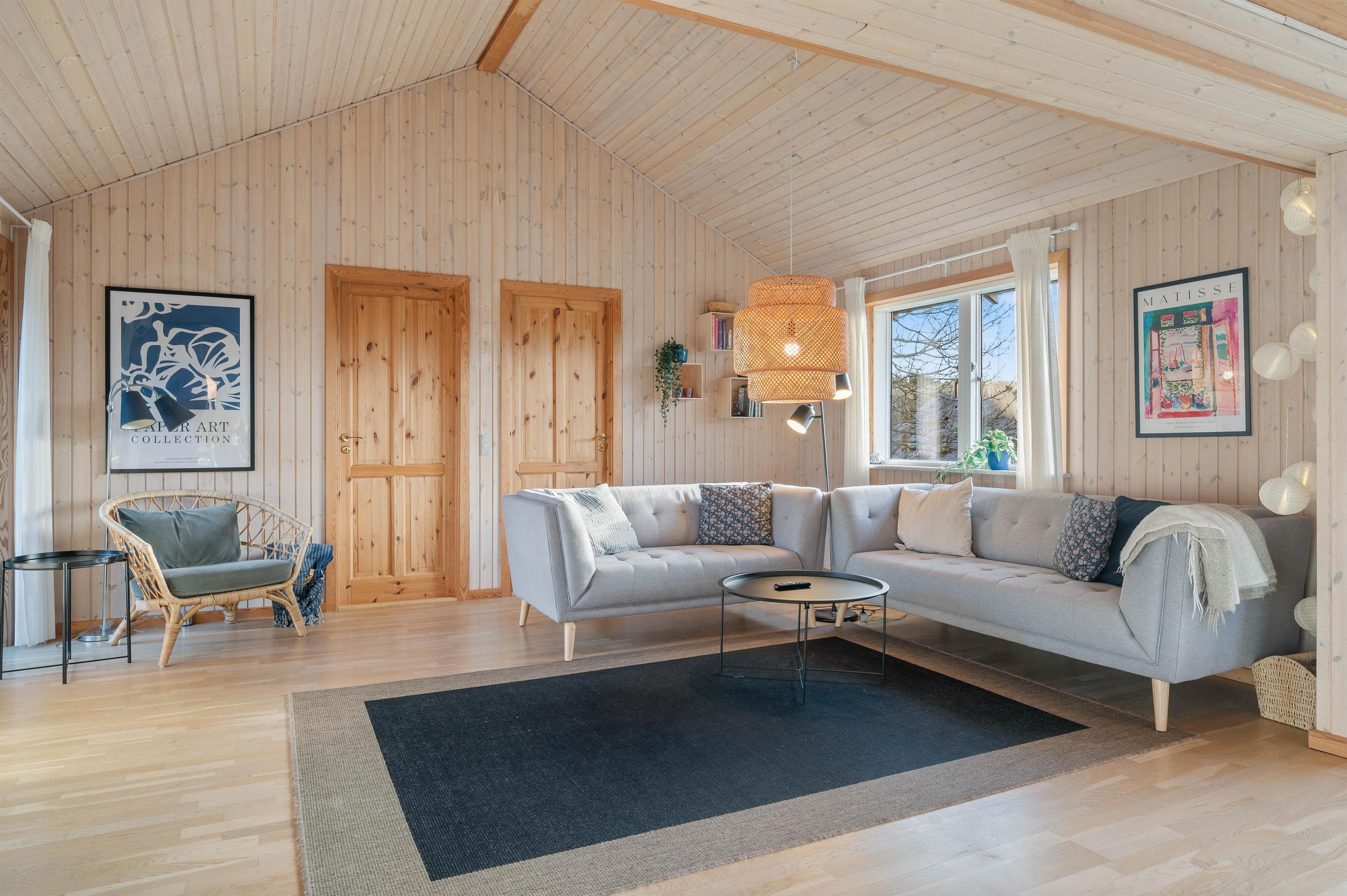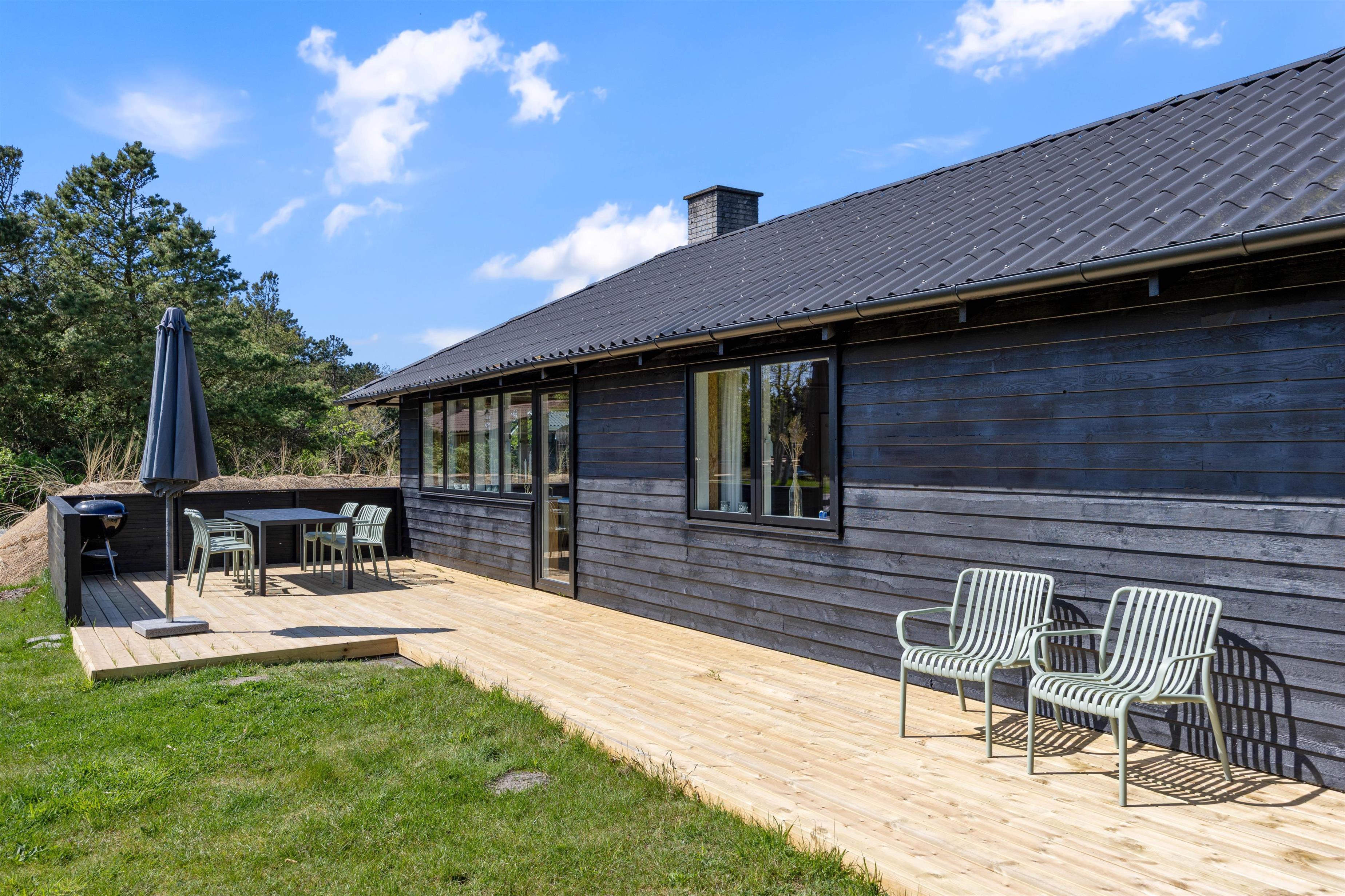 Outside, you're surrounded by verdant nature. The terrace has both open and covered areas, ensuring you'll always find a comfortable spot to relax. Enjoy a game of football or Viking chess (Kubb). It's a perfect space for both young and old to be active.
