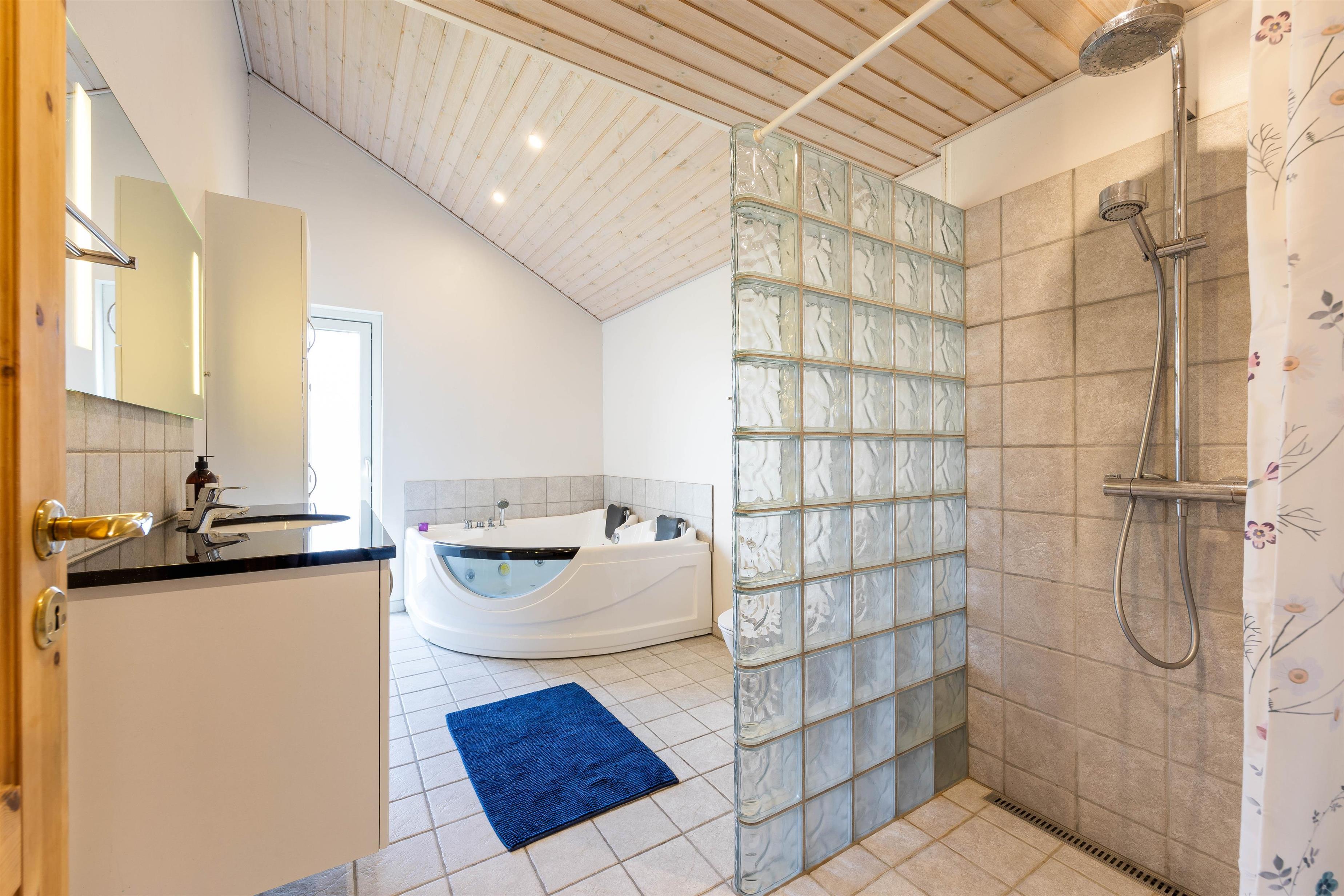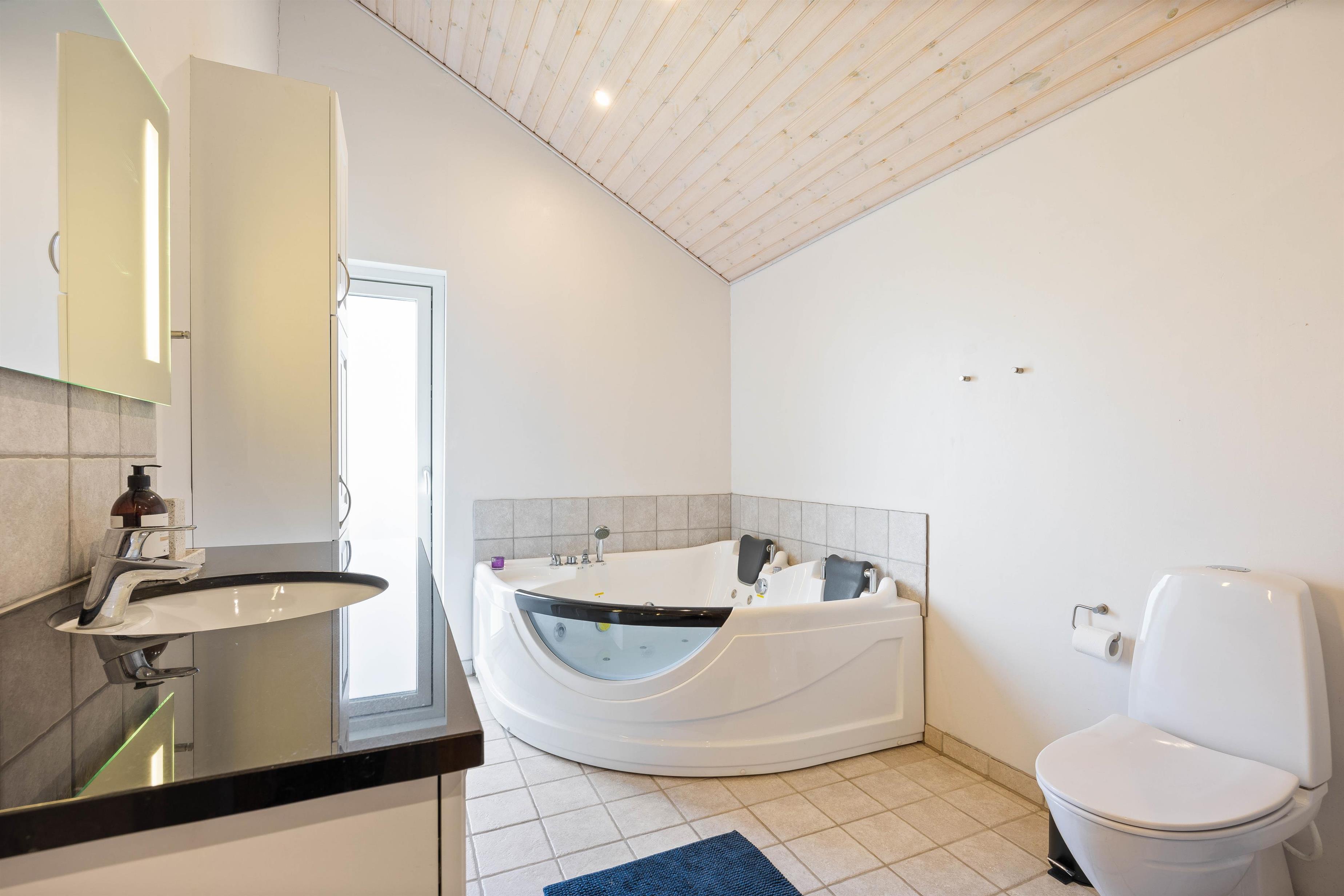The bathroom features underfloor heating and a whirlpool for relaxation. The three bedrooms offer six comfortable beds, with one bedroom featuring a double bed and two others with single beds. To make holiday life easier, you can do your laundry using the holiday home's washing machine.