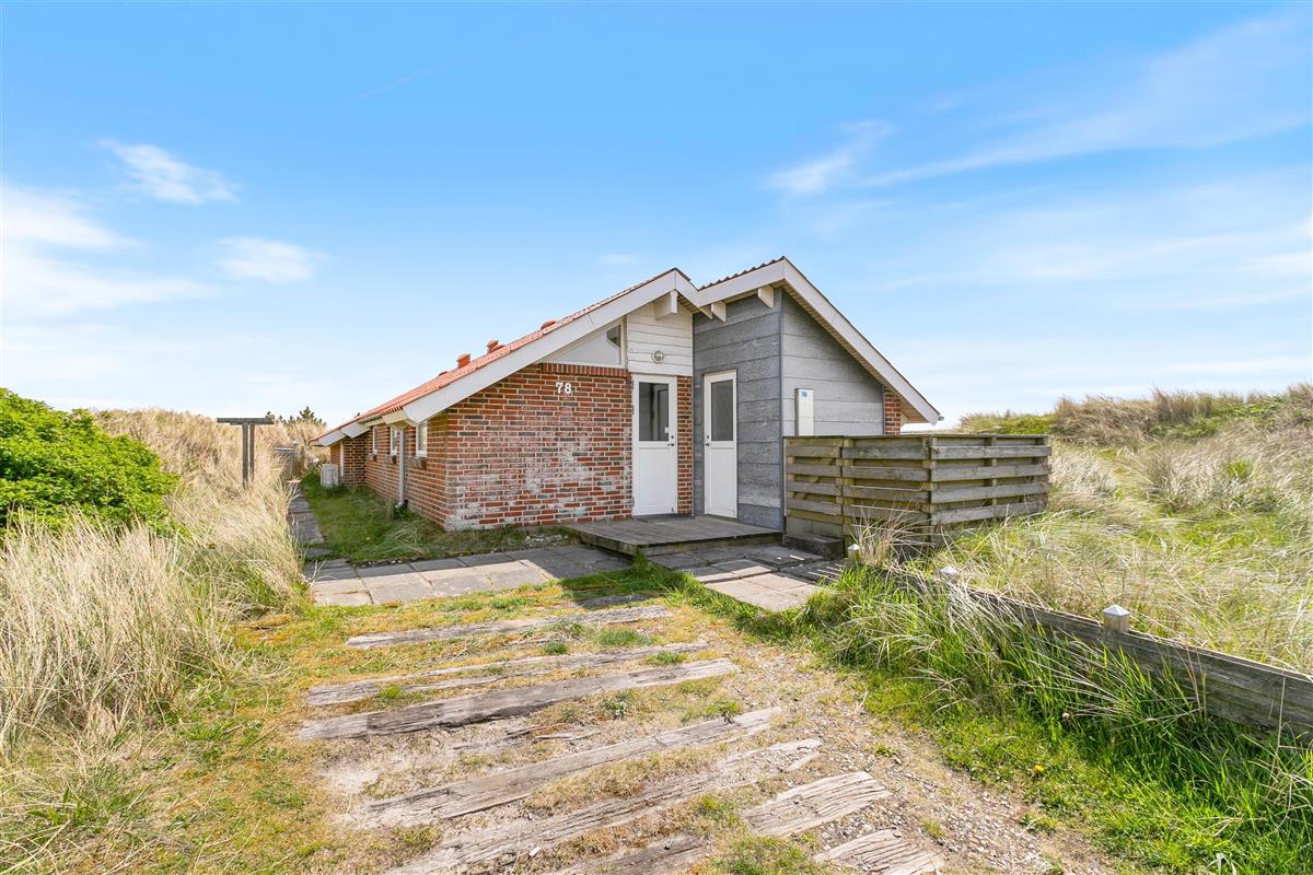 The holiday home features a spacious, partially enclosed terrace that wraps around the house from south to west. The southern section is partially covered. There's also a small east-facing terrace. The Julianevej area is particularly beautiful, with wonderful undulating dune landscapes to the west, where you can always hear the roaring North Sea.