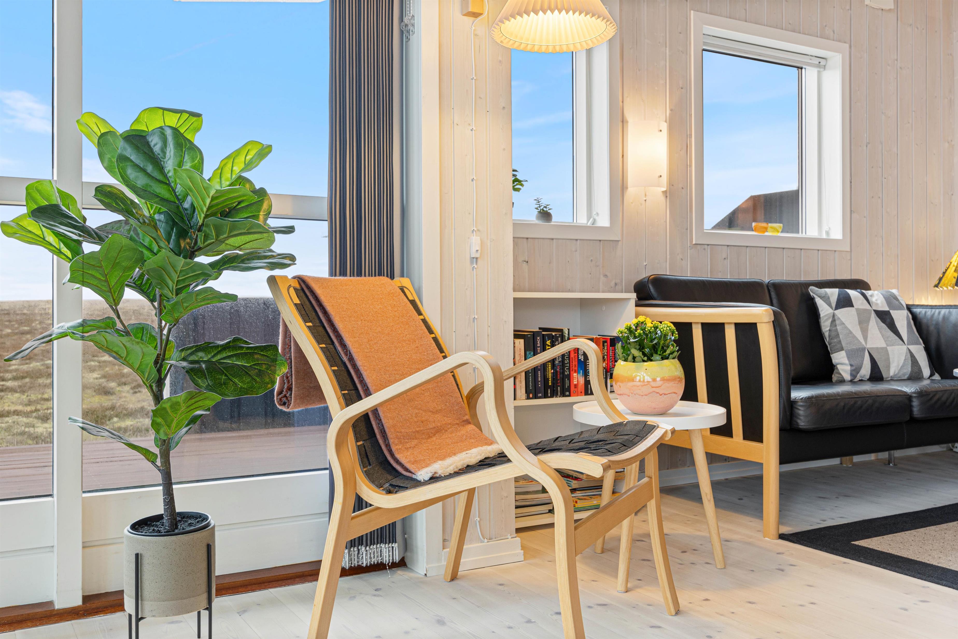This practically and cosily furnished holiday home awaits you for relaxing days on the Danish west coast. At its heart is an open-plan living area with large windows providing natural light. You can make yourself comfortable in the armchairs by the crackling, warming wood-burning stove while enjoying views across the heath and dunes.