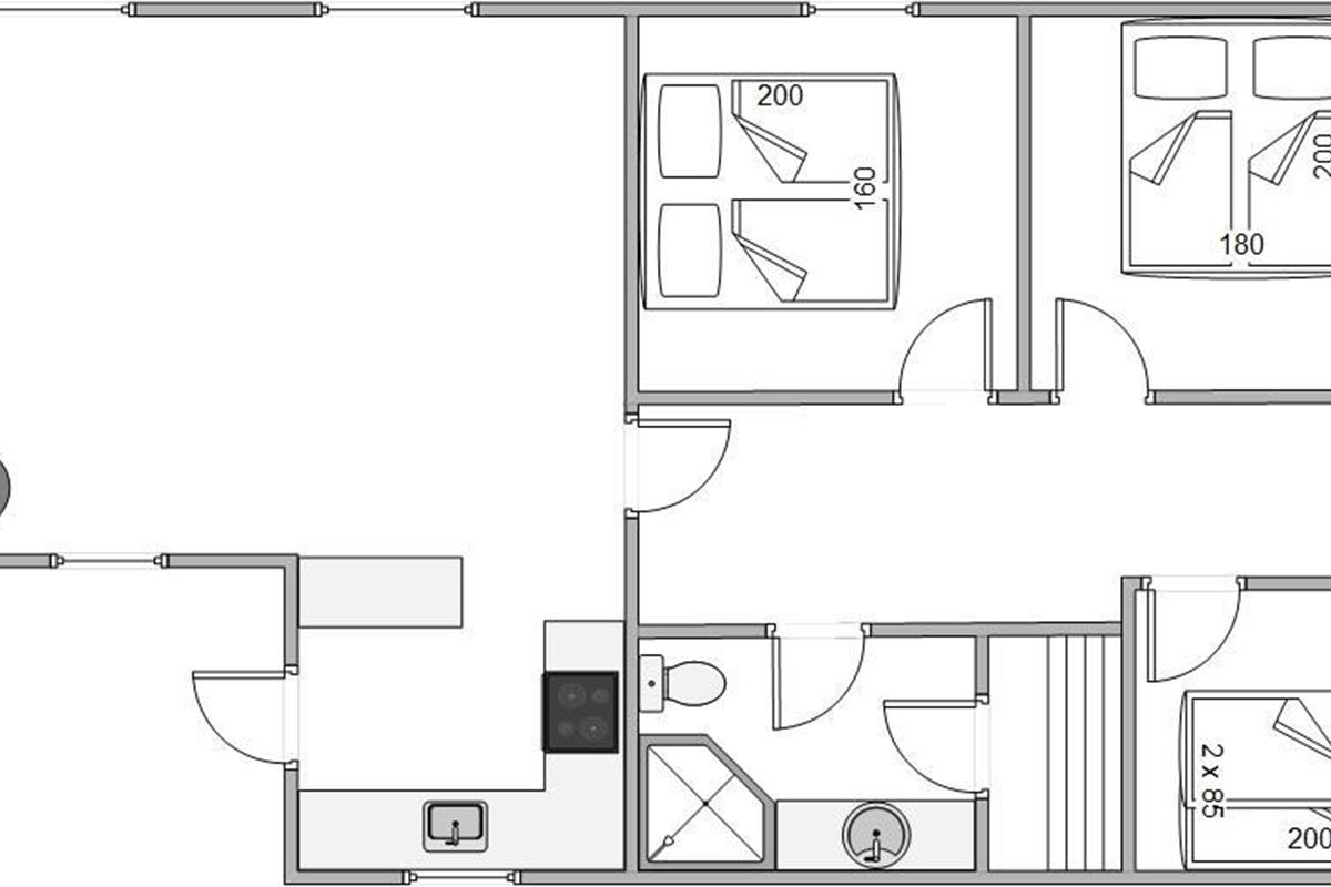 For sleeping arrangements, you can spread out across the holiday home's three lovely bedrooms. Two bedrooms feature double beds (180cm and 160cm wide), while the last room has a single bed with a high sleeper above – perfect for children.
