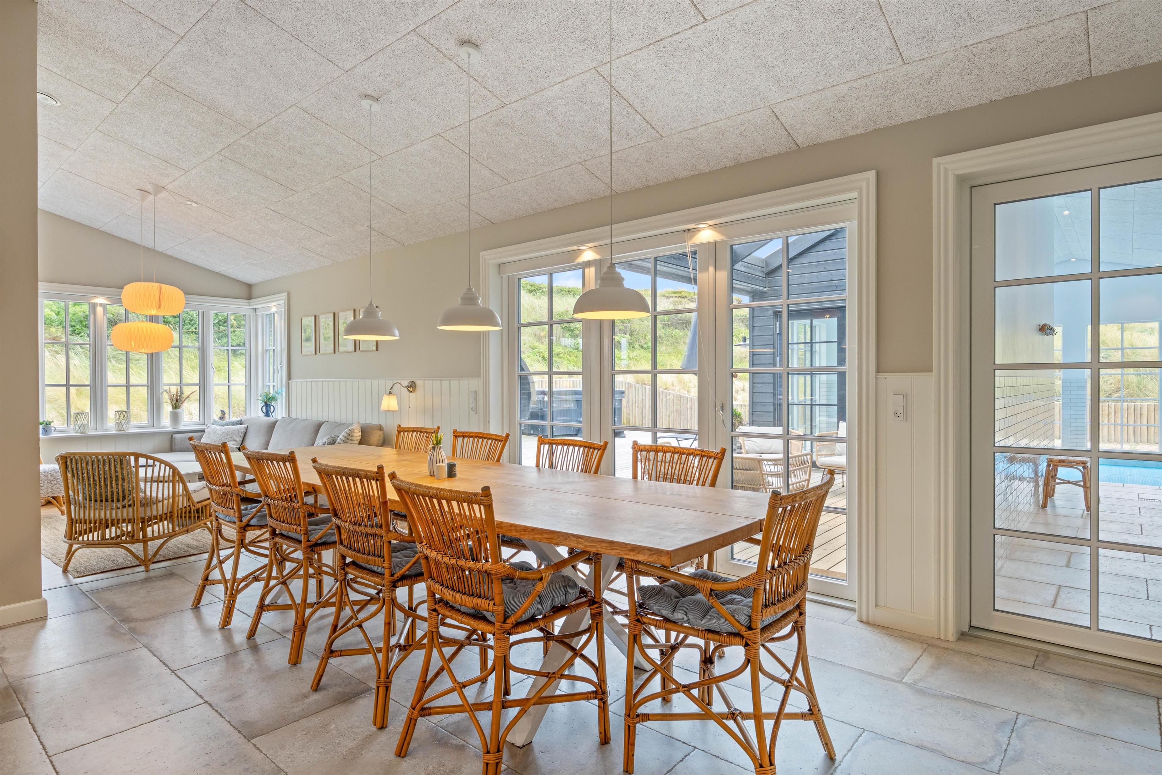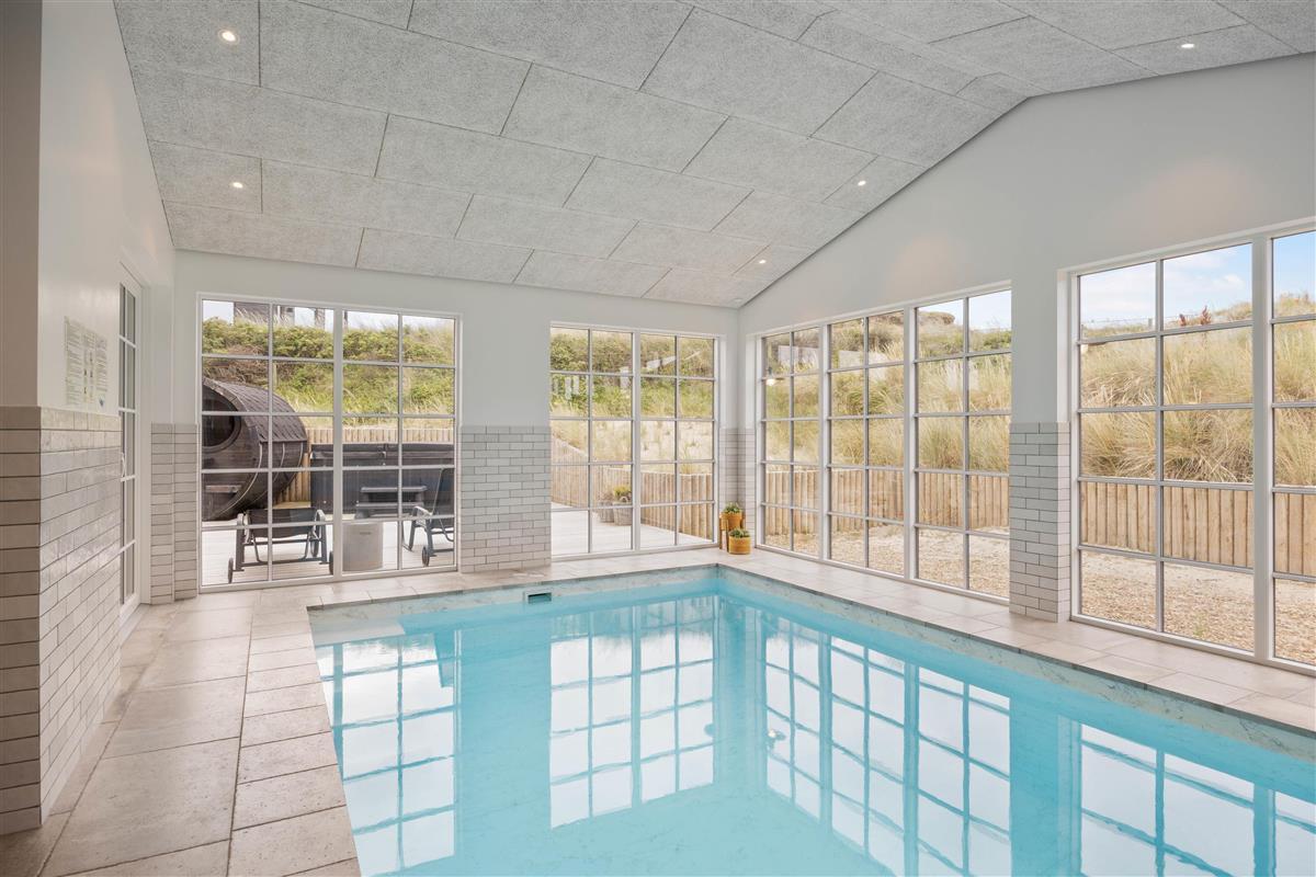 Welcome to this modern pool house on the Danish west coast, just a stone's throw from the North Sea beach. Spread across 230 square metres, you'll find numerous highlights to enhance your holiday. One standout feature is certainly the spacious swimming pool with counter-current system, perfect for splashing about with the children or getting in some swimming practice.