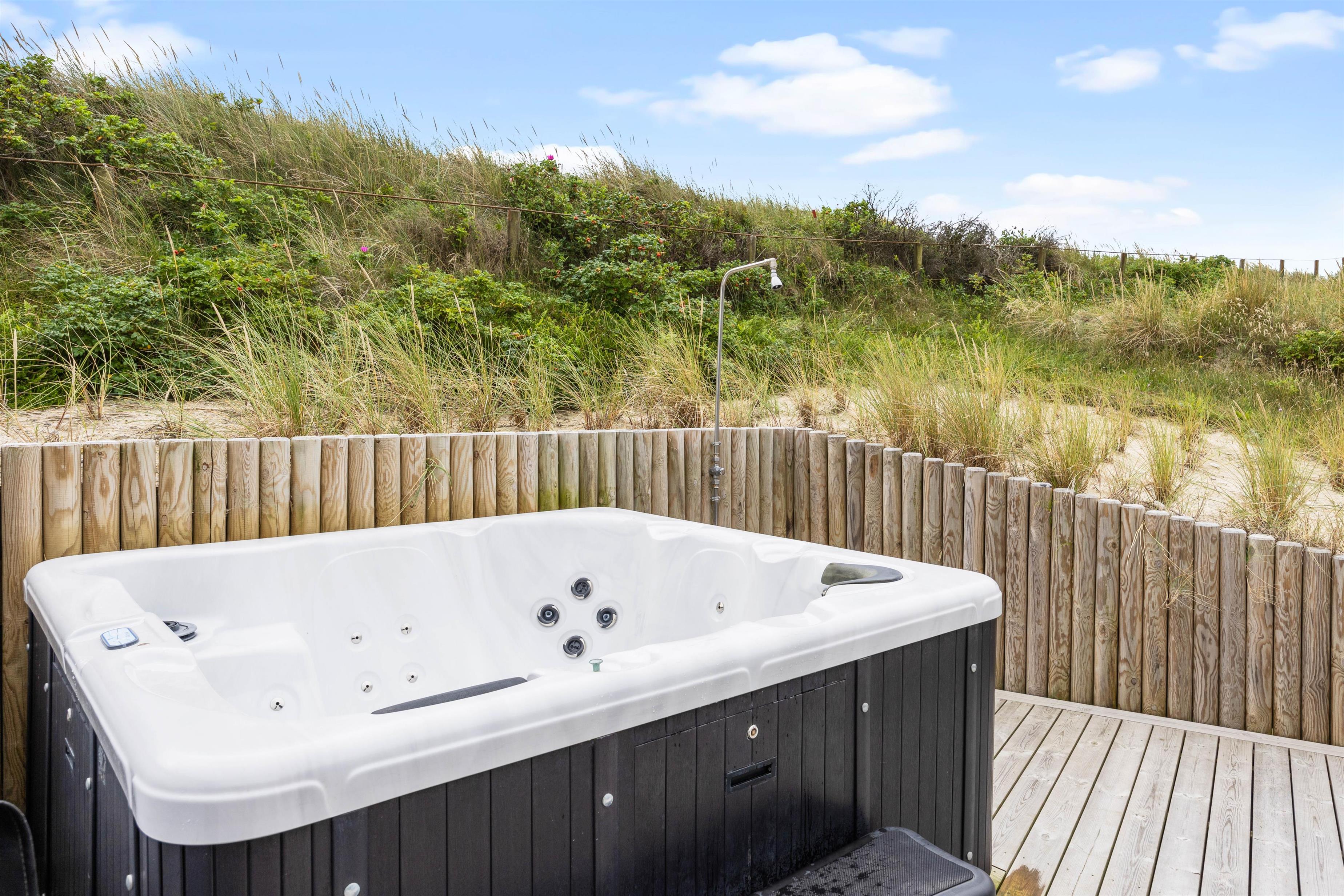 The gas barbecue is perfect for preparing a family BBQ. After a day at the beach, use the convenient outdoor shower to rinse off the sand (available April to November). In the evening, unwind in the hot tub and forget about everyday stress.