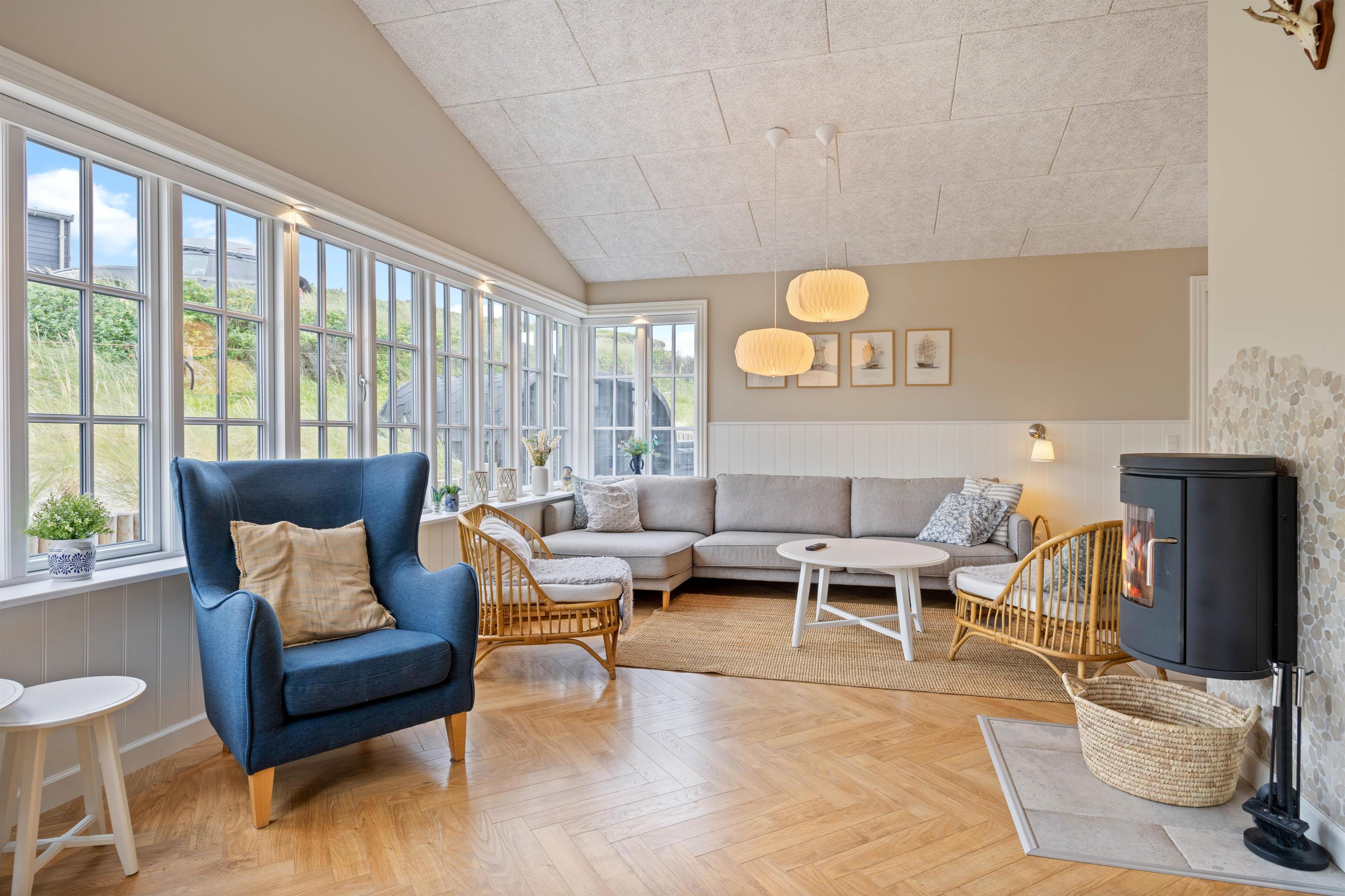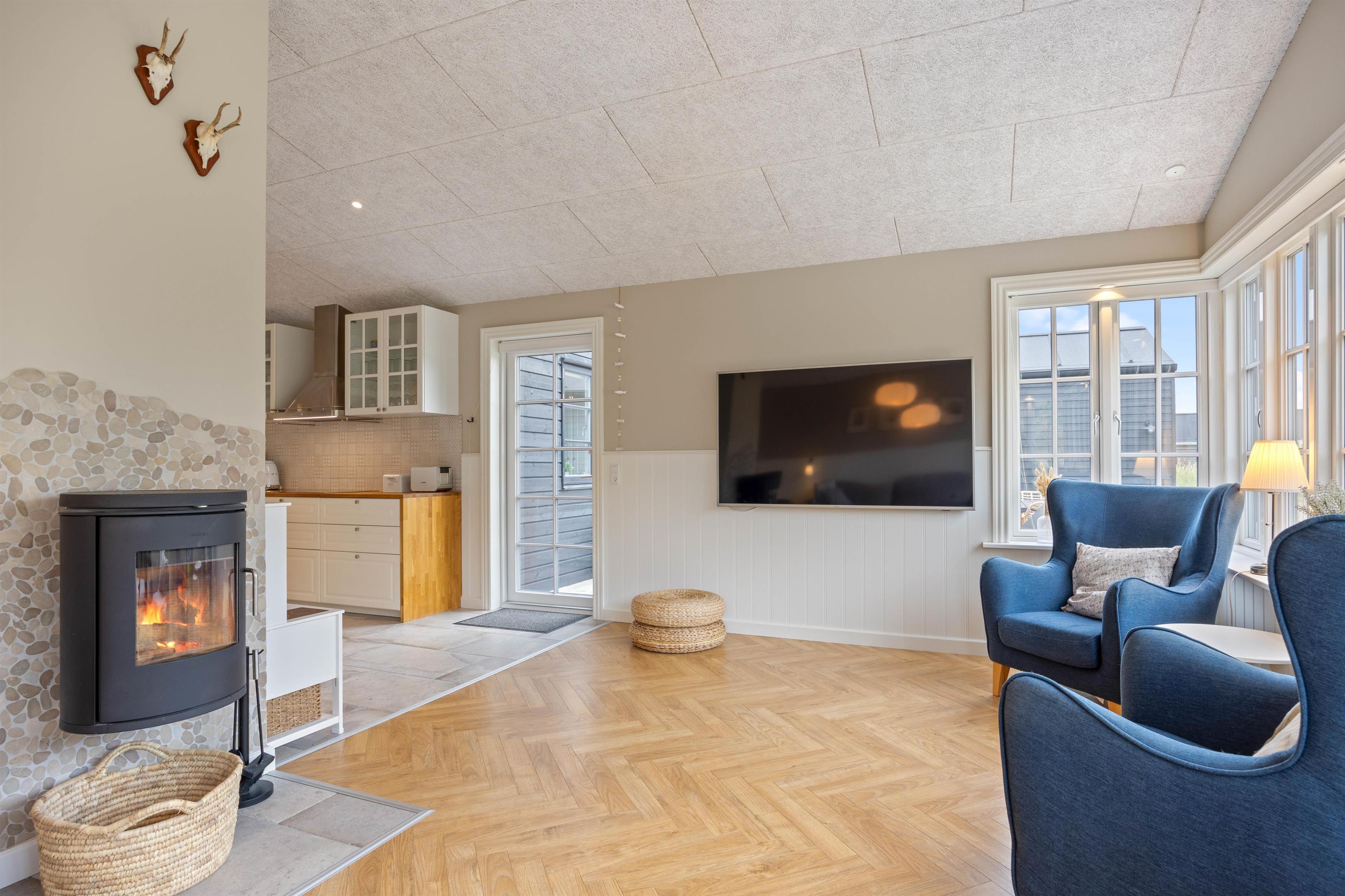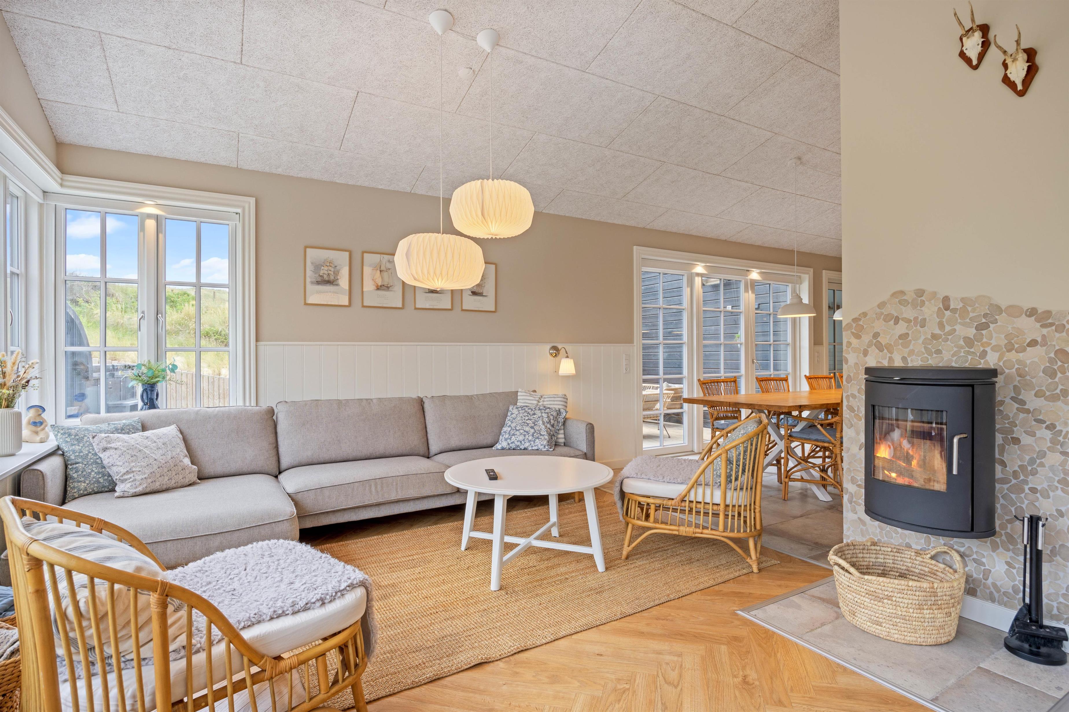 The unique location of your holiday home, close to the beach, provides an excellent base for long beach walks or cycling trips, and the harbour town of Hvide Sande is nearby. Here you can enjoy a delicious Danish soft ice cream while watching the harbour activity, or visit one of the surf spots to try your hand at water sports. The restaurants and cultural attractions are also well worth a visit.
