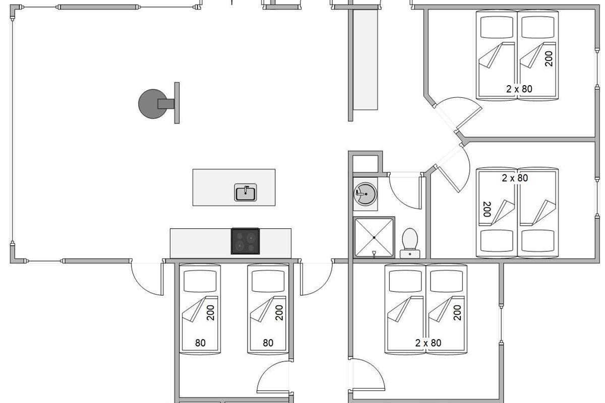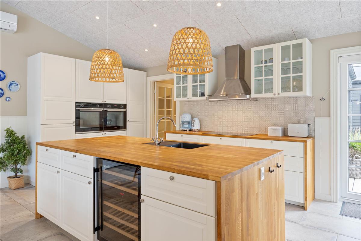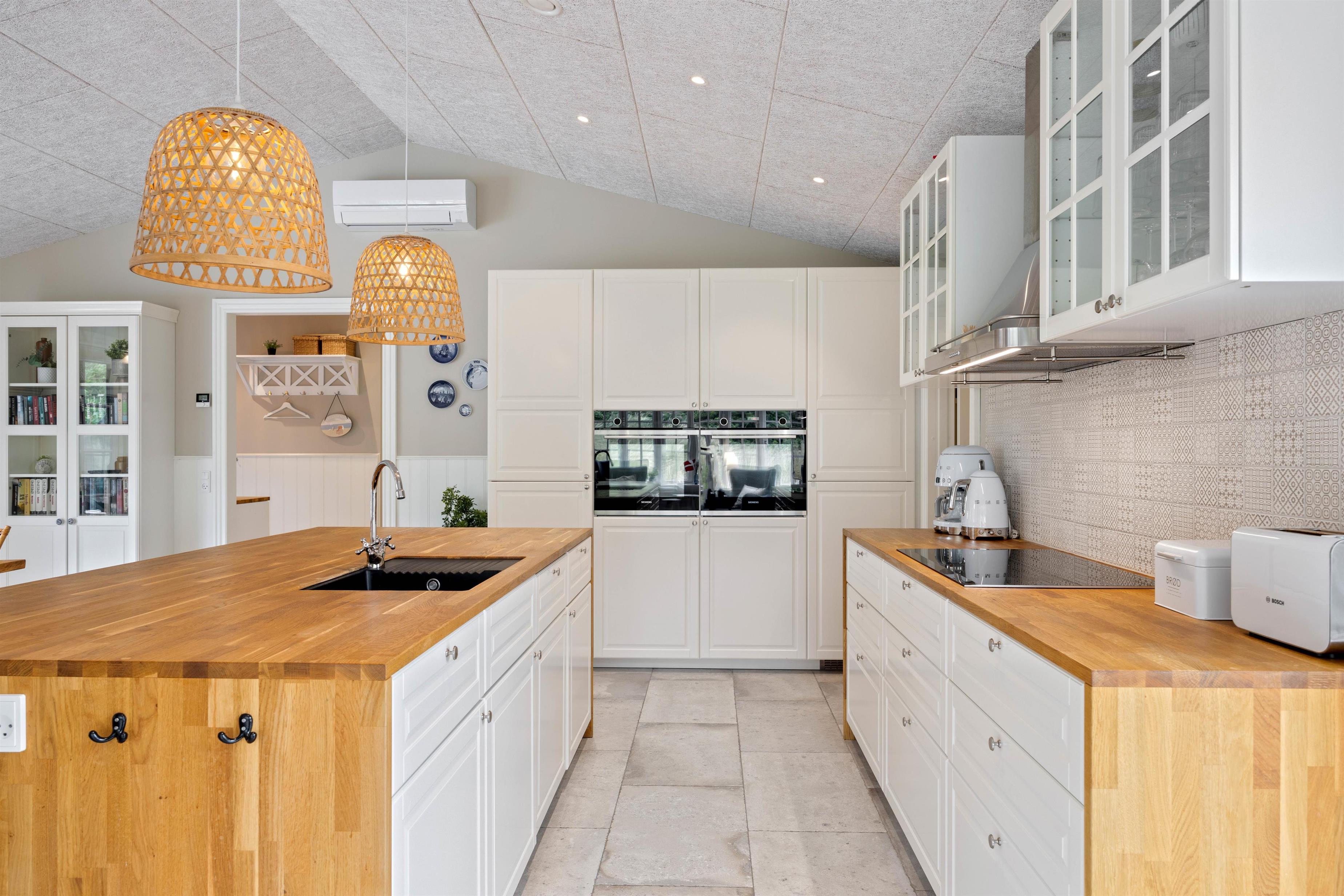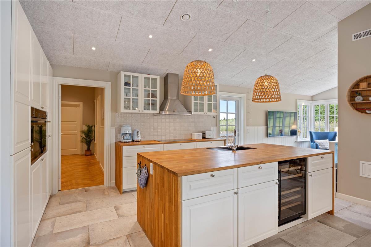 In the adjoining open-plan kitchen with spacious dining area, you can cook together and try new recipes. The kitchen is equipped with high-quality appliances, including an induction hob, a 75-litre freezer and a dishwasher. No need to worry about washing up - you can spend more time enjoying your holiday.