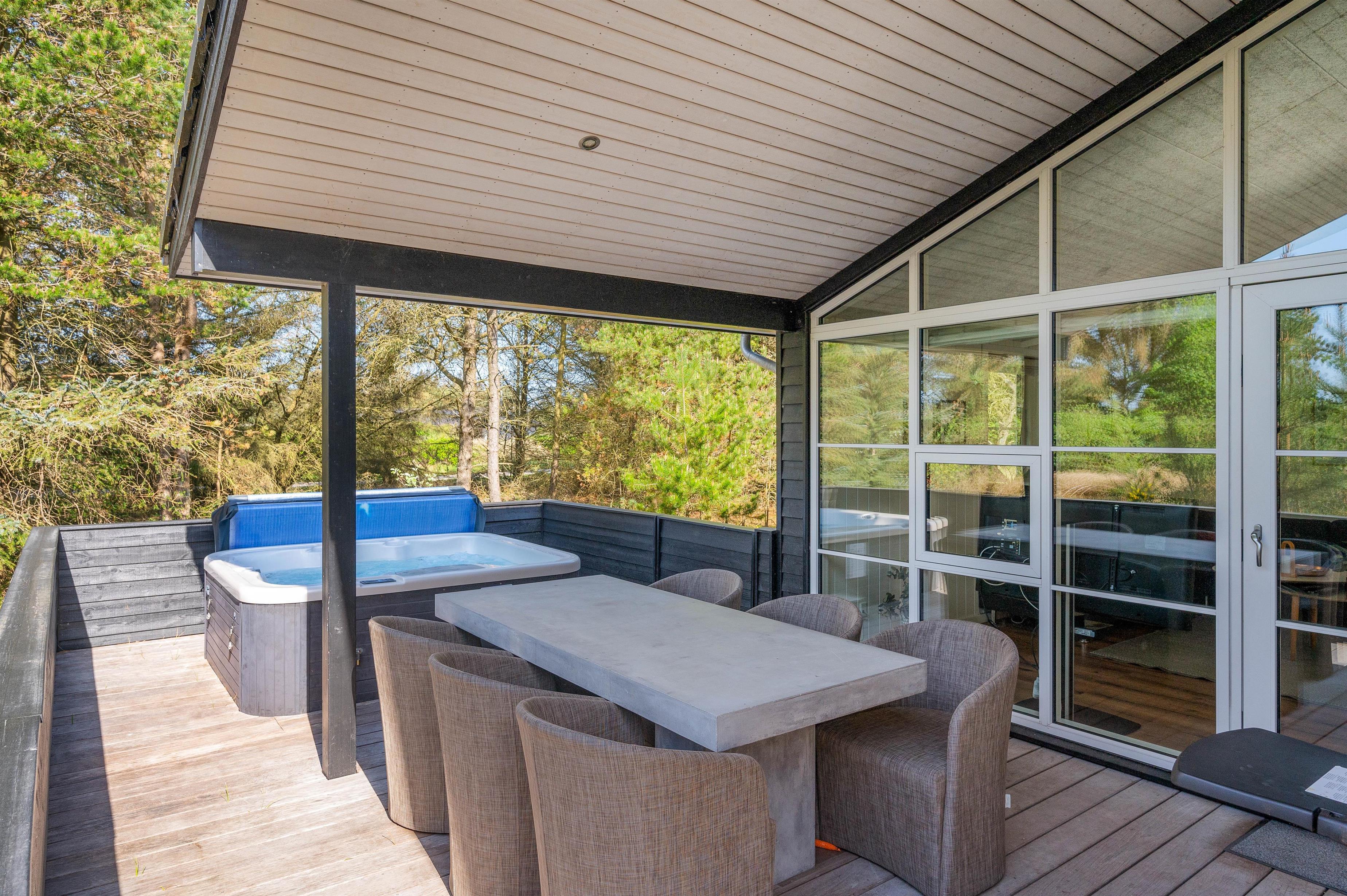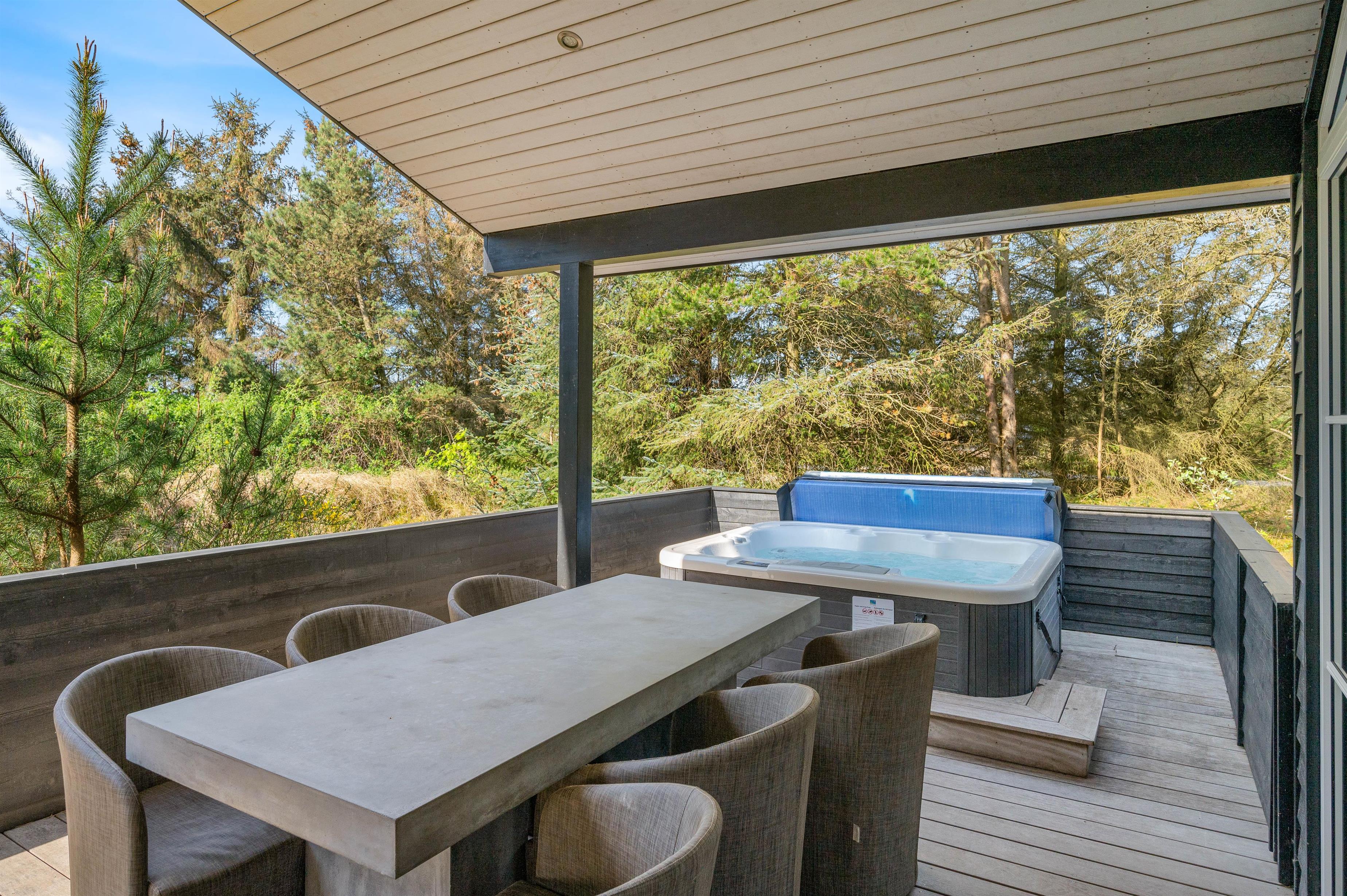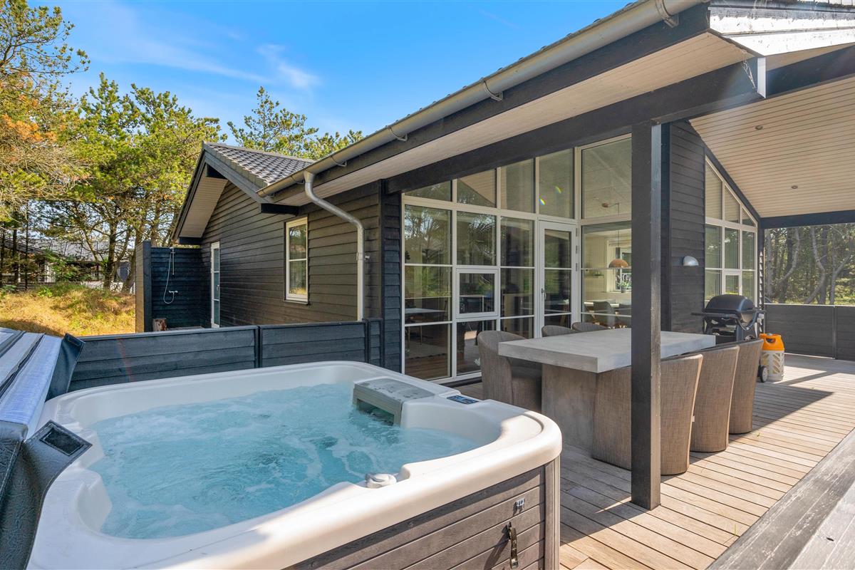 Located at Bilbergsvej 5, this bright and modern holiday home invites you to unwind. It features three bedrooms and two beautiful bathrooms. The terrace boasts an outdoor hot tub, while one bathroom includes a whirlpool and sauna for evening relaxation. The holiday home is perfectly equipped for peaceful wellness evenings.