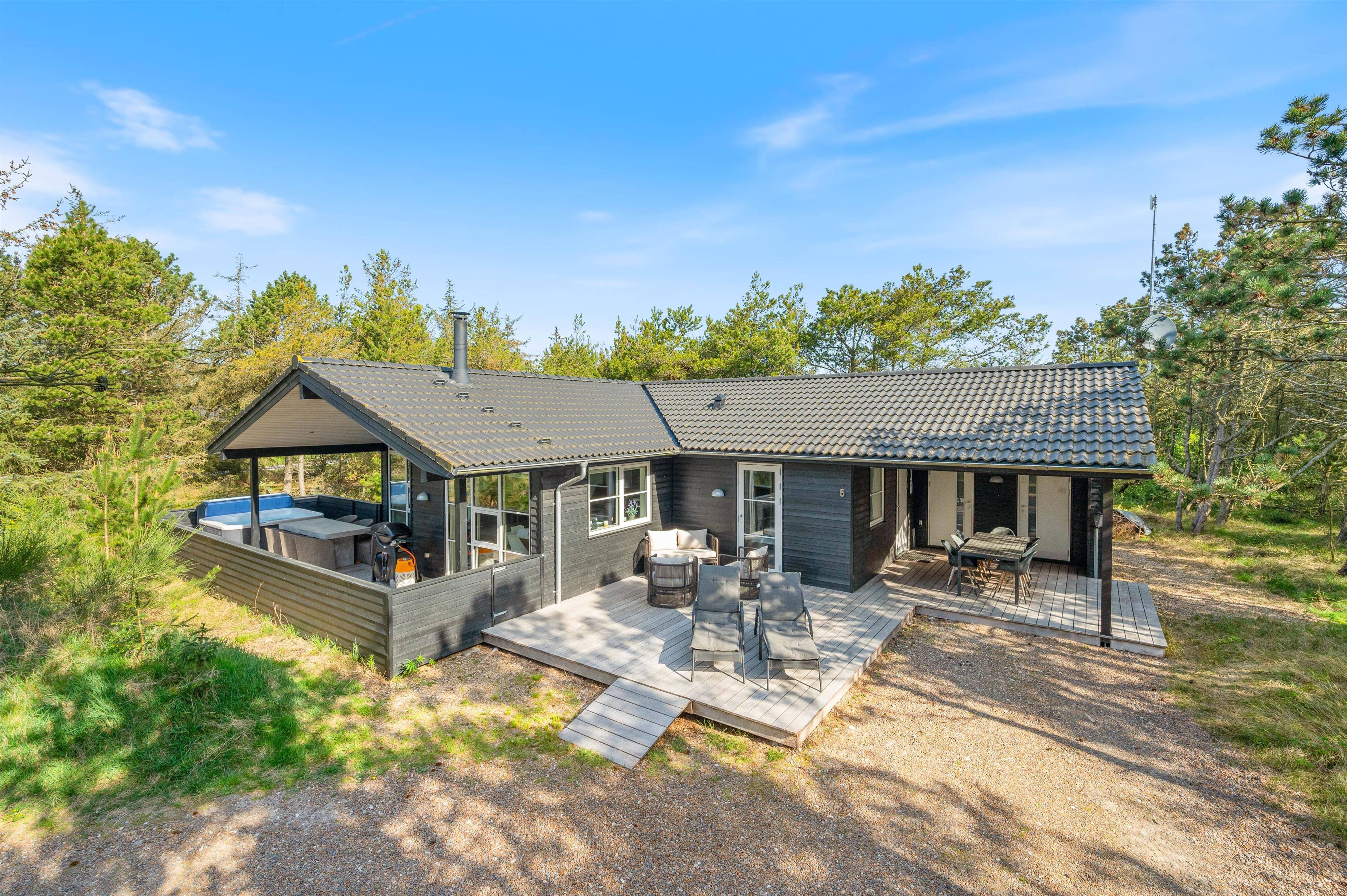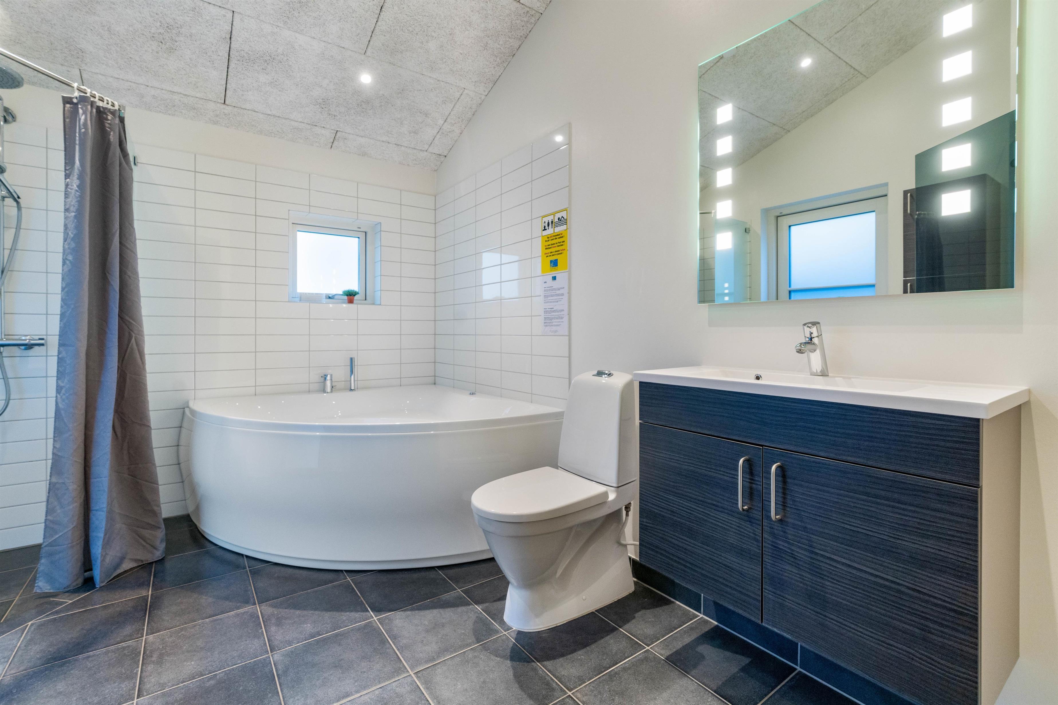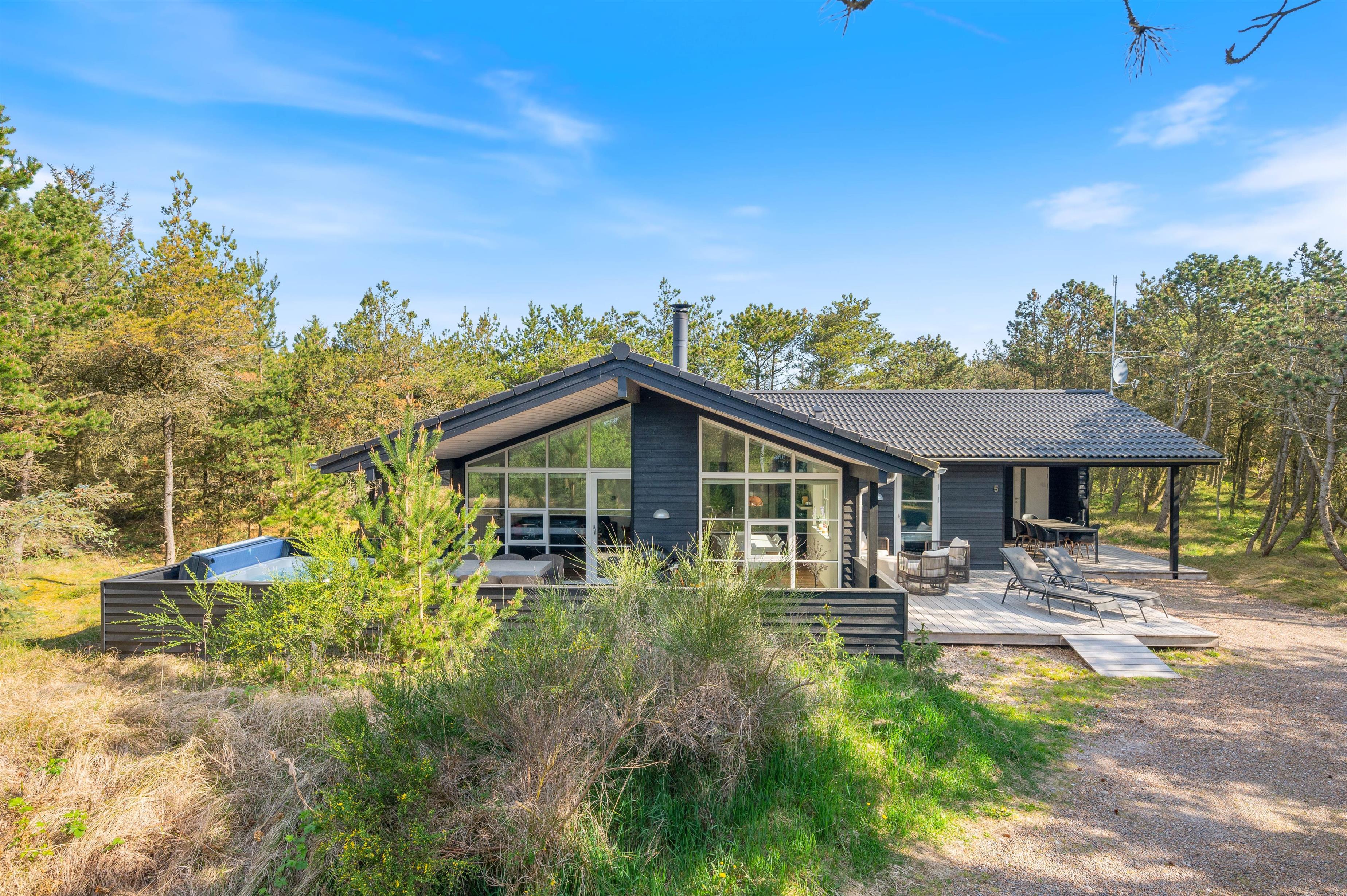 Located at Bilbergsvej 5, this bright and modern holiday home invites you to unwind. It features three bedrooms and two beautiful bathrooms. The terrace boasts an outdoor hot tub, while one bathroom includes a whirlpool and sauna for evening relaxation. The holiday home is perfectly equipped for peaceful wellness evenings.