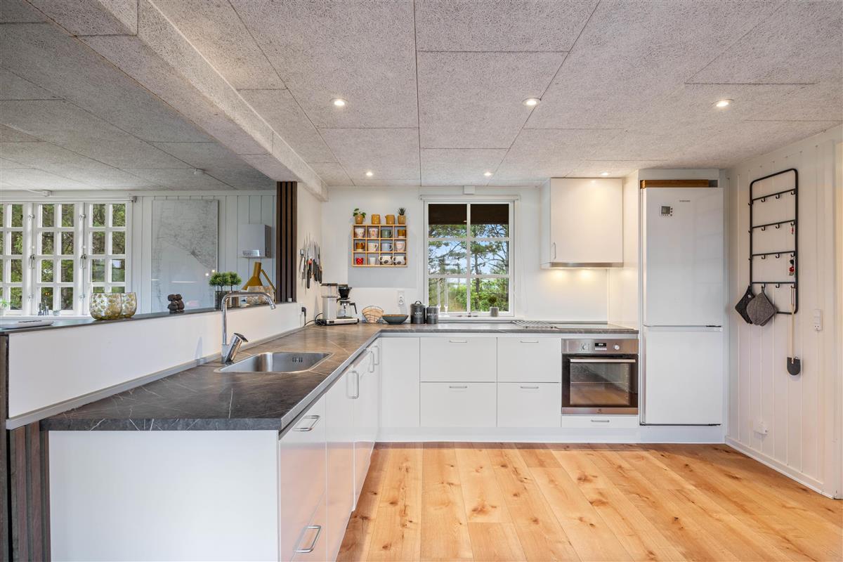 Your holiday home is situated in the popular resort of Bjerregård, close to the local shop where you can get fresh bread rolls every morning for a hearty breakfast. The surrounding area offers numerous cycling and walking trails, plus a paradise for anglers right at Ringkøbing Fjord.