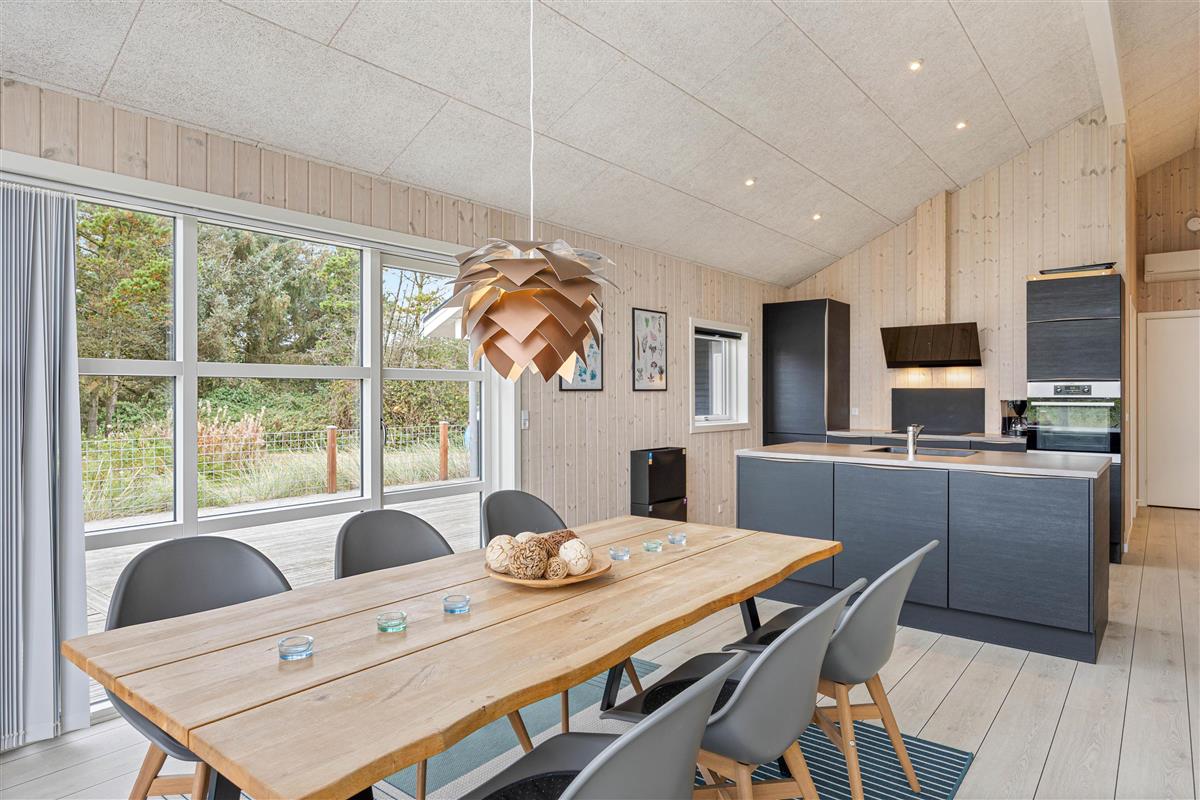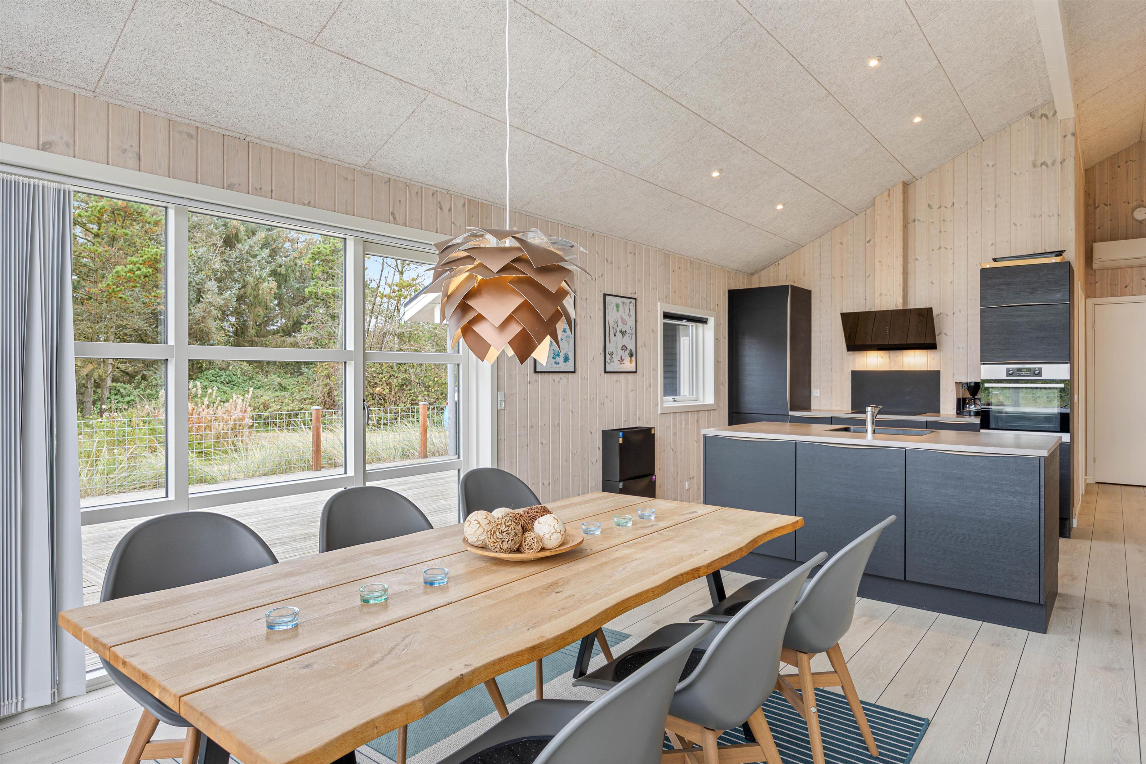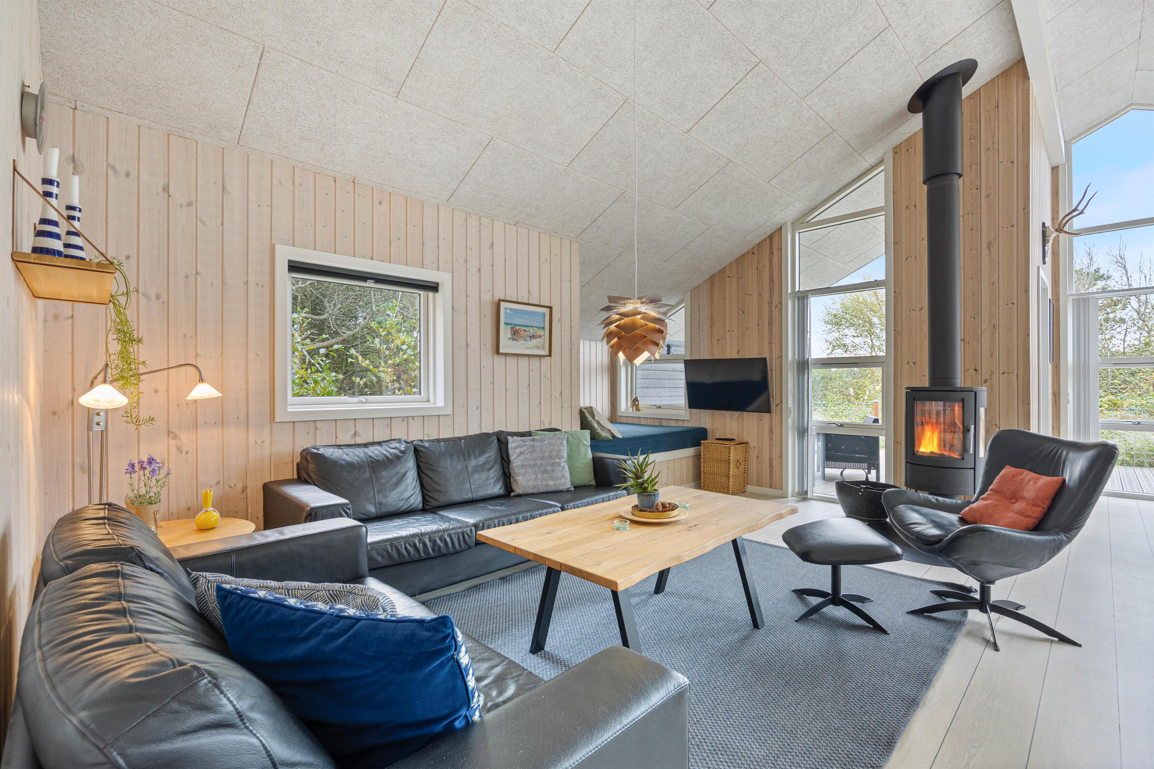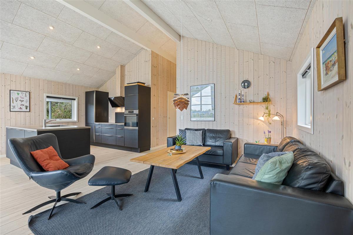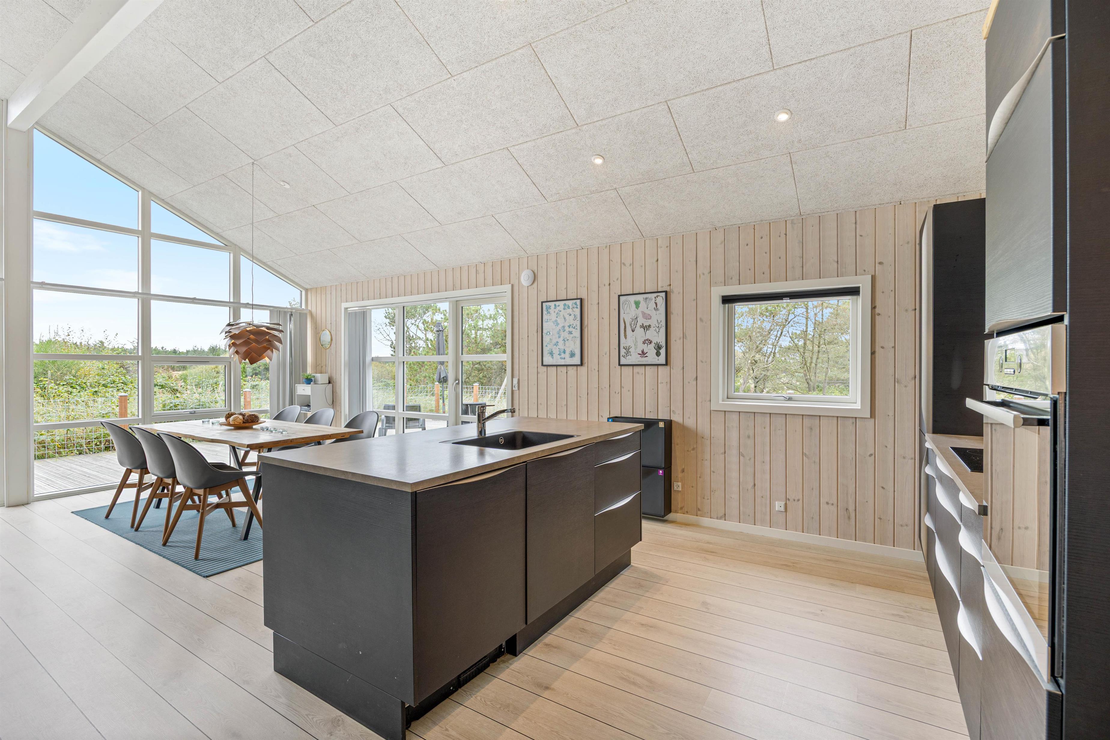 Superb quality holiday home built in 2020, accommodating 6 people, featuring a sauna and hot tub, set on large natural grounds in Bjerregård. The motto here is: arrive, enter and feel at home. Adjacent to the holiday home is a pine forest with mature trees. The holiday home enjoys a perfect location surrounded by nature.
