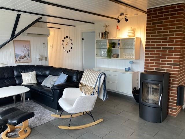 The living room features a well-positioned wood-burning stove that spreads warmth and cosiness throughout the space. You'll also find a flat-screen TV, satellite dish and free Wi-Fi. An energy-efficient air-to-air heat pump maintains comfortable temperatures while being budget-friendly, making the house an ideal destination even in the cooler seasons.