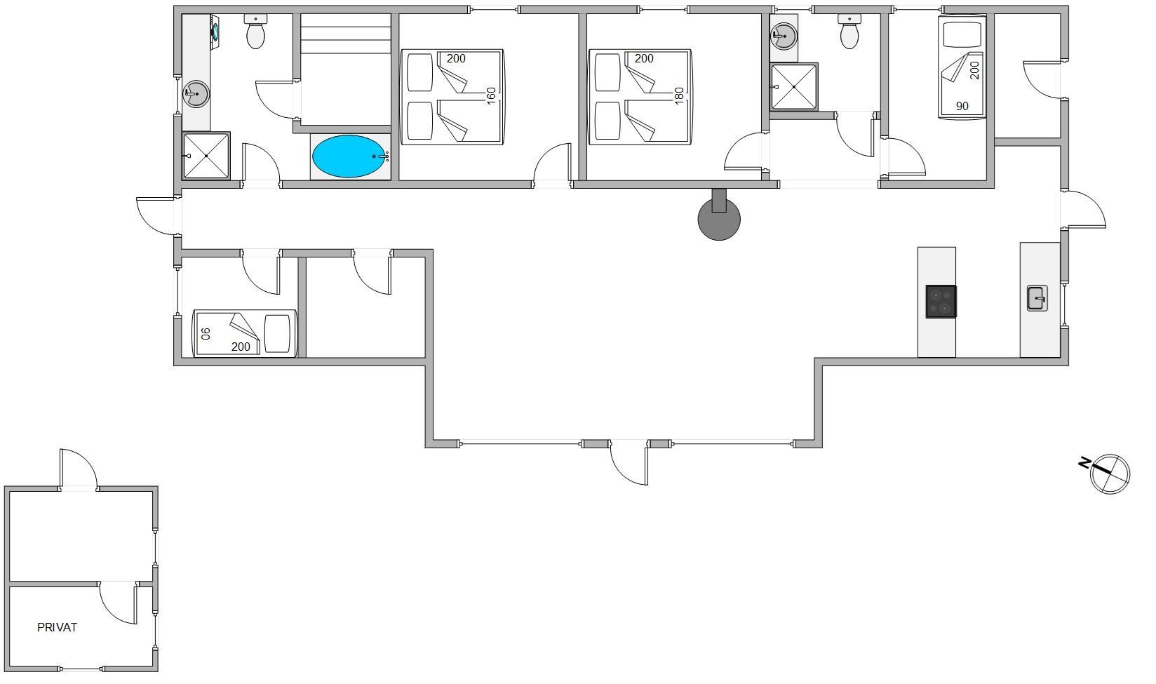 There are 2 bathrooms, both with underfloor heating, shower and natural light. The large bathroom includes a wellness area with whirlpool and sauna. The kitchen features a 40-litre freezer, dishwasher and microwave, perfect for creating delicious meals.