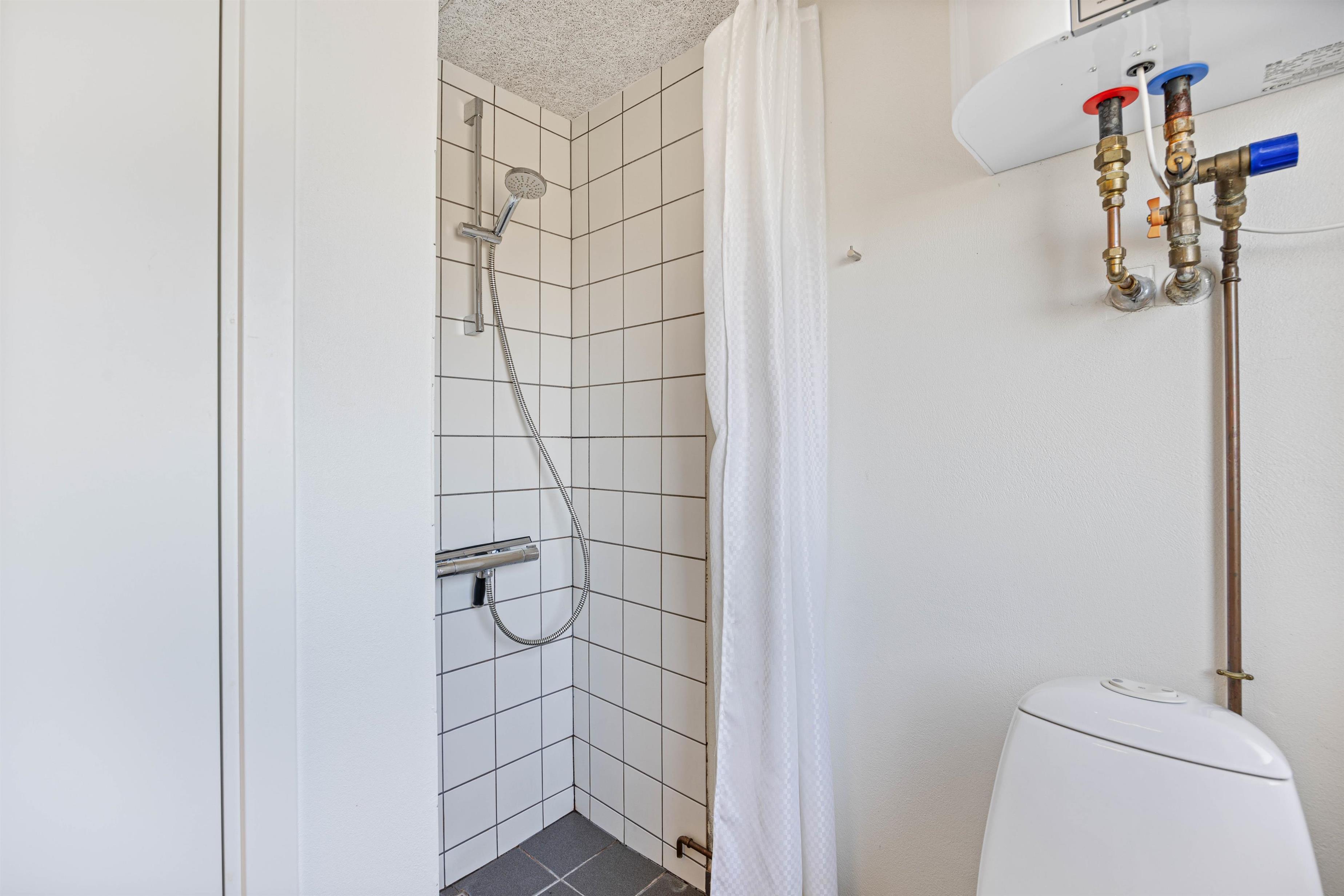 The well-maintained bathroom with shower features underfloor heating, ensuring warm feet during your morning routine. When the day draws to a close, you can retire to three comfortable bedrooms, one of which includes bunk beds.