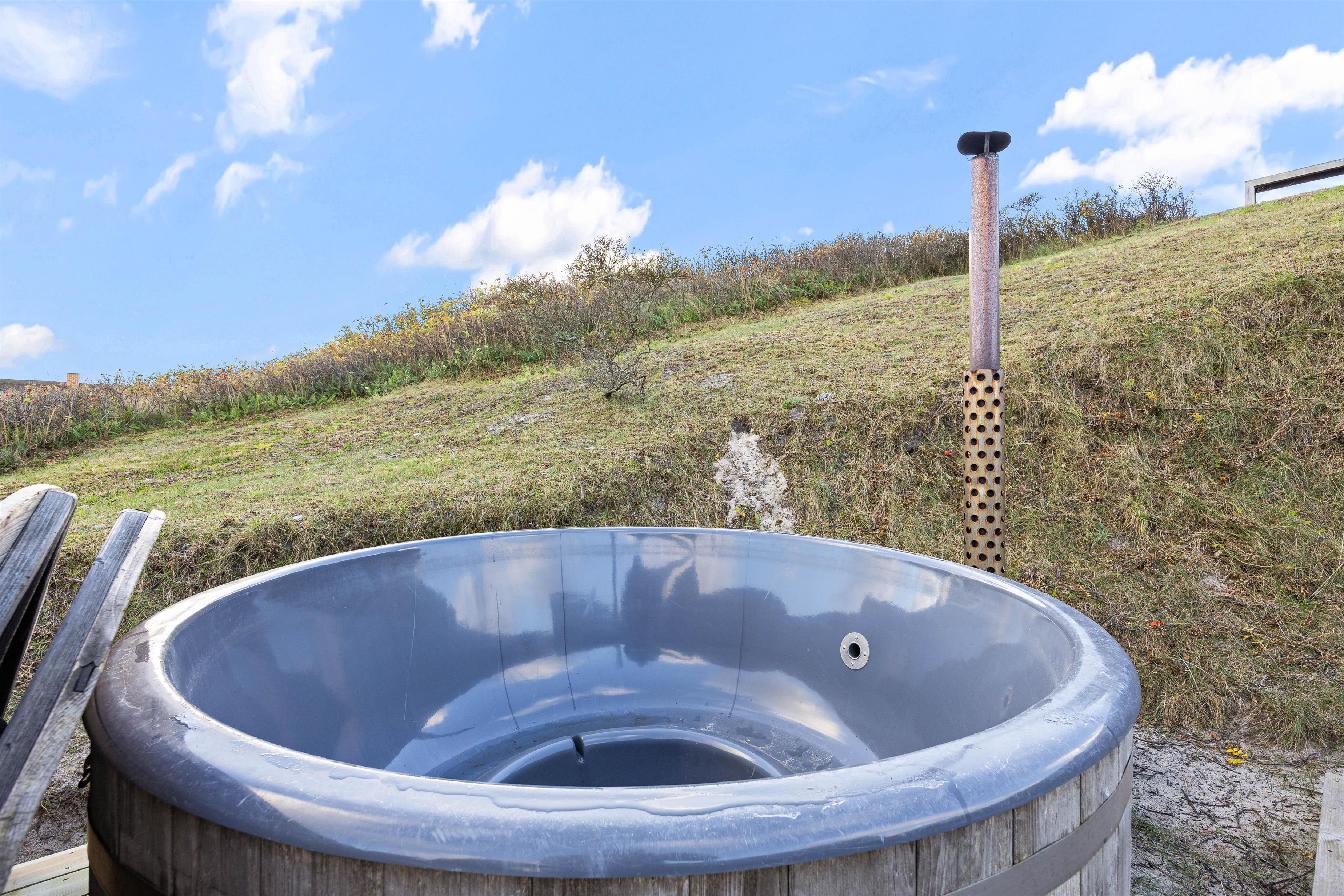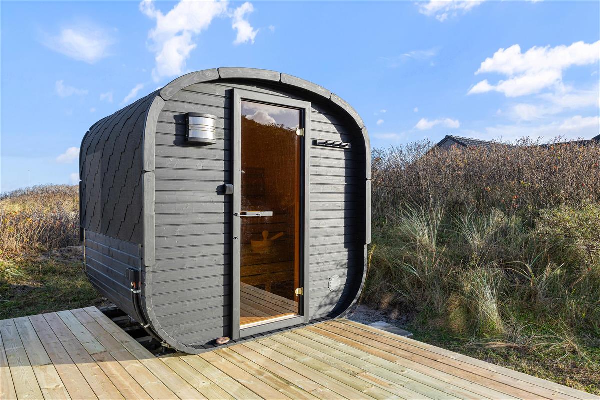 On the partially covered terrace, you can enjoy a cosy evening together with a barbecue. Afterwards, the outdoor hot tub and -sauna invite you to relax under the starry sky while listening to the gentle sound of the sea beyond the dunes.