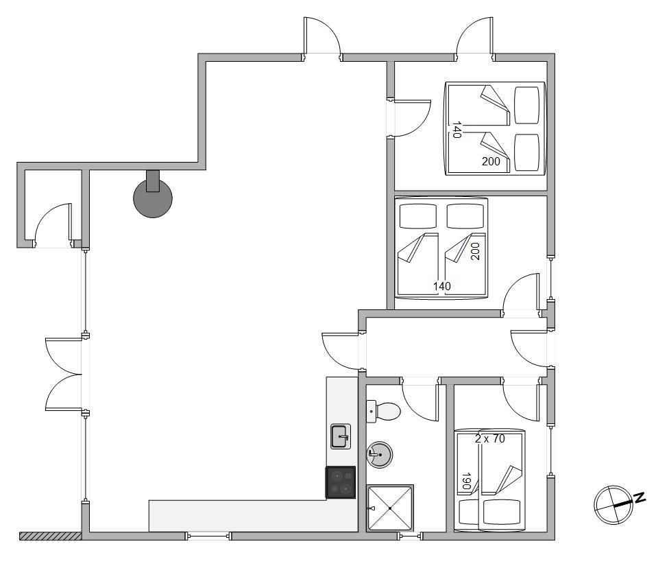 The holiday home, renovated in 2021, is bright and cosily furnished, making excellent use of its 86 square metres. Of the three bedrooms, two feature double beds and one has a bunk bed. The bathroom is bright and spacious, with underfloor heating ensuring warm tiles underfoot. The rest of this comfortable holiday home features light wood laminate flooring, perfectly connecting the rooms. From the comfortable seating area, you can listen to the crackling fireplace while settling in with your favourite novel. The thoughtfully decorated sofa corner provides space for everyone during family film nights. Three German channels are available.
