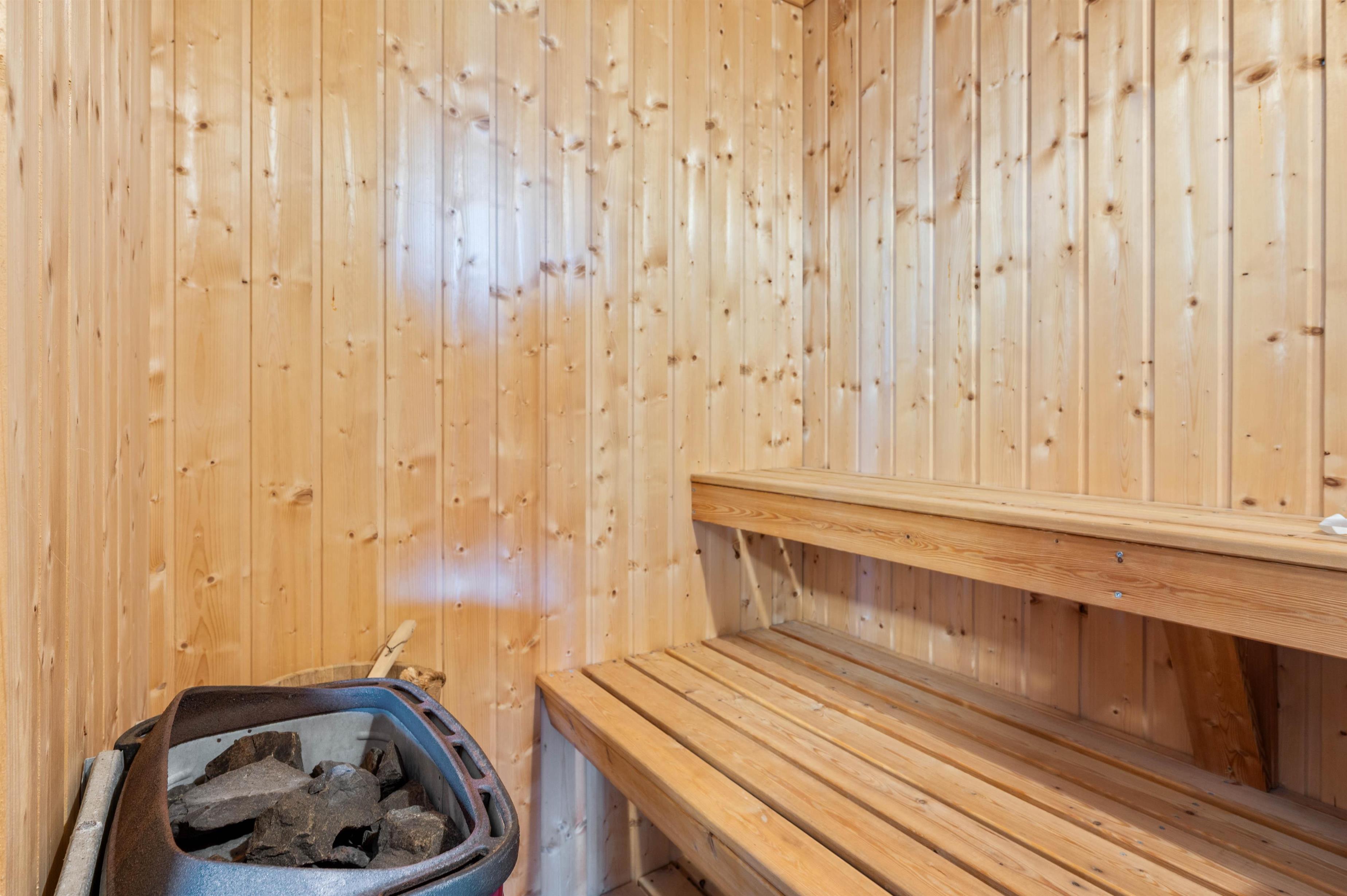 This holiday home is comfortably furnished and accommodates up to 6 people. The holiday home has 3 comfortable bedrooms, two with double beds and one with twin beds. The bathroom features a shower enclosure and a sauna for relaxing wellness evenings after eventful days out. The spacious, practical kitchen is equipped with a dishwasher and microwave and opens onto the living room, which features comfortable furniture and a warming wood-burning stove. Enjoy family film nights in front of the crackling fire. From the living room, you can access the delightful conservatory, offering plenty of space for relaxation and quality time with the whole family.