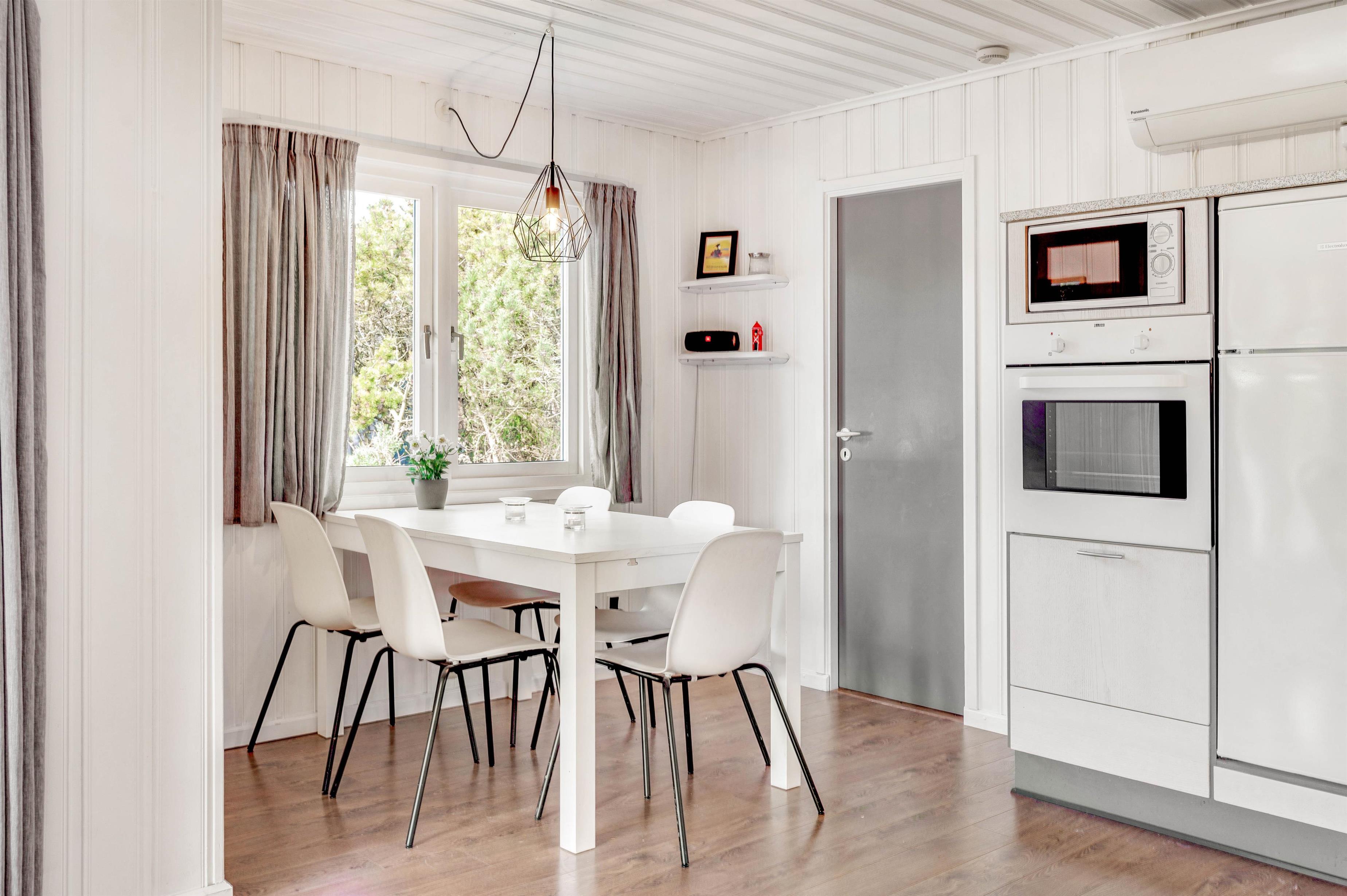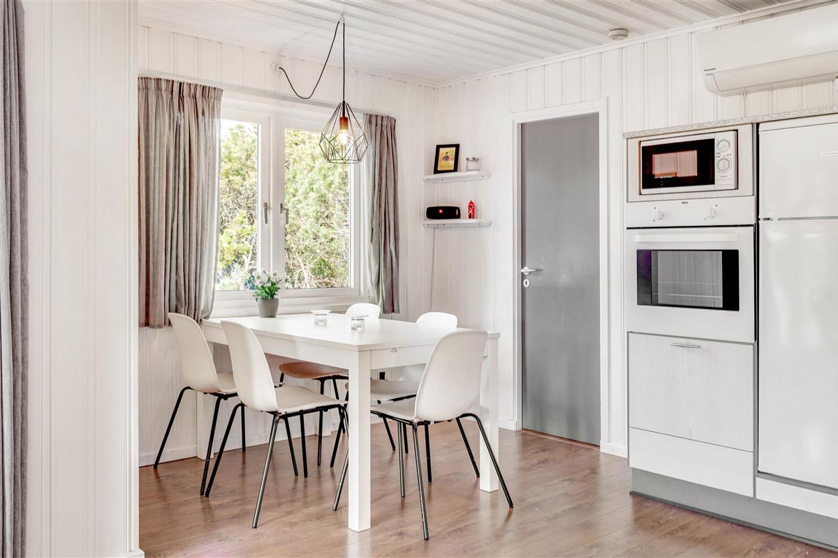 The open-plan, lovingly furnished living area includes a television, DVD player and Bluetooth speaker for your entertainment. The wood-burning stove and energy-efficient heat pump ensure cosy moments with your loved ones on the comfortable seating.
