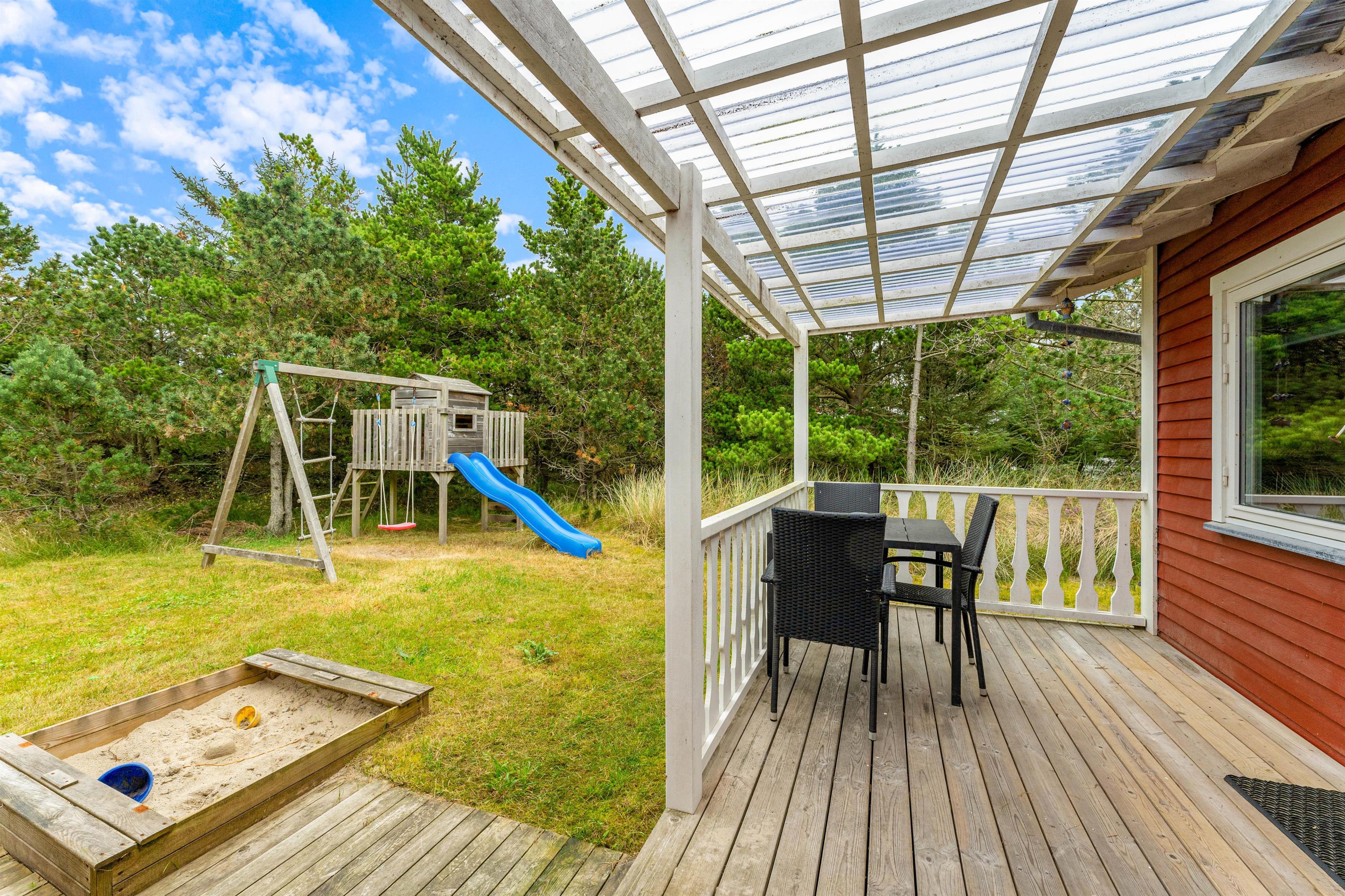 A partially covered terrace area allows you to enjoy the outdoors even in wet weather. A sandpit and swing will keep your children entertained while you relax on the terrace.