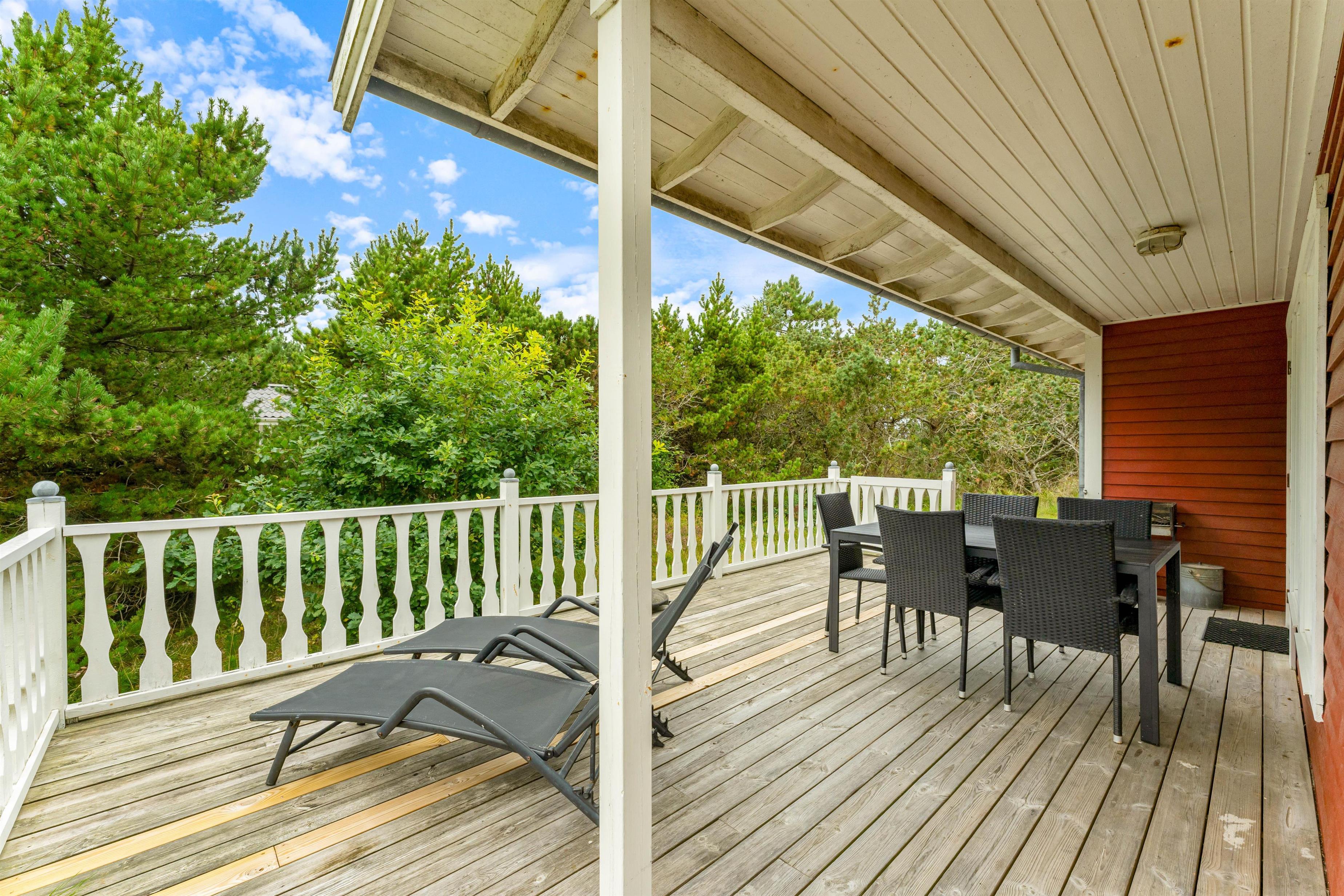 The outdoor area of this Bjerregård holiday home is a real highlight. Set within 1,200 square metres of natural grounds, you'll find a barbecue and plenty of garden furniture including sun loungers, perfect for outdoor dining and relaxing in the fresh air.
