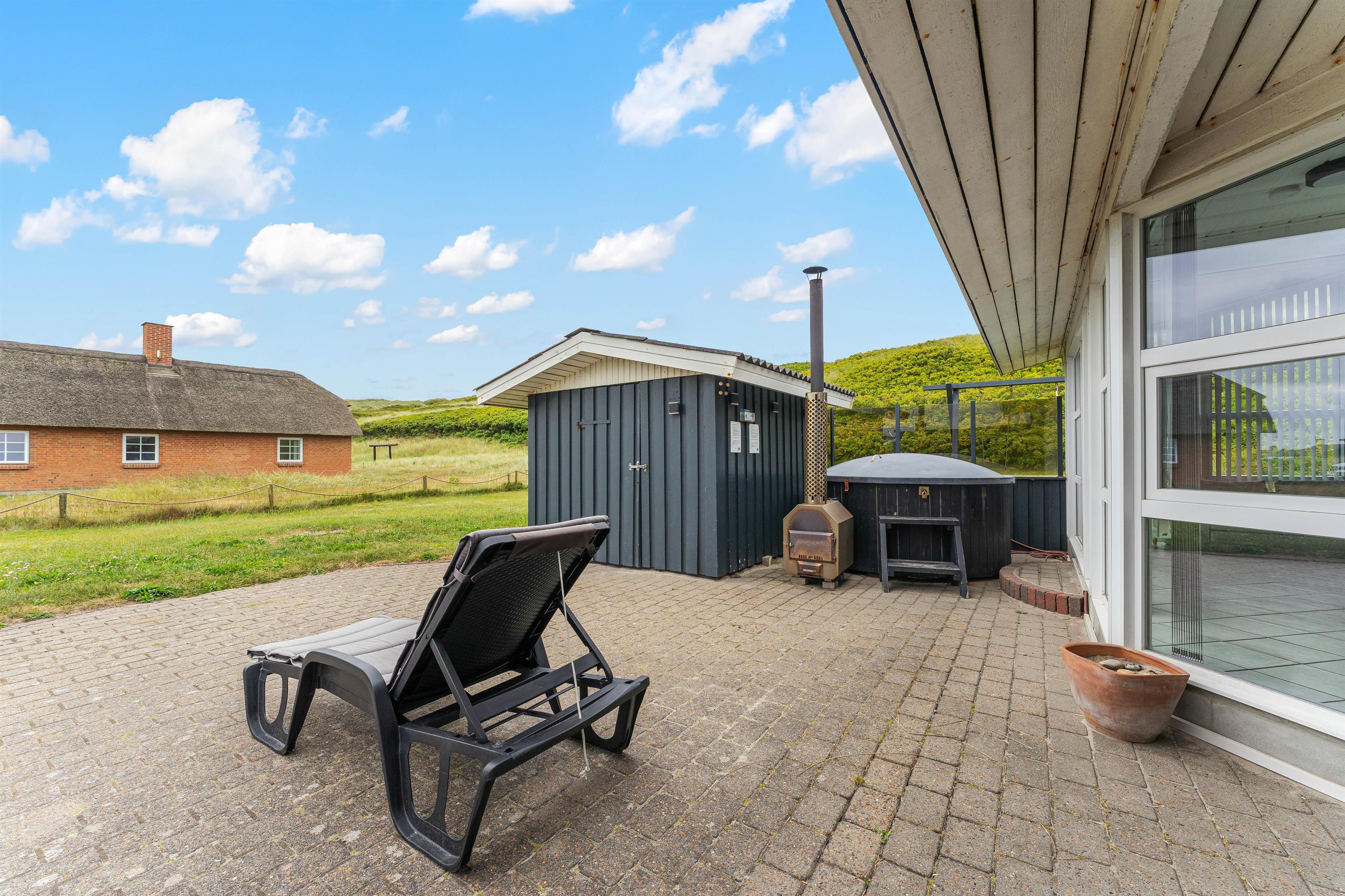 If you're bringing your dog, the holiday home is an ideal starting point for long walks along the shoreline or on the nature trail that leads to Hvide Sande. For exciting family activities, you'll find excellent attractions nearby, including the Bork Viking Harbour on Ringkøbing Fjord, where you can experience history first-hand. For sports enthusiasts, Hvide Sande is just a 15-minute drive away, offering excellent facilities for surfing and water skiing.