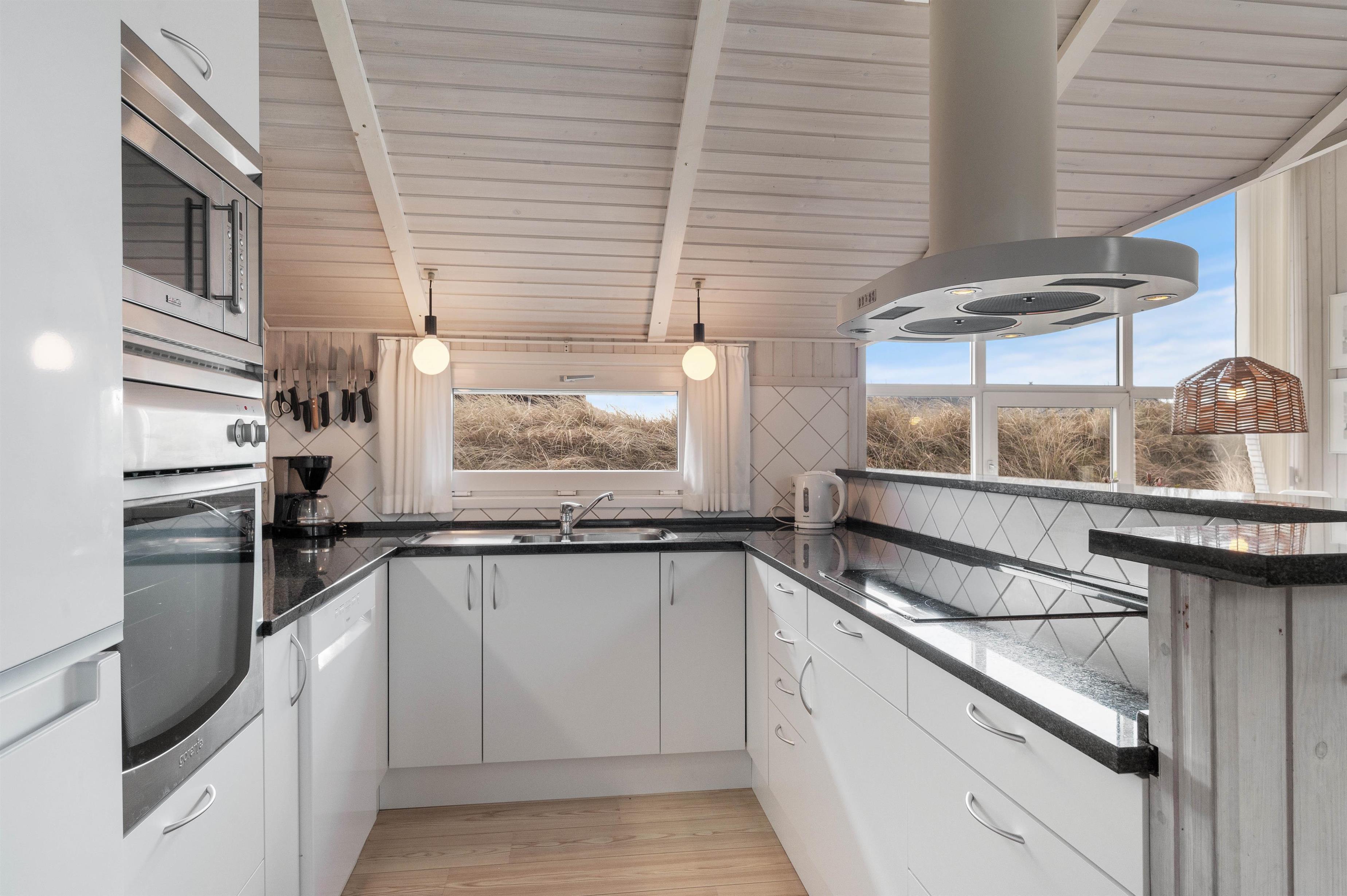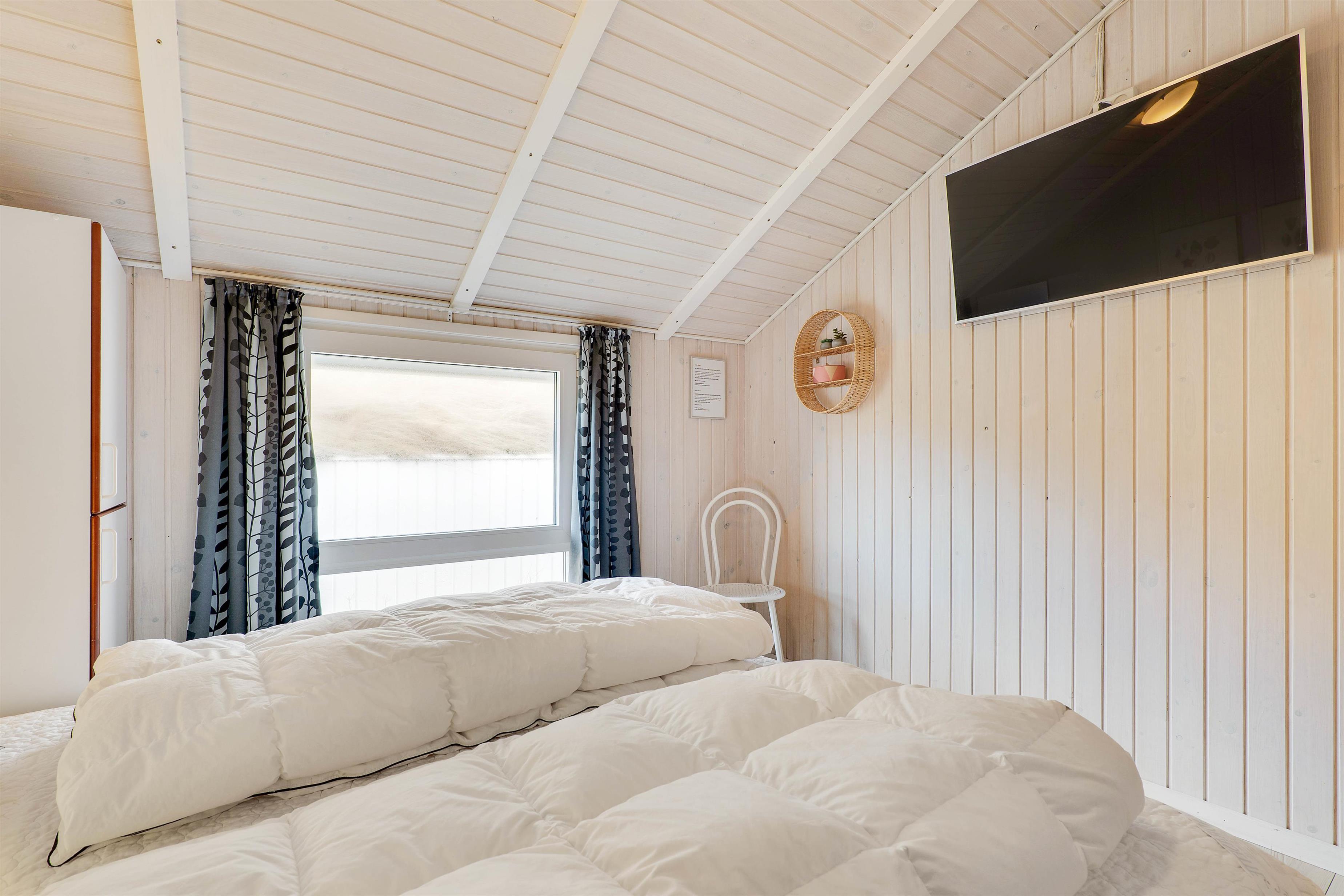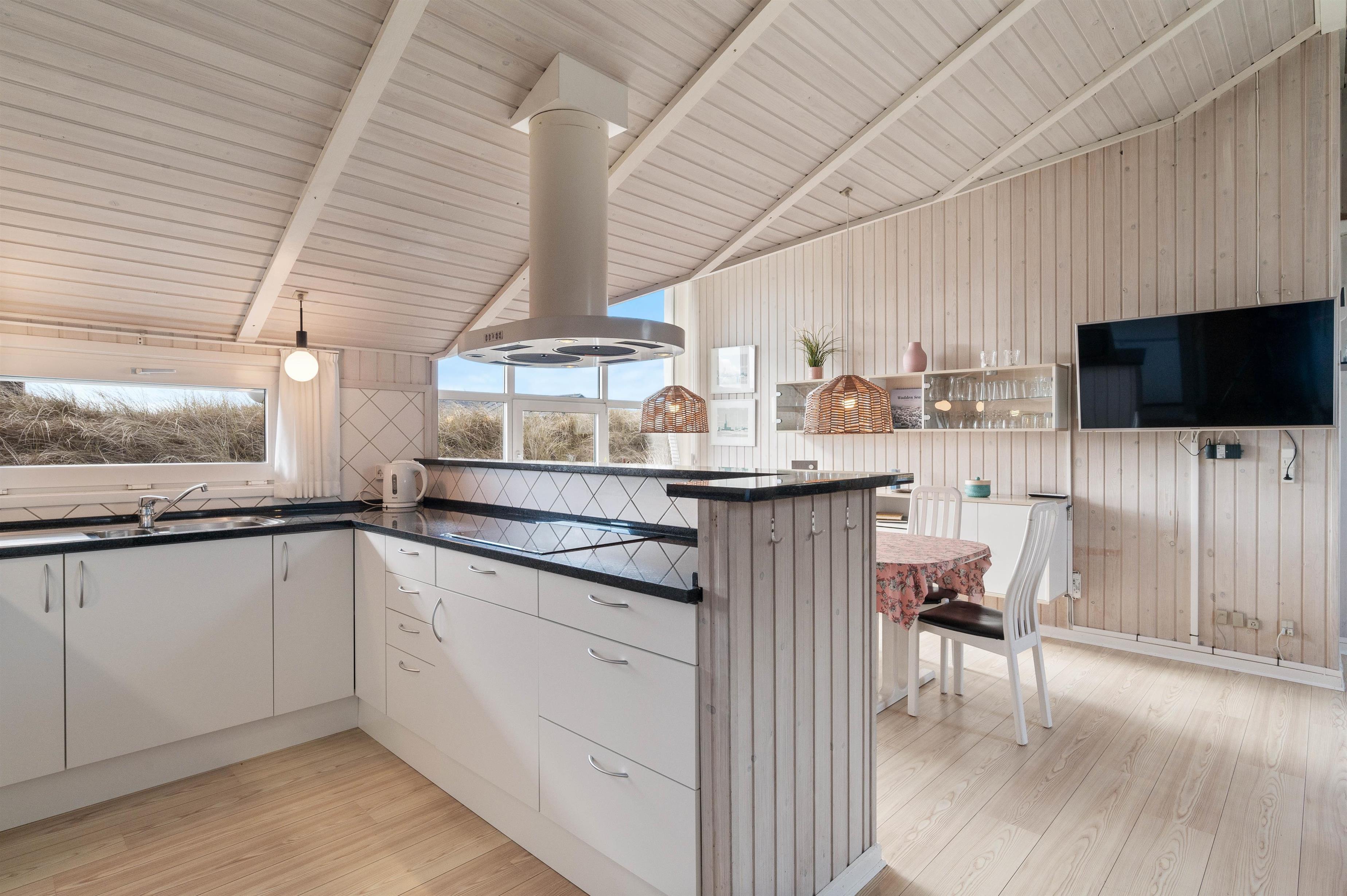 The open-plan kitchen is well-equipped, naturally including a dishwasher. Fishing enthusiasts will appreciate the 90-litre freezer capacity. The open-plan living area also features an energy-efficient heat pump, allowing you to maintain your ideal temperature throughout the holiday home.