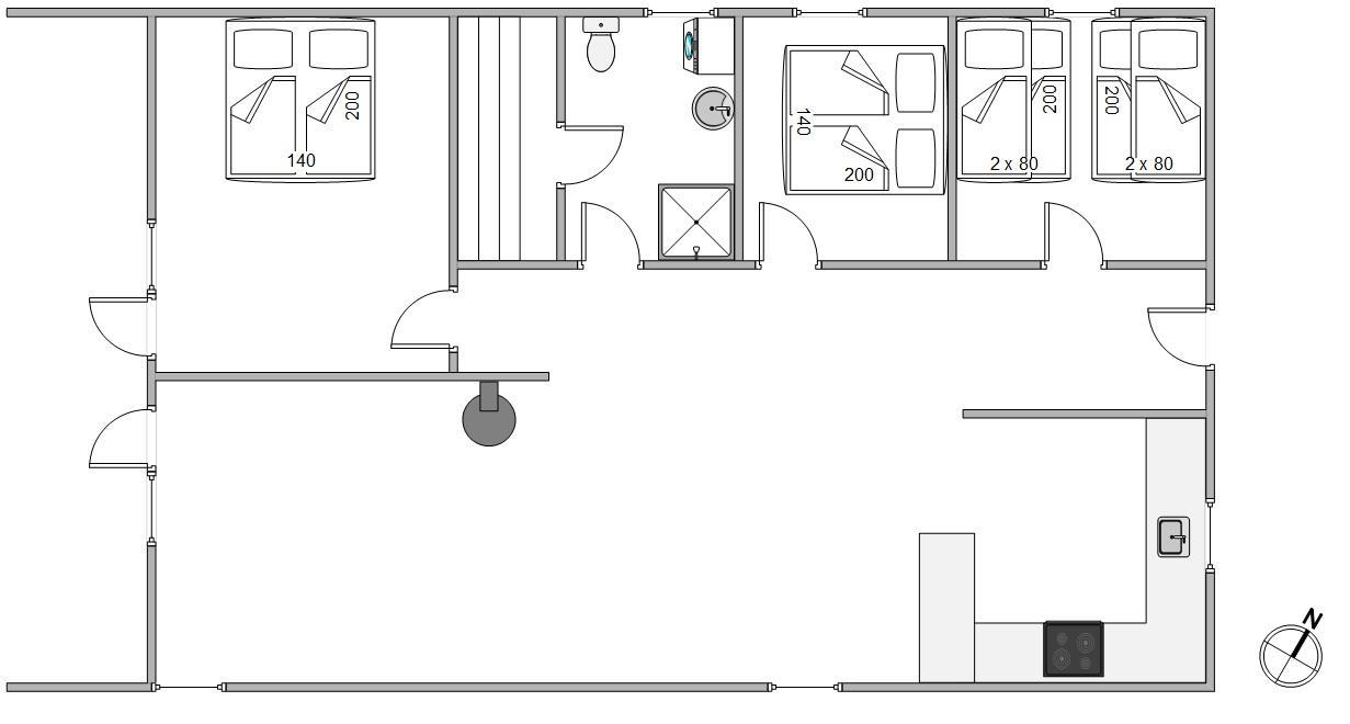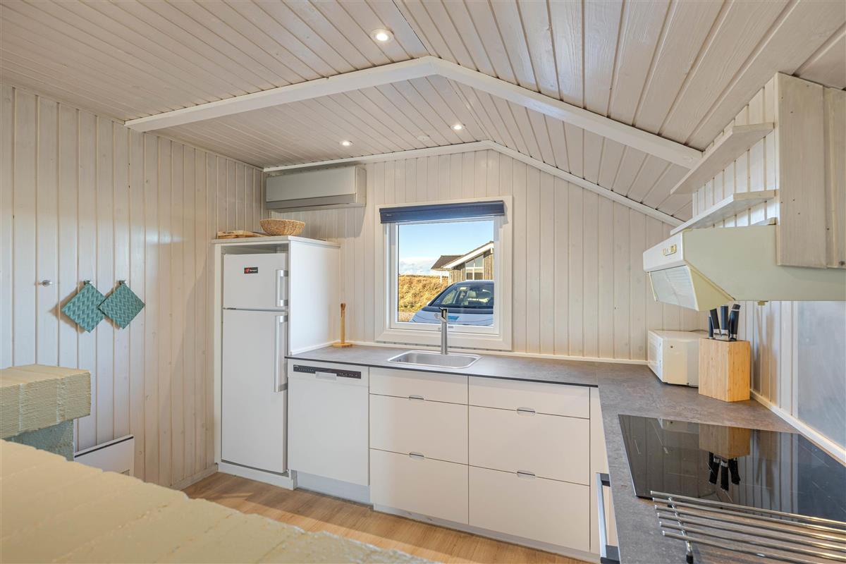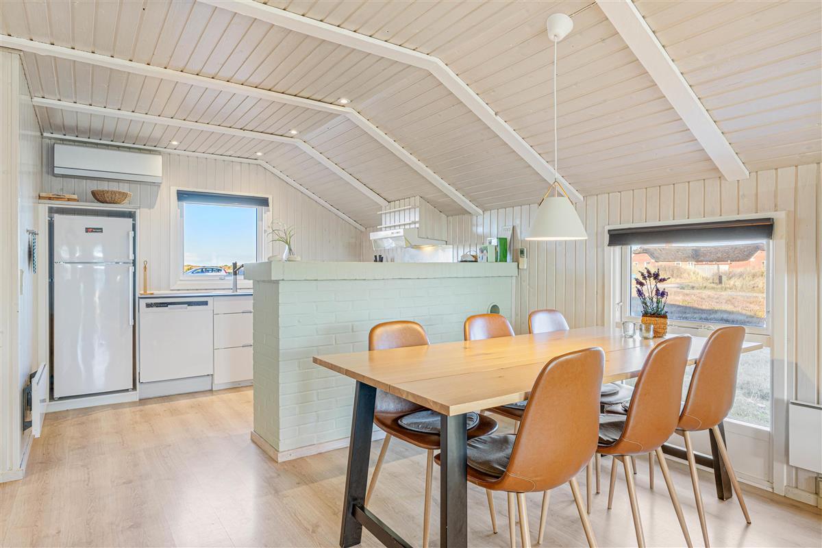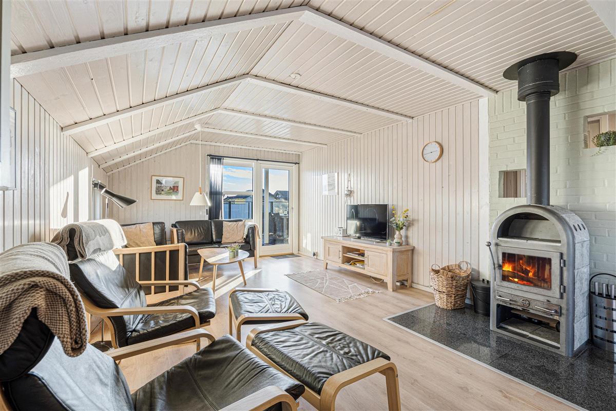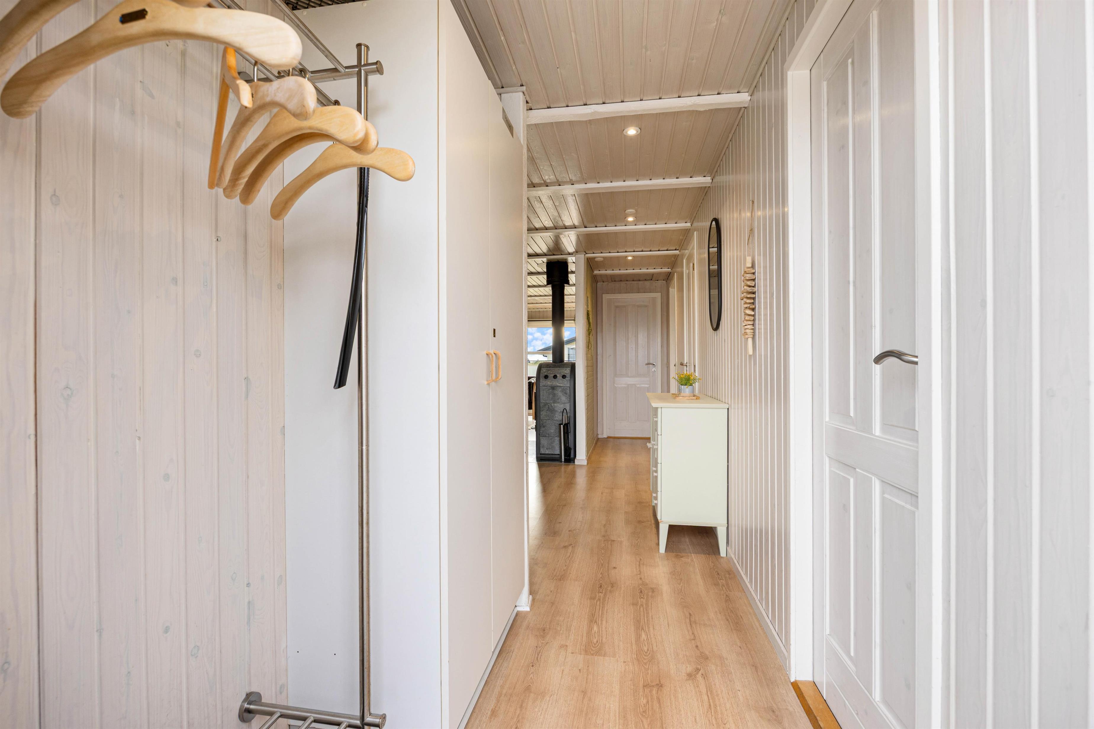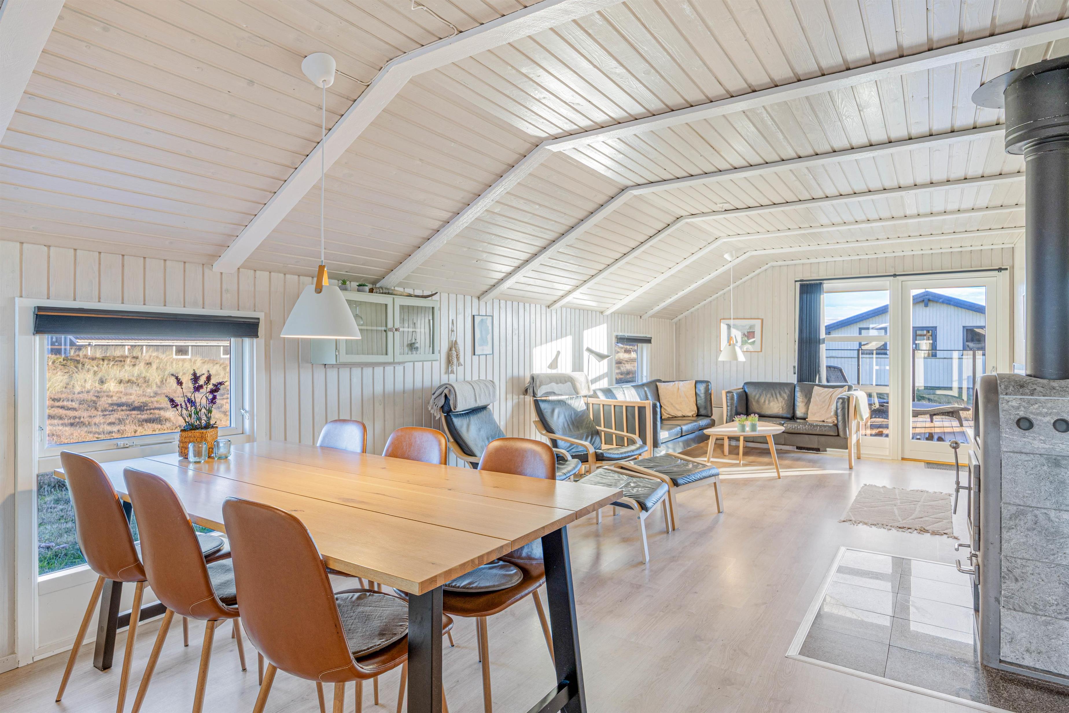 The holiday home at Arvidvej 128 welcomes you with typical Danish warmth and cosiness. Extensive use of light wood, combined with numerous windows, creates a bright and airy atmosphere.