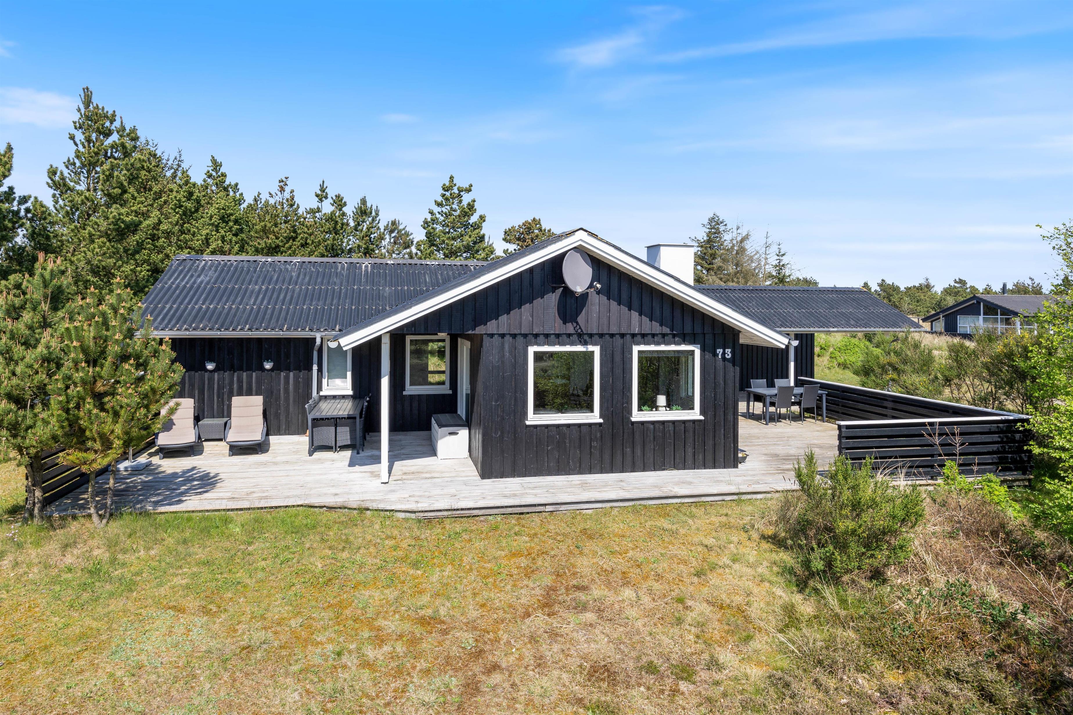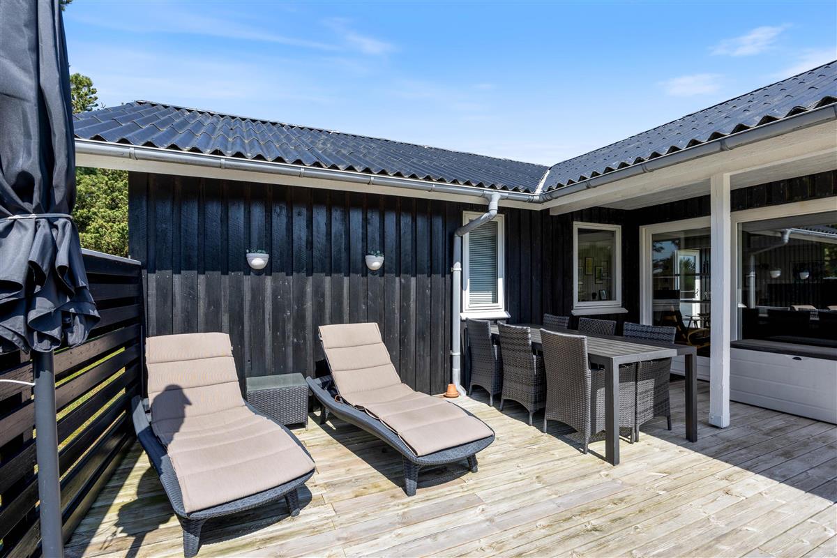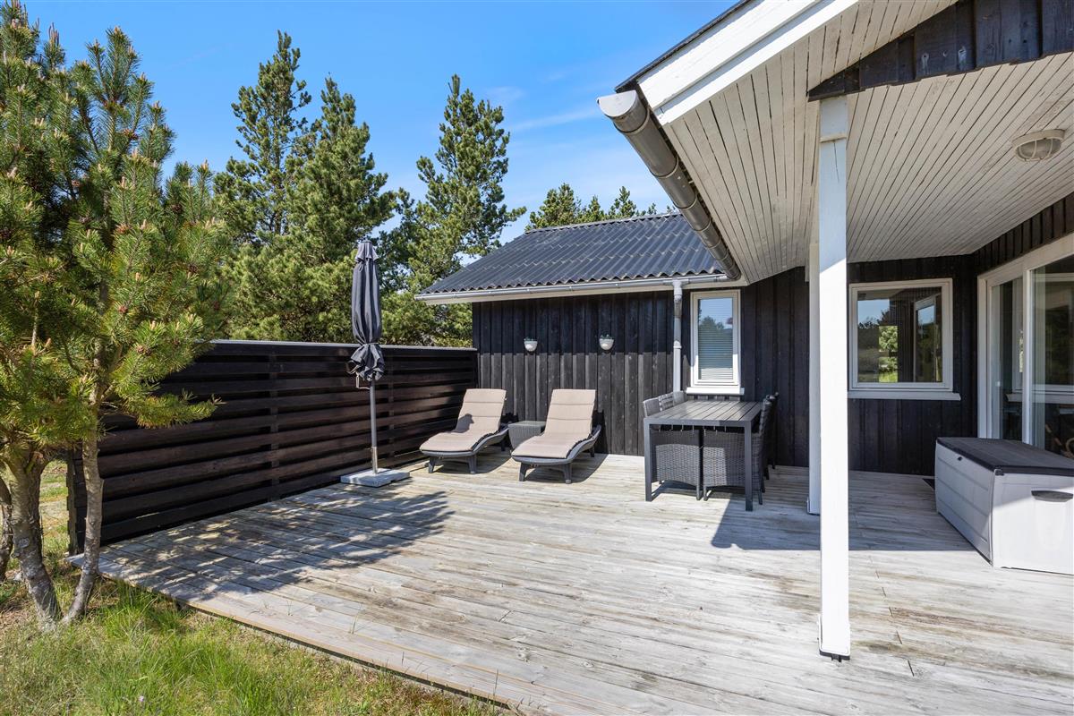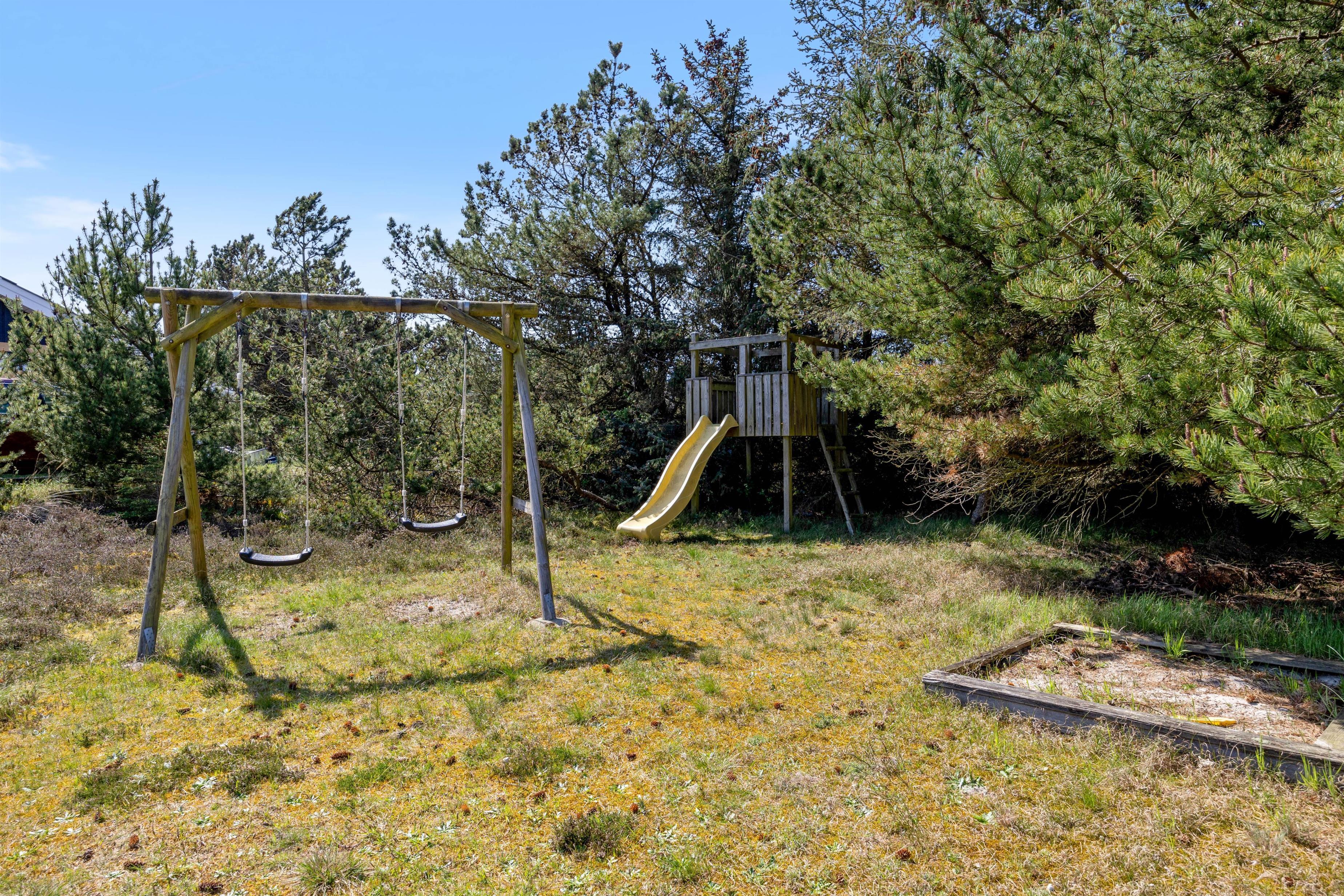 The holiday home enjoys a quiet location at the end of a cul-de-sac, surrounded by the beautiful nature of the Danish North Sea coast. The private terrace is furnished with garden furniture and offers several sheltered spots, perfect for enjoyable barbecue evenings. Children will love the play tower with slide, sandpit and swing.