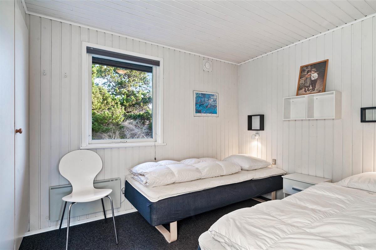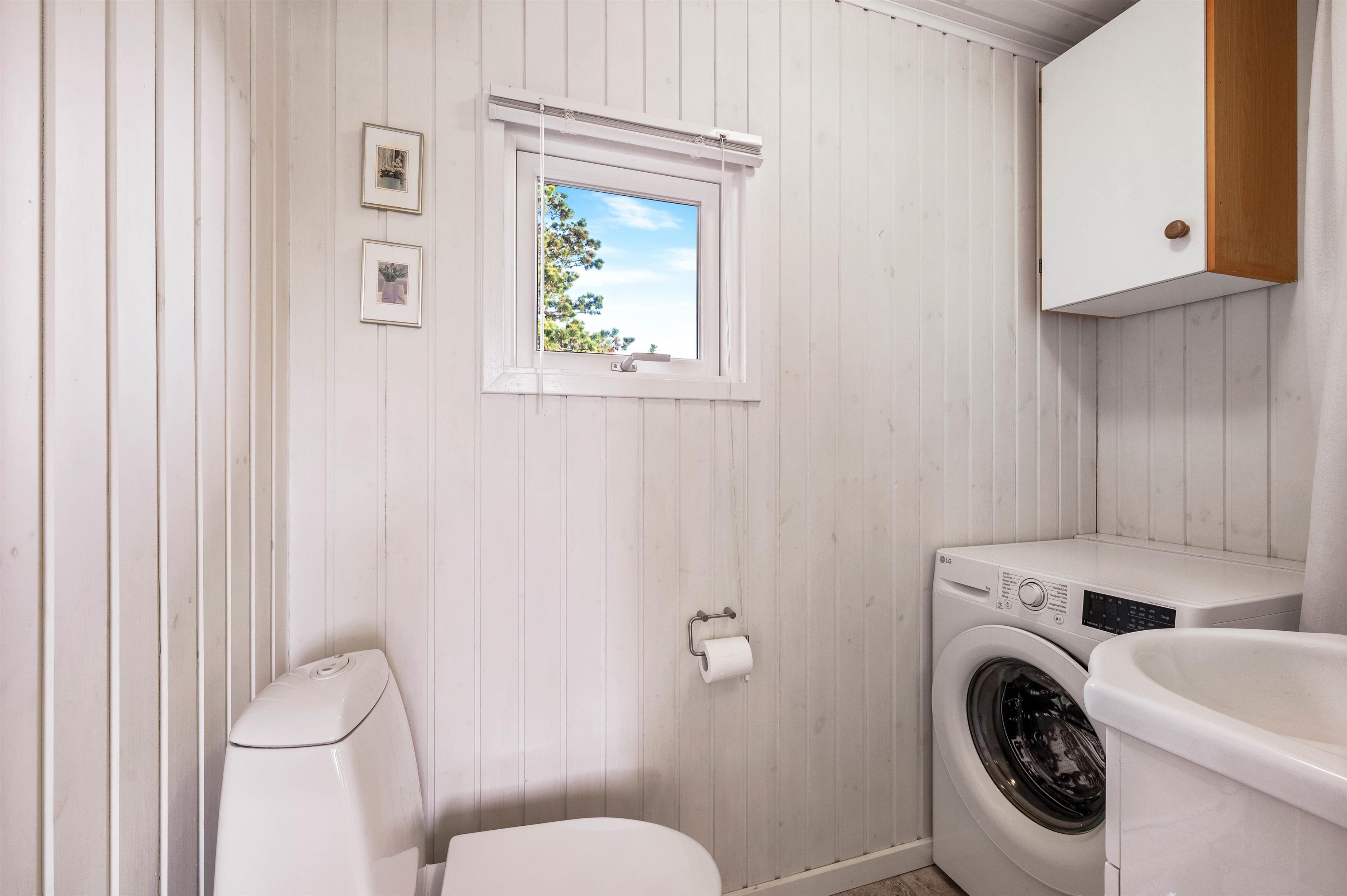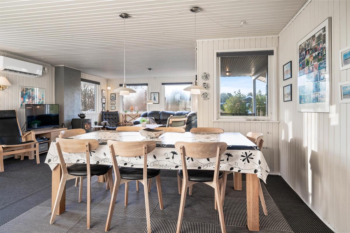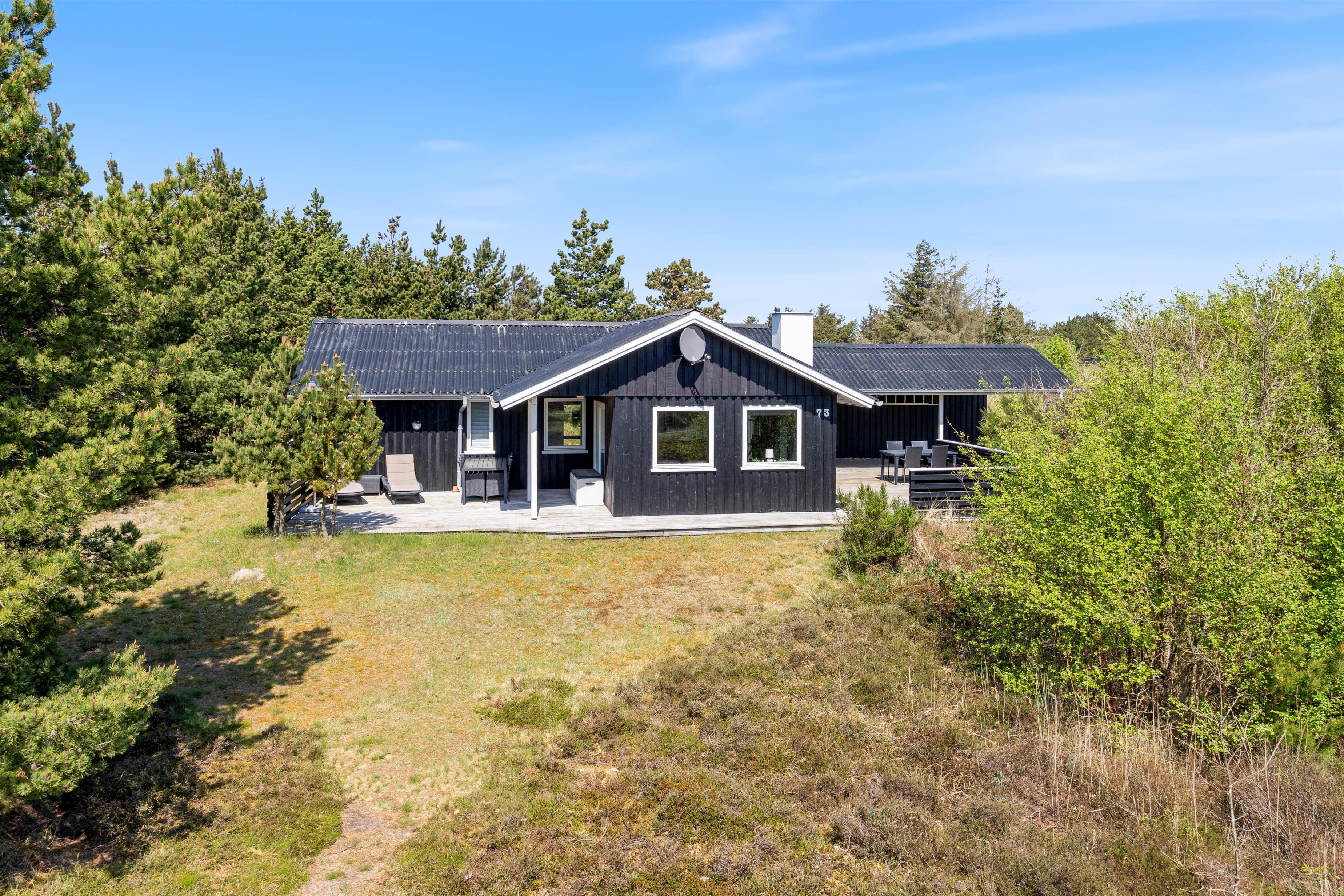 The holiday home enjoys a quiet location at the end of a cul-de-sac, surrounded by the beautiful nature of the Danish North Sea coast. The private terrace is furnished with garden furniture and offers several sheltered spots, perfect for enjoyable barbecue evenings. Children will love the play tower with slide, sandpit and swing.
