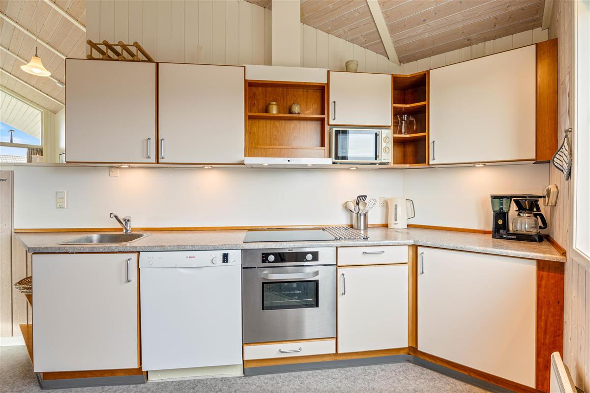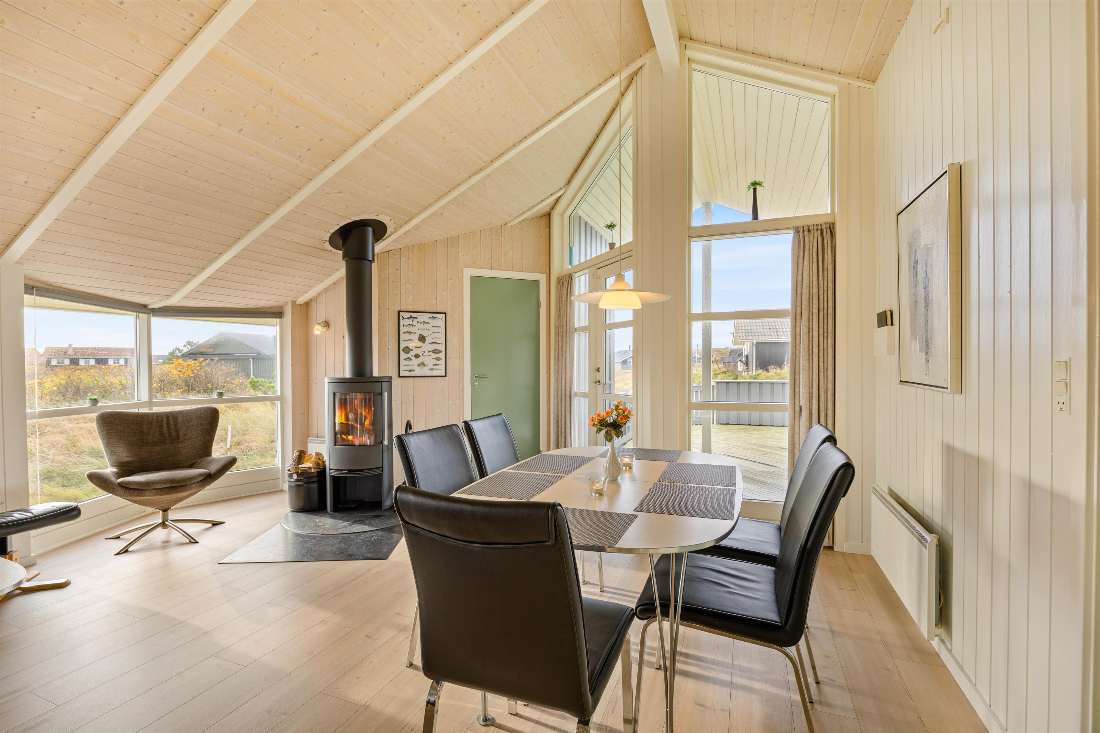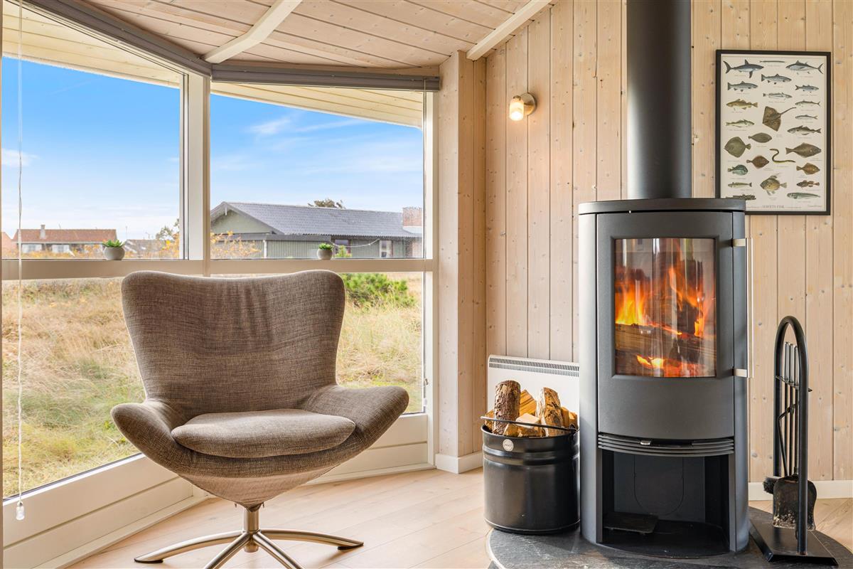 The holiday home's location is not only peaceful and scenic, but you're also close to the heart of Bjerregård, just 500 metres from the wide sandy beach. Take a dip in the blue waves on a hot summer's day, walk along the shore in the autumn breeze while the North Sea waves dance in the wind, or watch beautiful sunsets from the dunes. There's always something new to experience.