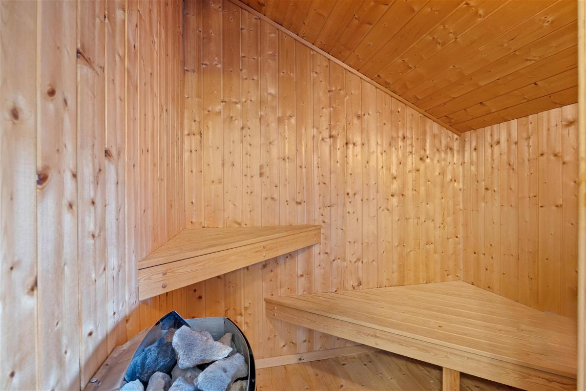 The bathroom, renovated in 2025, is also accessible from the living area and features underfloor heating. Here you can relax in the whirlpool and sauna, leaving everyday stress behind. You'll also find a washing machine - particularly handy when travelling with young children.