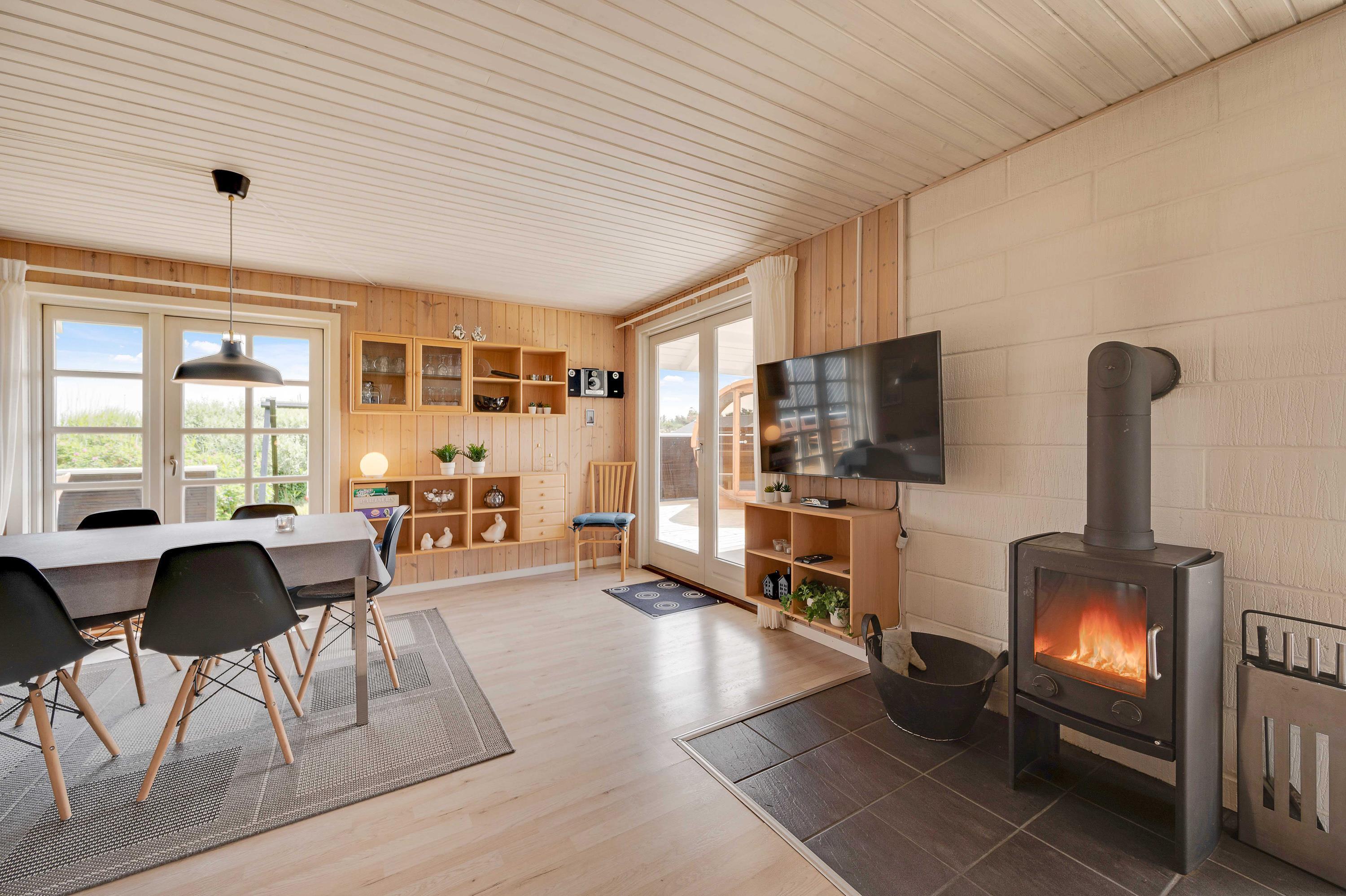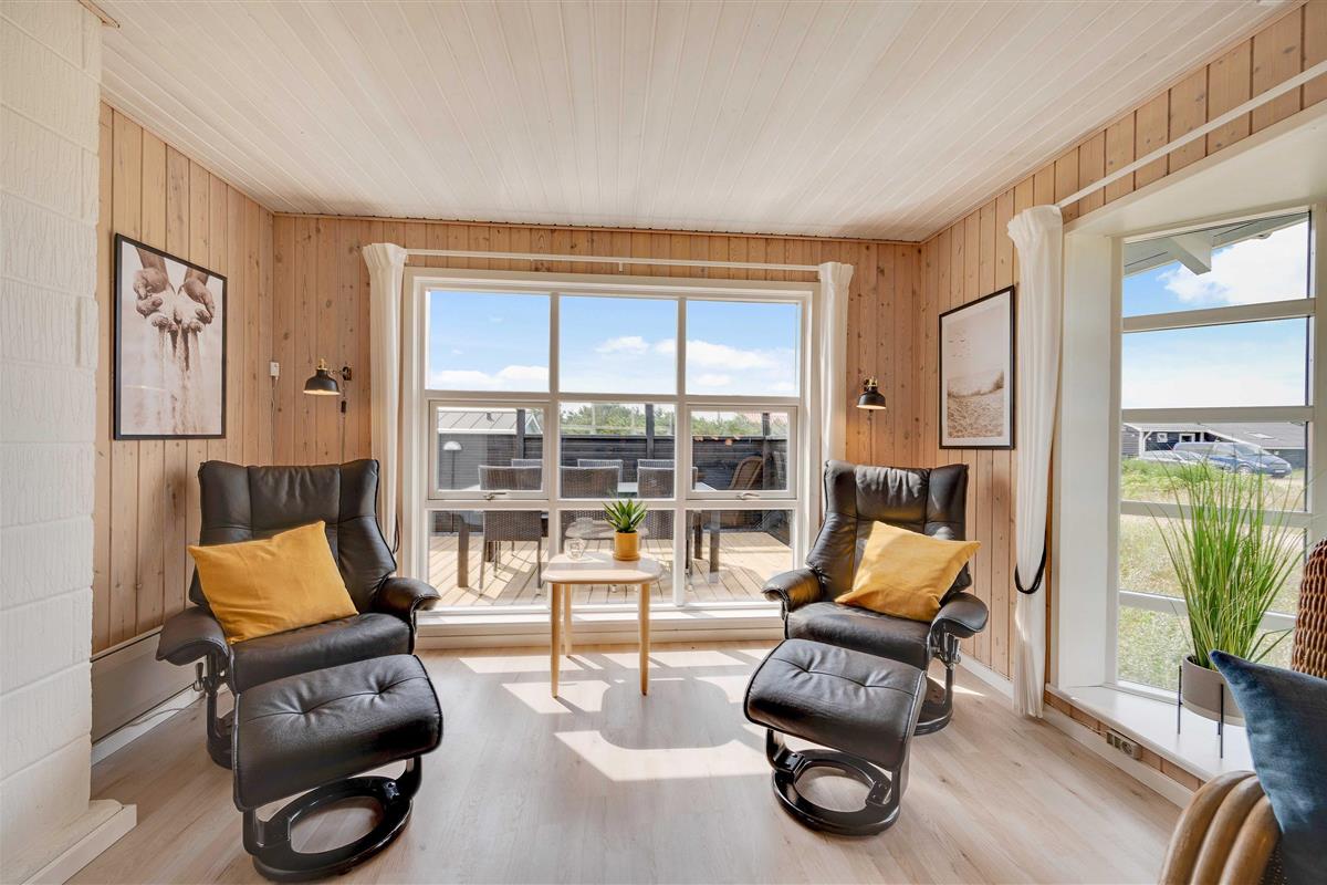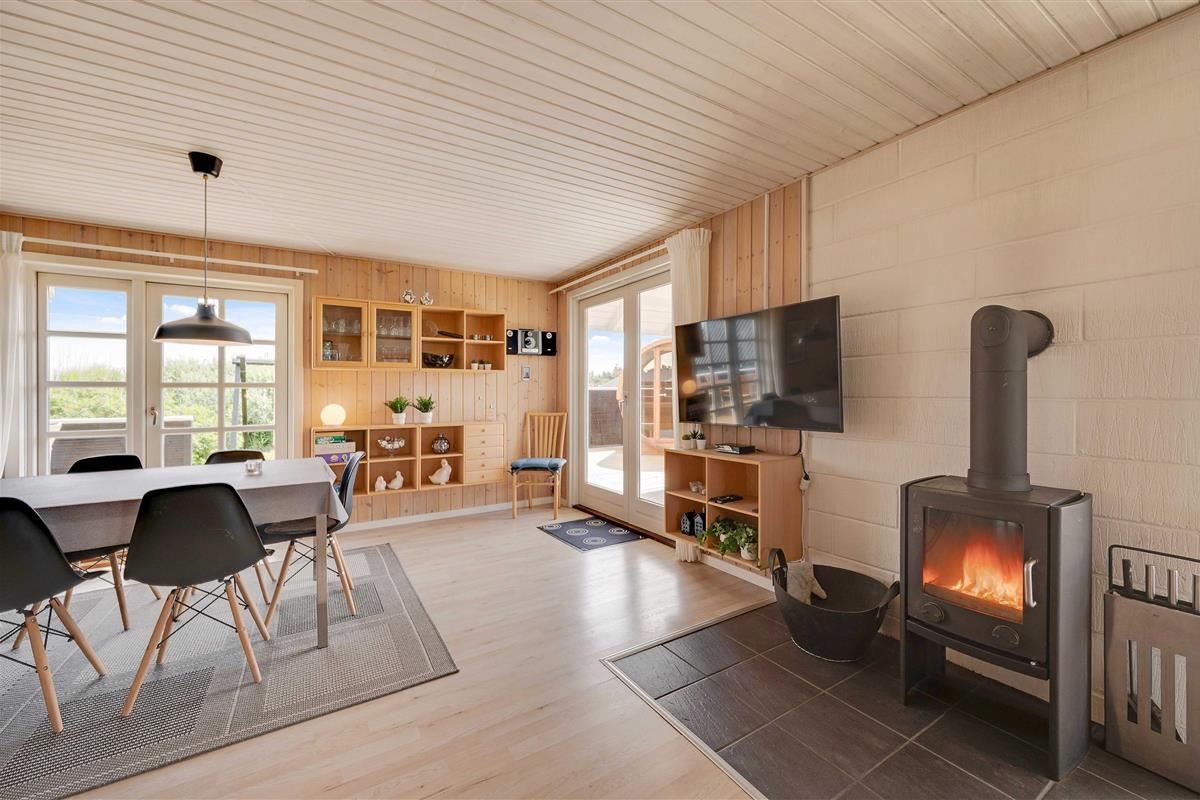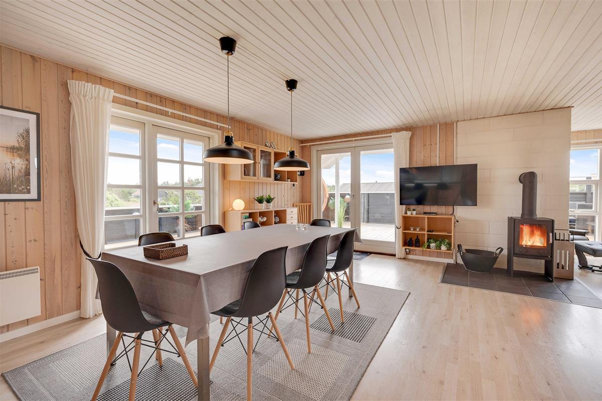 Your holiday home is situated in the popular resort of Bjerregård, just 500 metres from the dramatic Danish West Coast. The area offers extensive walking and cycling routes through the breathtaking natural surroundings of Ringkøbing Fjord. This destination is particularly popular with anglers and water sports enthusiasts.