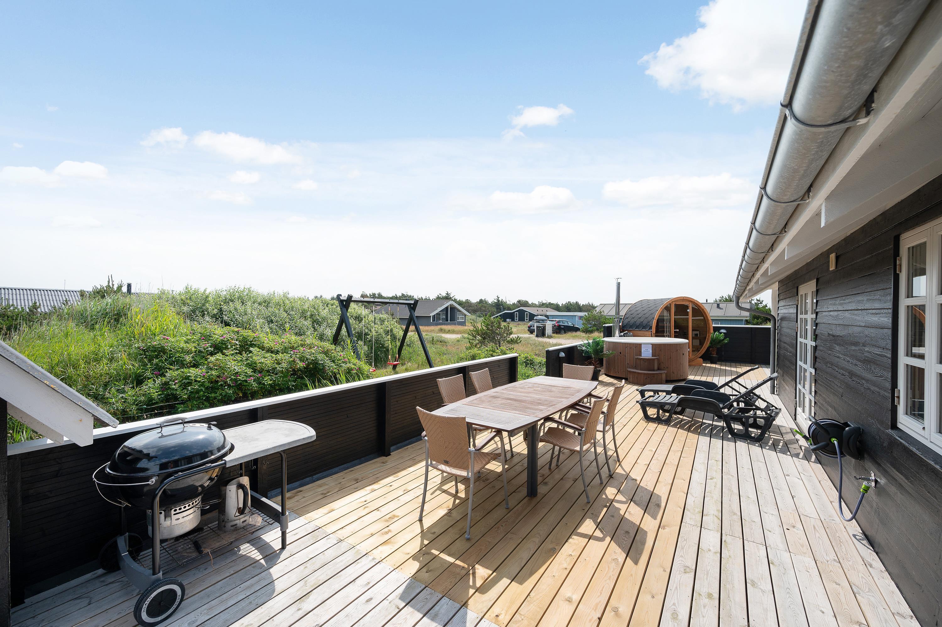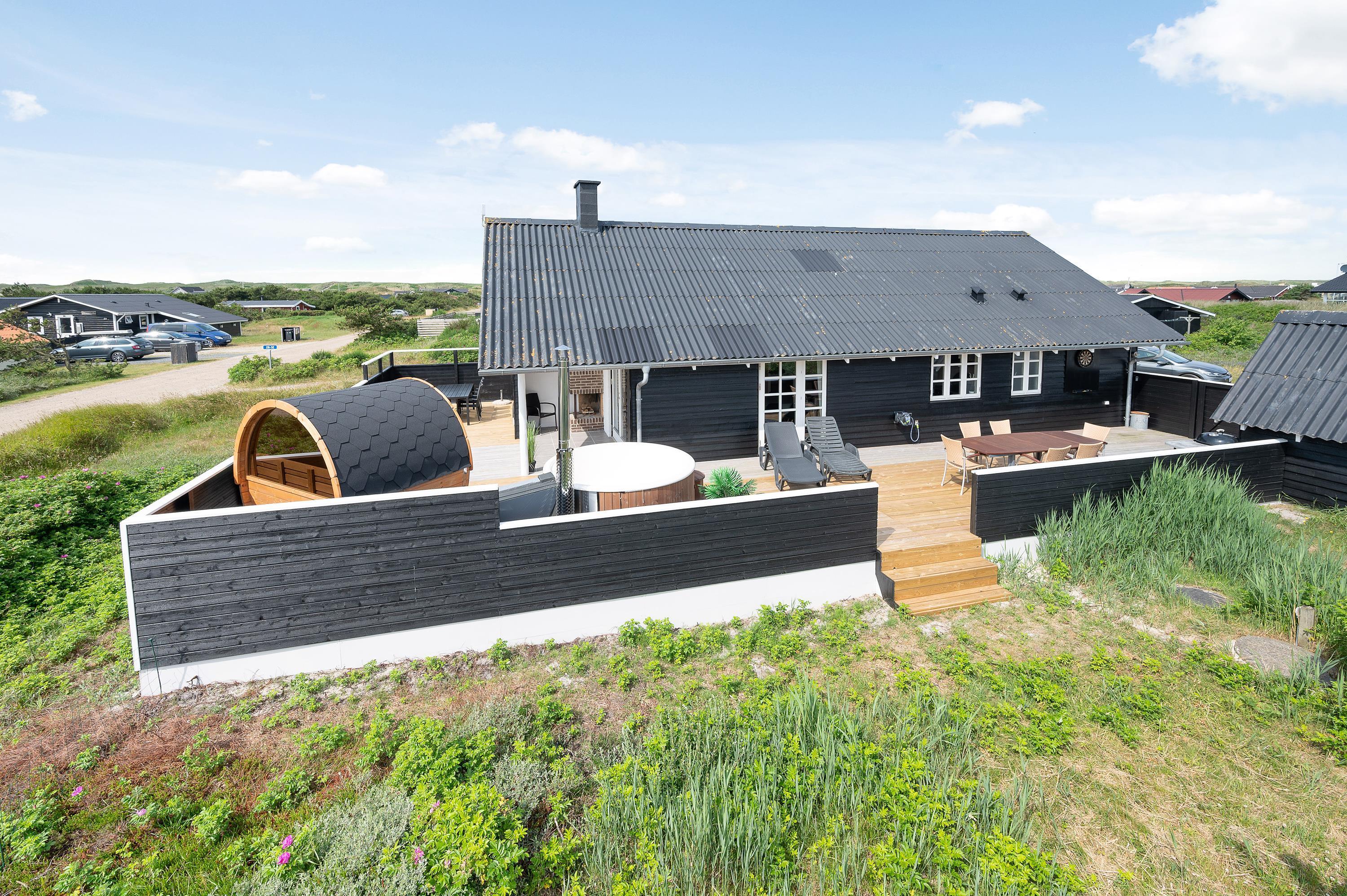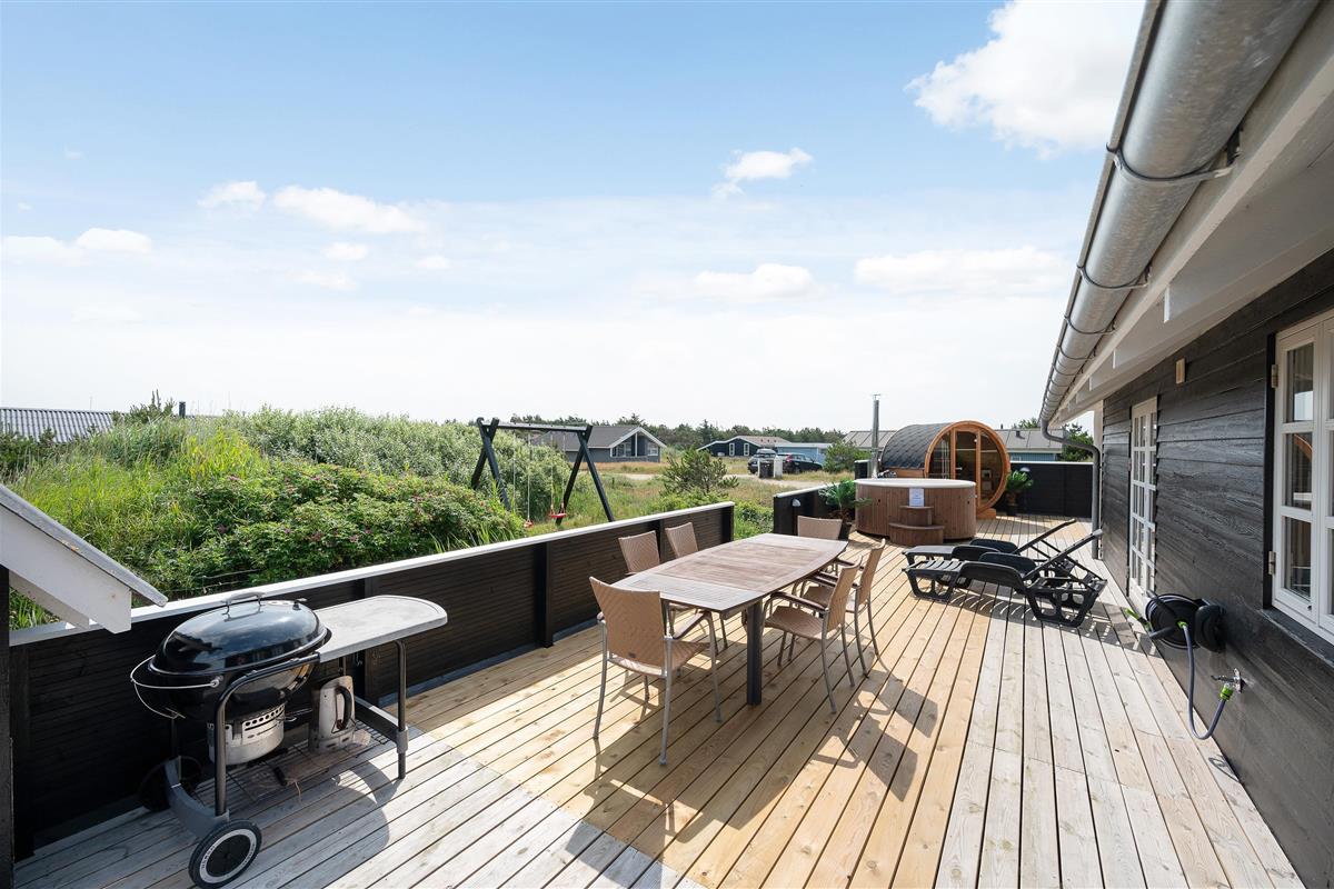 After an eventful day, unwind in the outdoor sauna on the terrace. Afterwards, relax in the hot tub while watching the colourful sunset over the Bjerregård dunes, perhaps with a refreshing glass of wine.