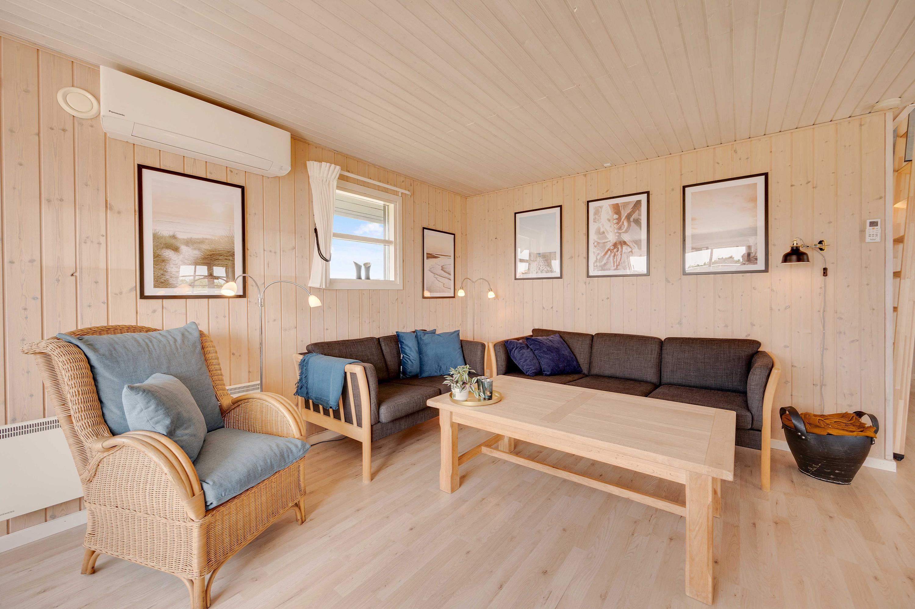 This thoughtfully furnished holiday home features a welcoming living area with a comfortable corner sofa that fits the whole family. Enjoy a film night on the sofa, or take in the views of Bjerregård's natural surroundings from the comfortable armchairs by the window.
