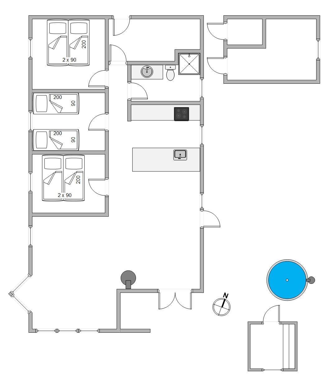 For your convenience, the holiday home includes a dishwasher in the open-plan kitchen, plus a washing machine and tumble dryer in the entrance area. The lovingly decorated accommodation offers three cosy bedrooms with two double beds and two single beds, ensuring a peaceful night's rest after exciting days at the beach.