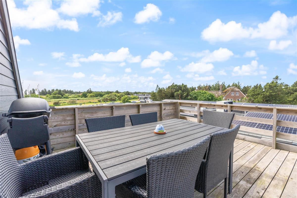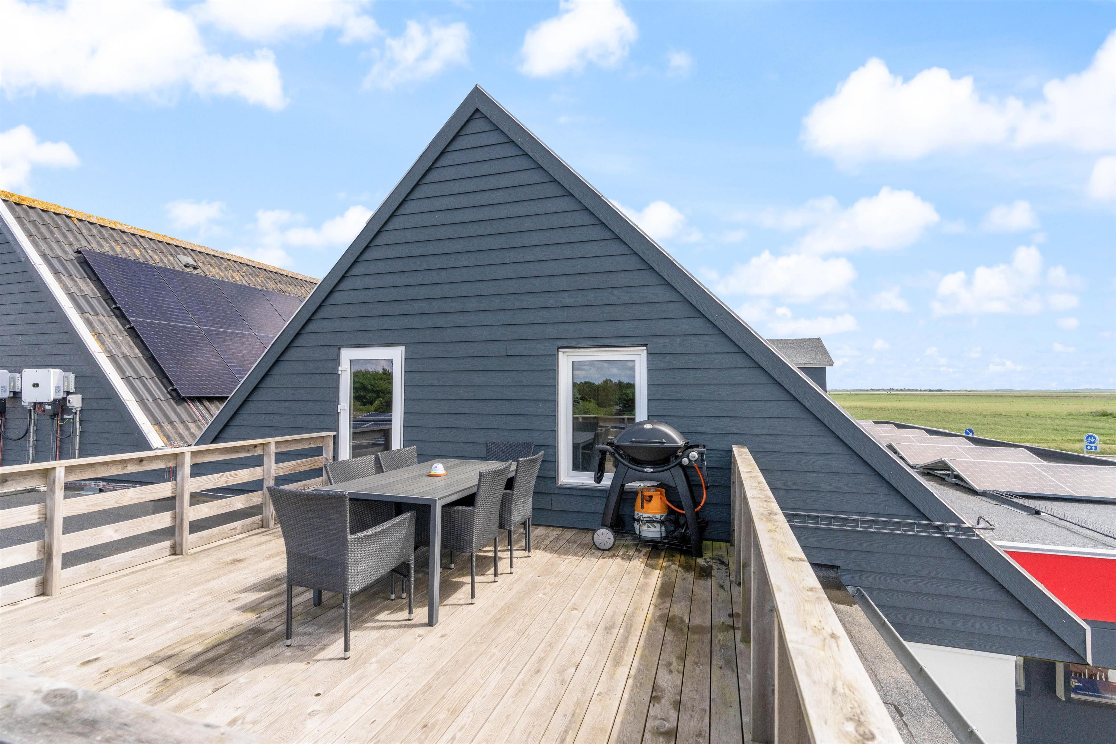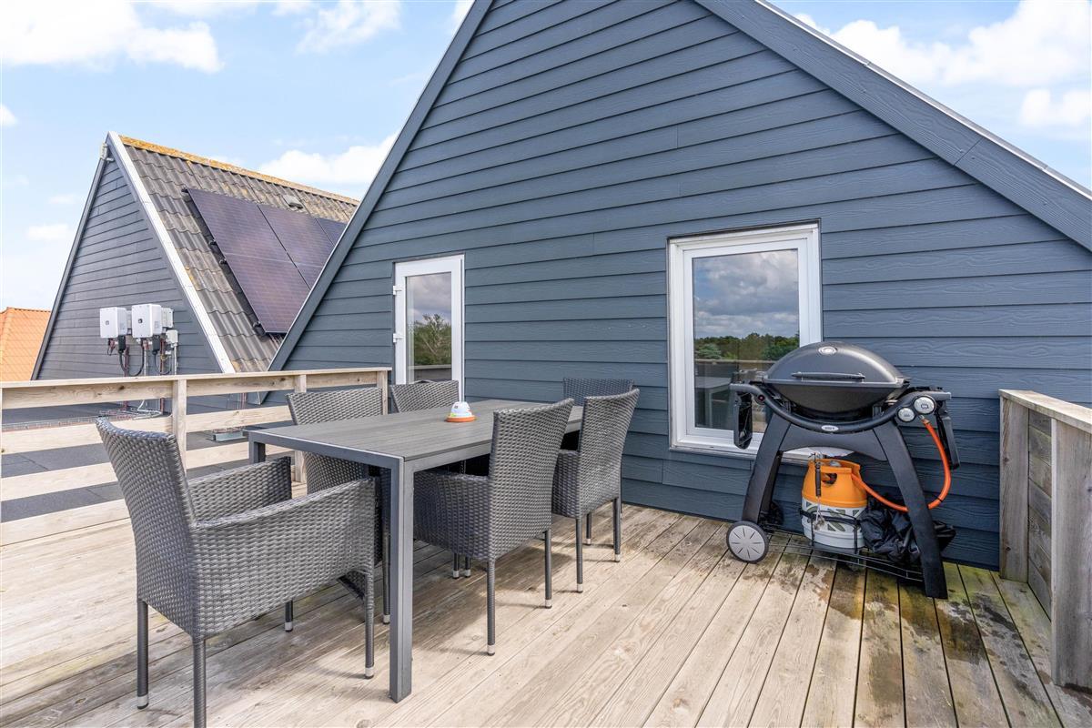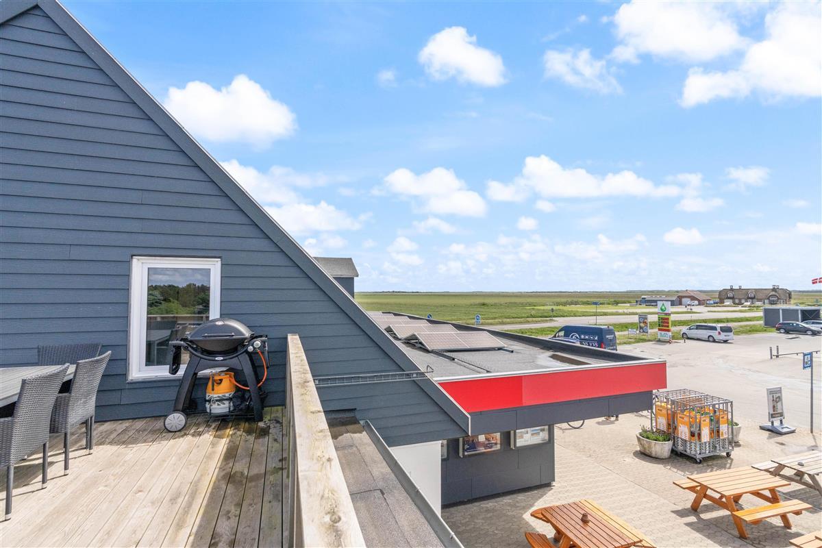 The cosy roof terrace has everything you need for your holiday. It comes equipped with balcony furniture, sun loungers and a barbecue. From here, you can observe the comings and goings at the local shop while enjoying beautiful southerly views.
