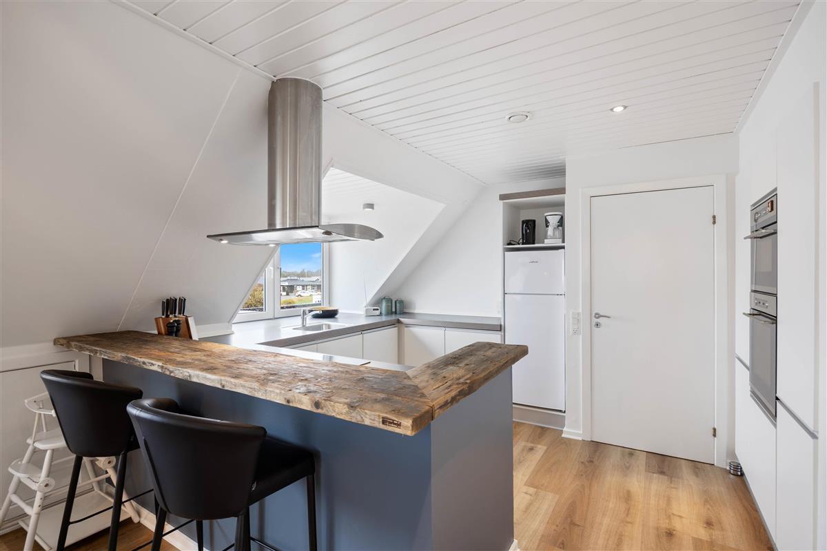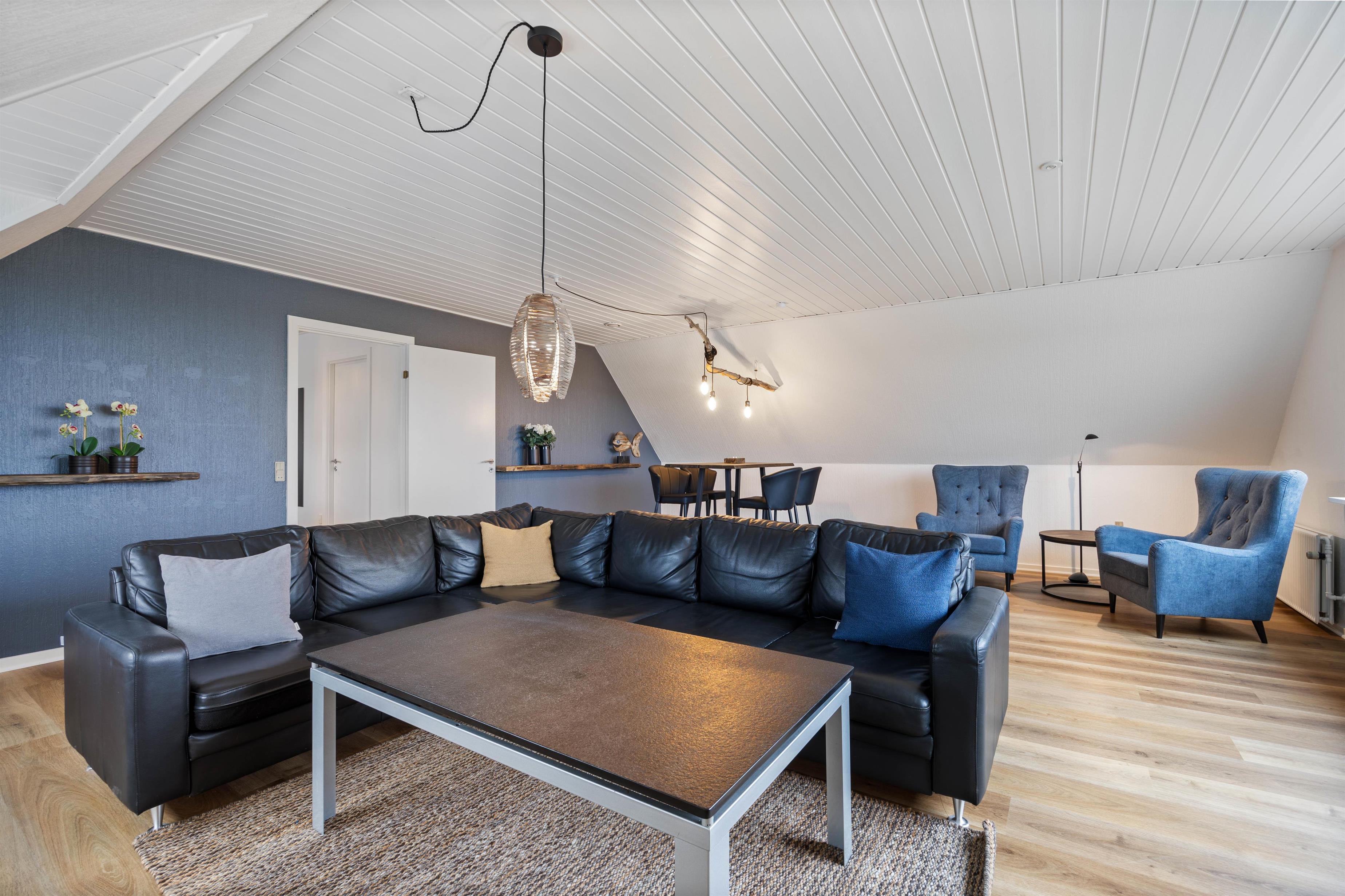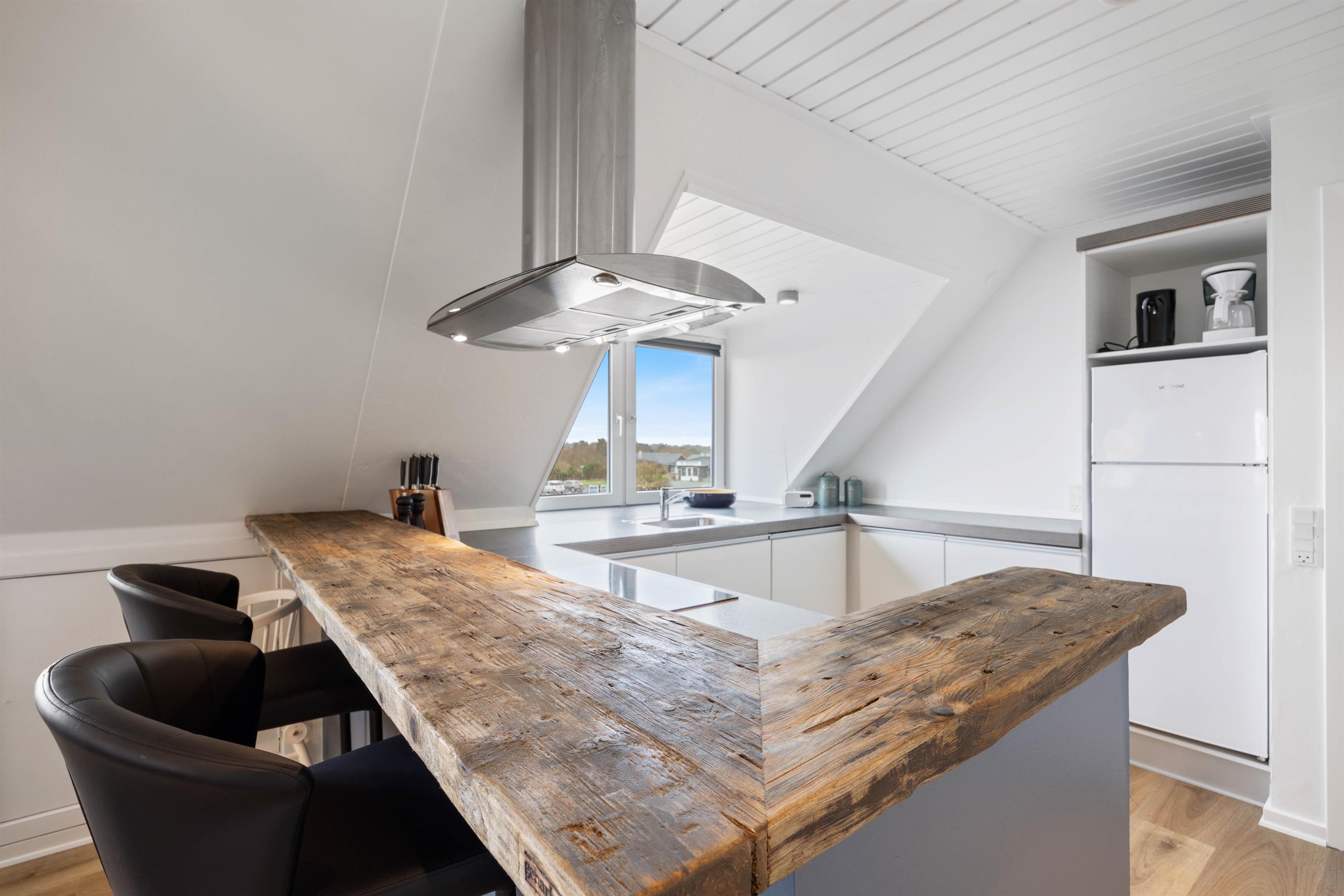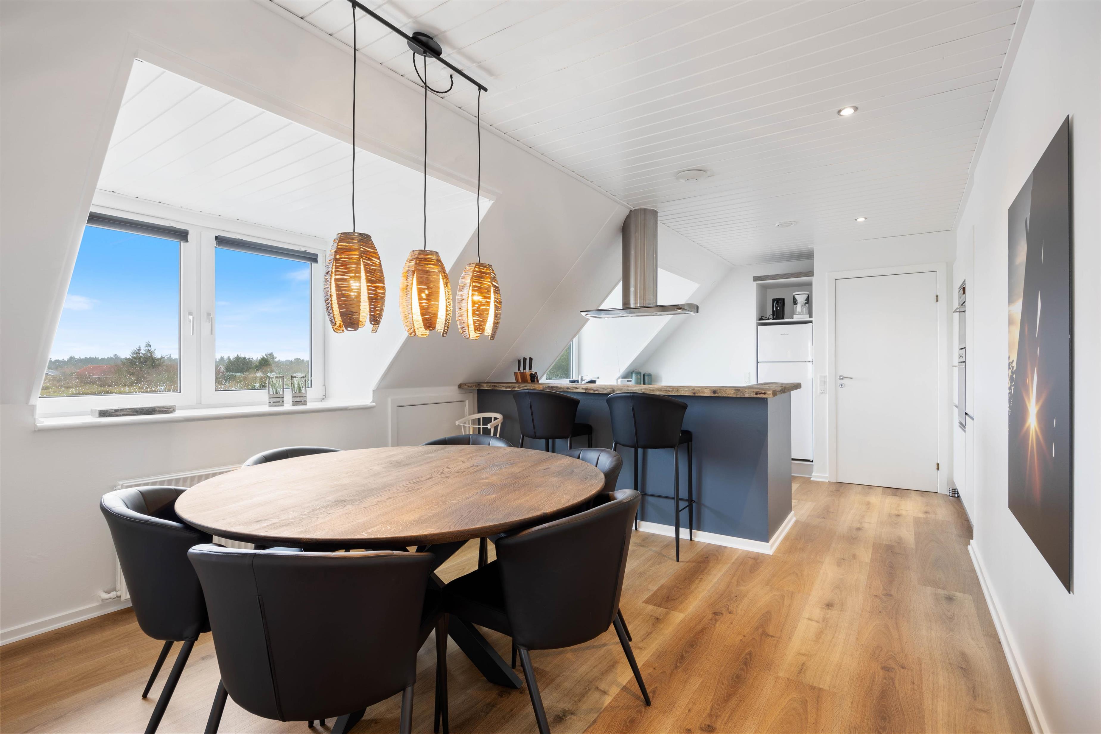Looking for a holiday apartment in the beautiful resort of Bjerregård? This 92-square-metre apartment, renovated in 2024 and located directly above the local shop in Bjerregård, could be your perfect holiday retreat. It comfortably accommodates 6 people and up to two dogs for a wonderfully relaxing holiday. As an added bonus, all utilities are included in the price.