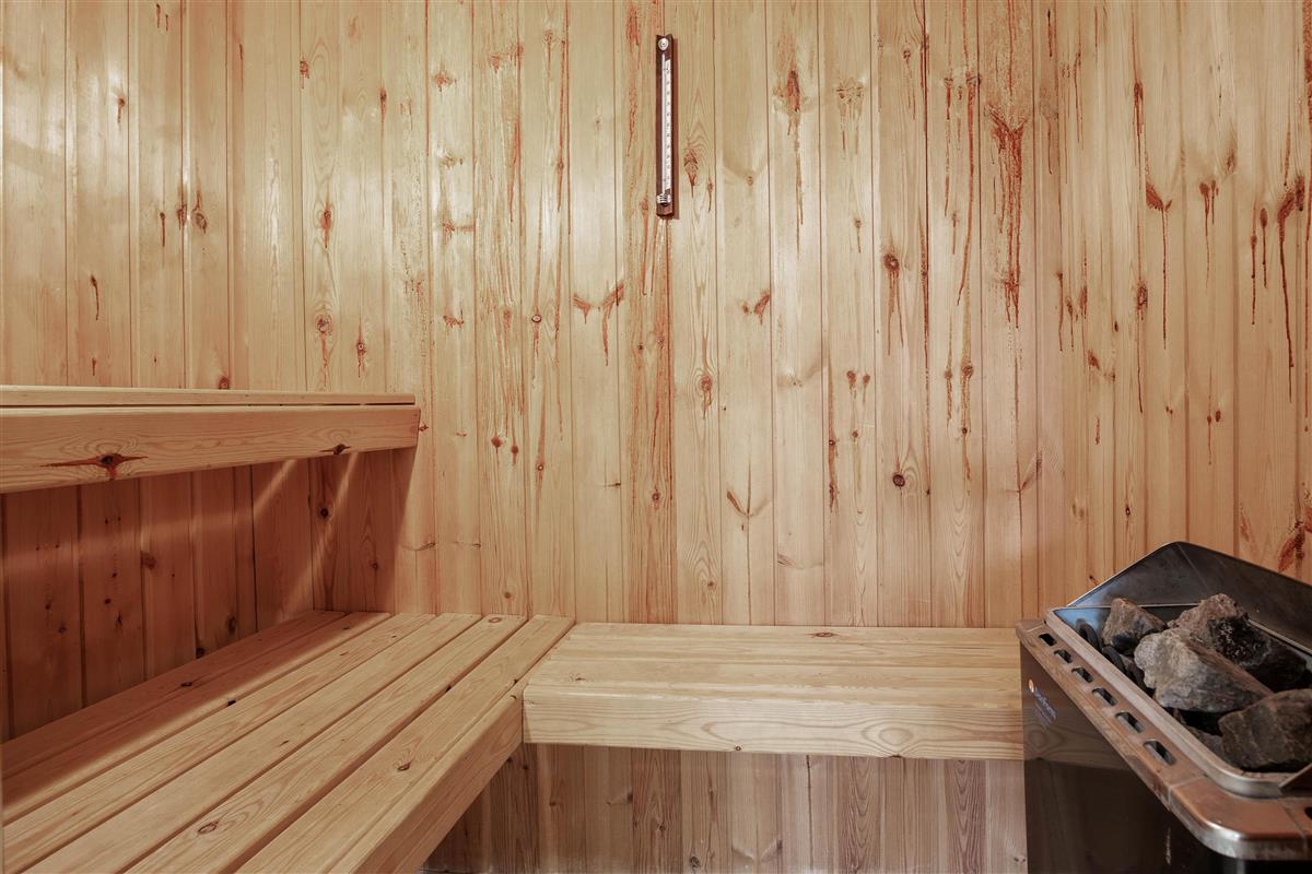 The private sauna, accessed directly from the bathroom, provides warmth and relaxation after a long beach walk.