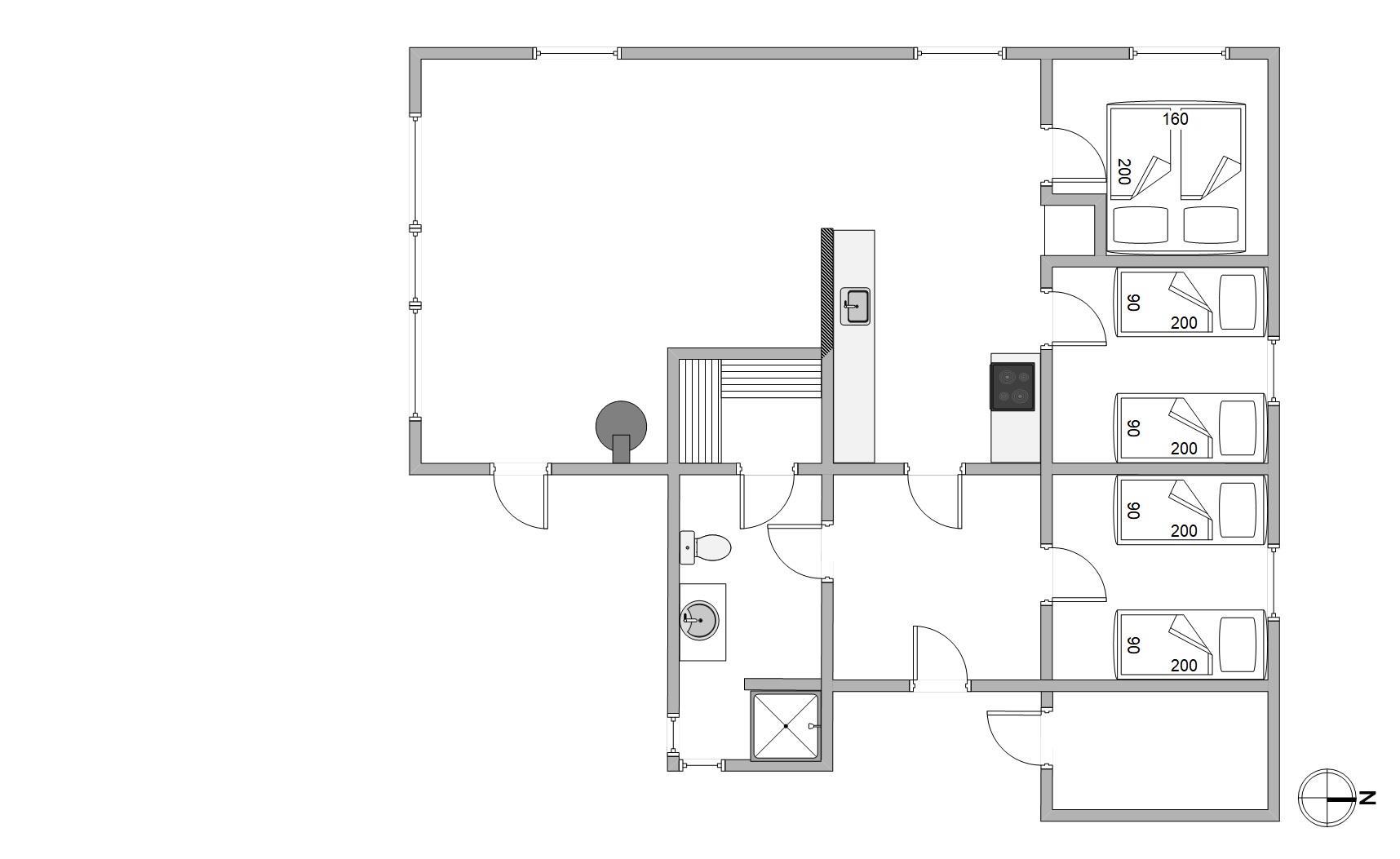 The open-plan living space with kitchen, dining area and living room offers plenty of room for family gatherings. While the holiday chef prepares the children's favourite meals, they can play at the dining table, and the large seating area is perfect for evening family film screenings.