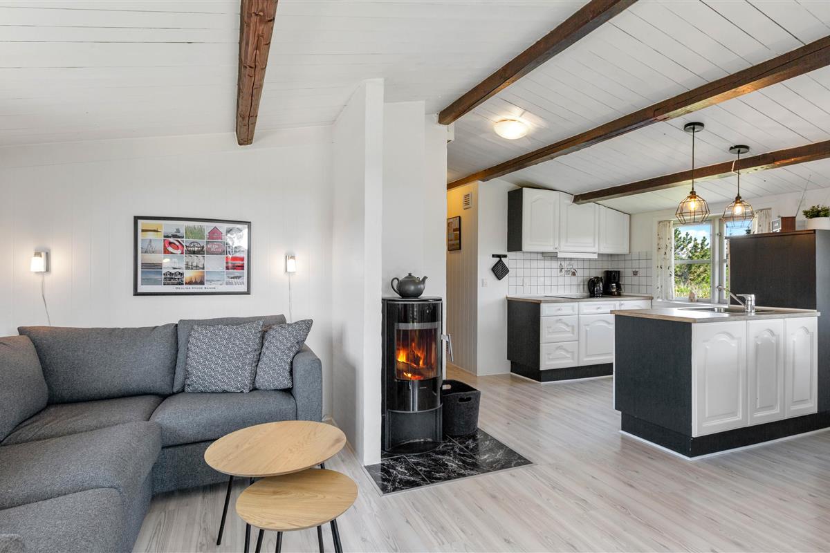 The crackling wood-burning stove adds extra hygge, while the energy-efficient heat pump provides additional heating when needed. The kitchen with breakfast bar offers plenty of space for sociable cooking evenings. Try out new recipes here, and afterwards, let the dishwasher take care of the cleaning up while you unwind with a glass of wine.