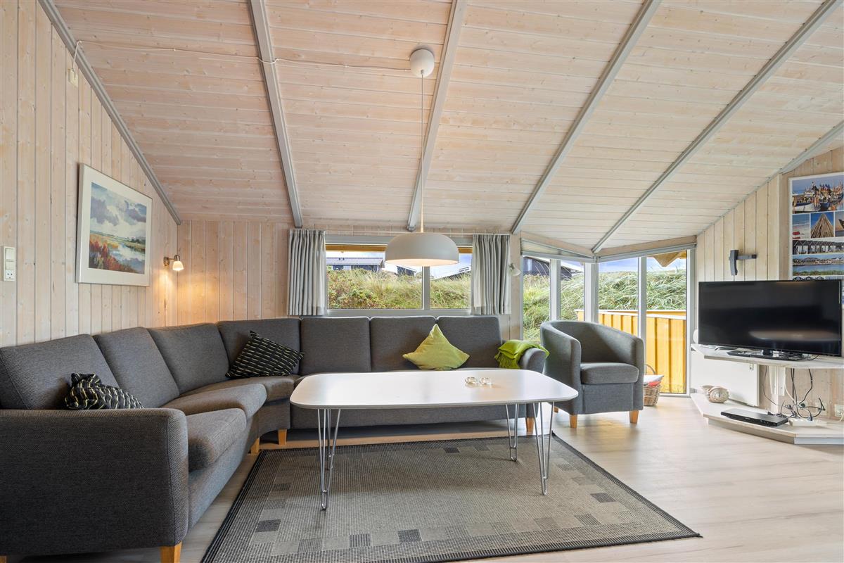 A beautiful holiday home in a prime location, set on natural grounds, very close to the outermost dune line on Denmark's West Coast. Welcoming and spaciously arranged with accommodation for 8 people. Features a sheltered, partially covered terrace.
