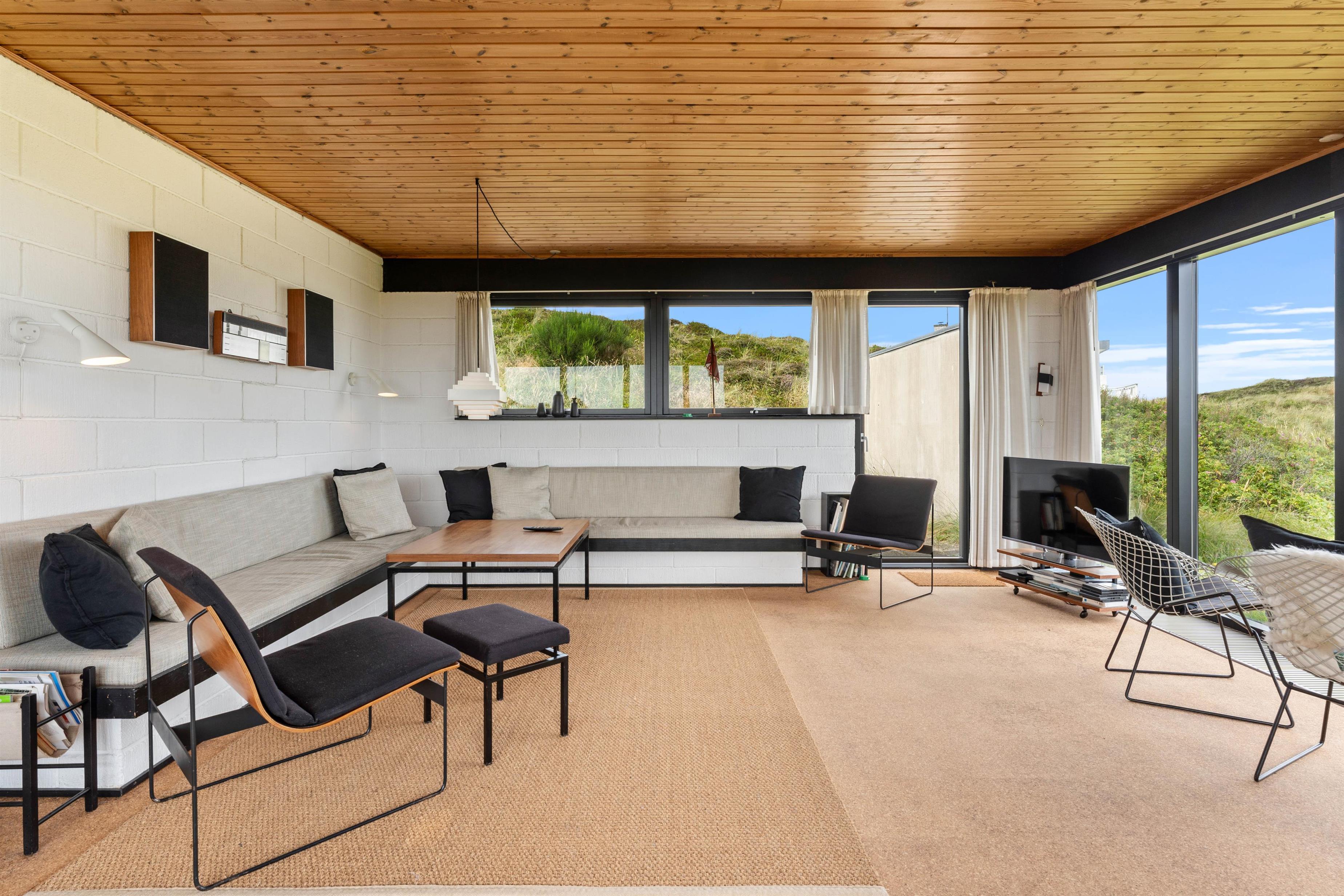 The floor-to-ceiling windows in the living area not only provide fantastic natural light but offer panoramic views of the peaceful surrounding heath and dune landscape.