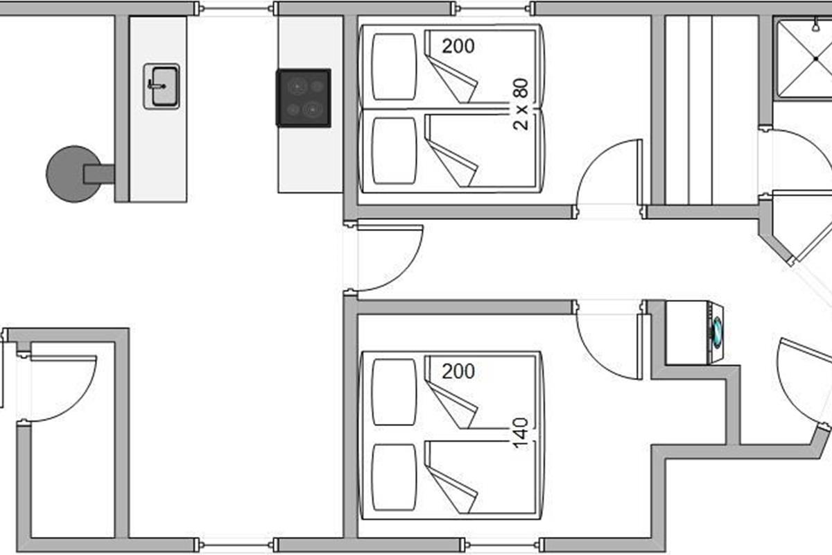 Following the hallway, you'll find the double bedroom on the left, the twin bedroom on the right, and the beautiful, bright living area straight ahead. Here you can watch TV, relax by the wood-burning stove, or prepare delicious meals in the open-plan kitchen. The dishwasher takes care of the cleaning up. When not using the wood-burner, the energy-efficient heat pump provides heating throughout.