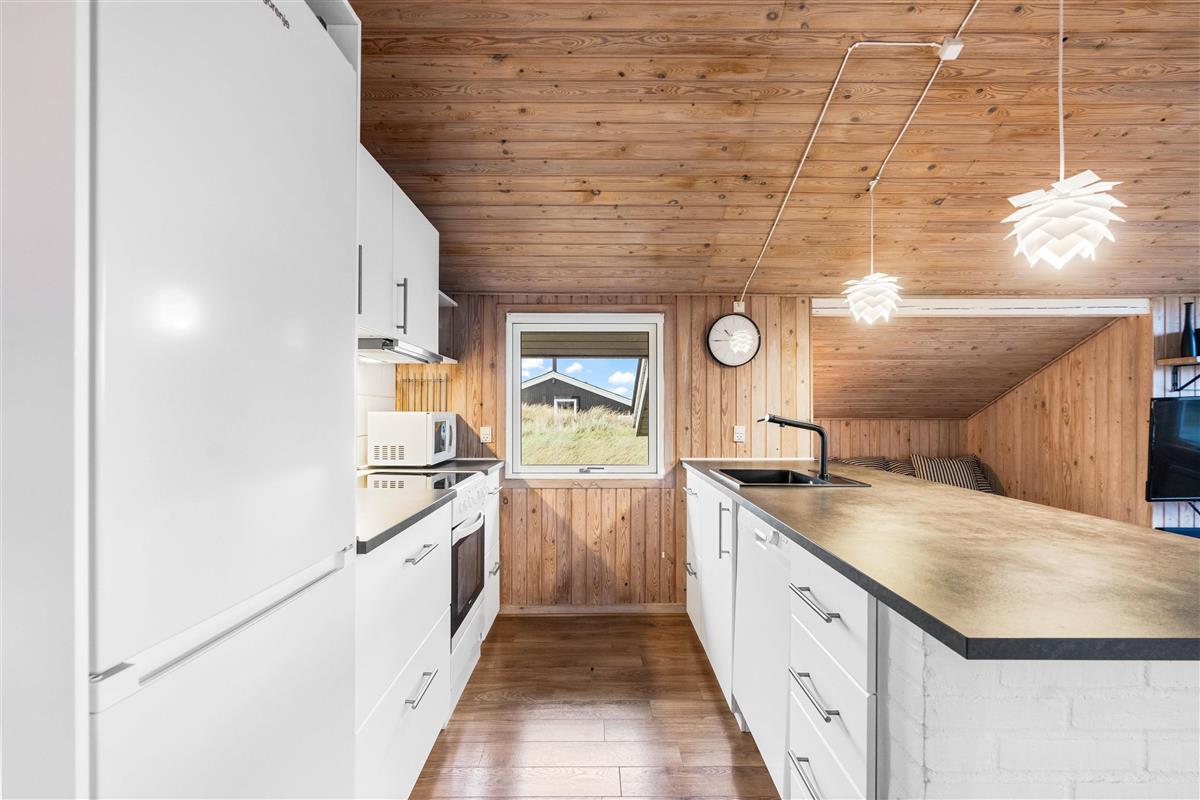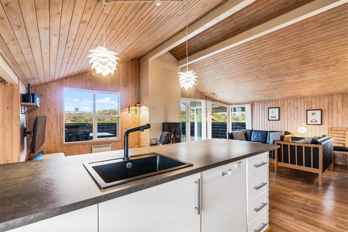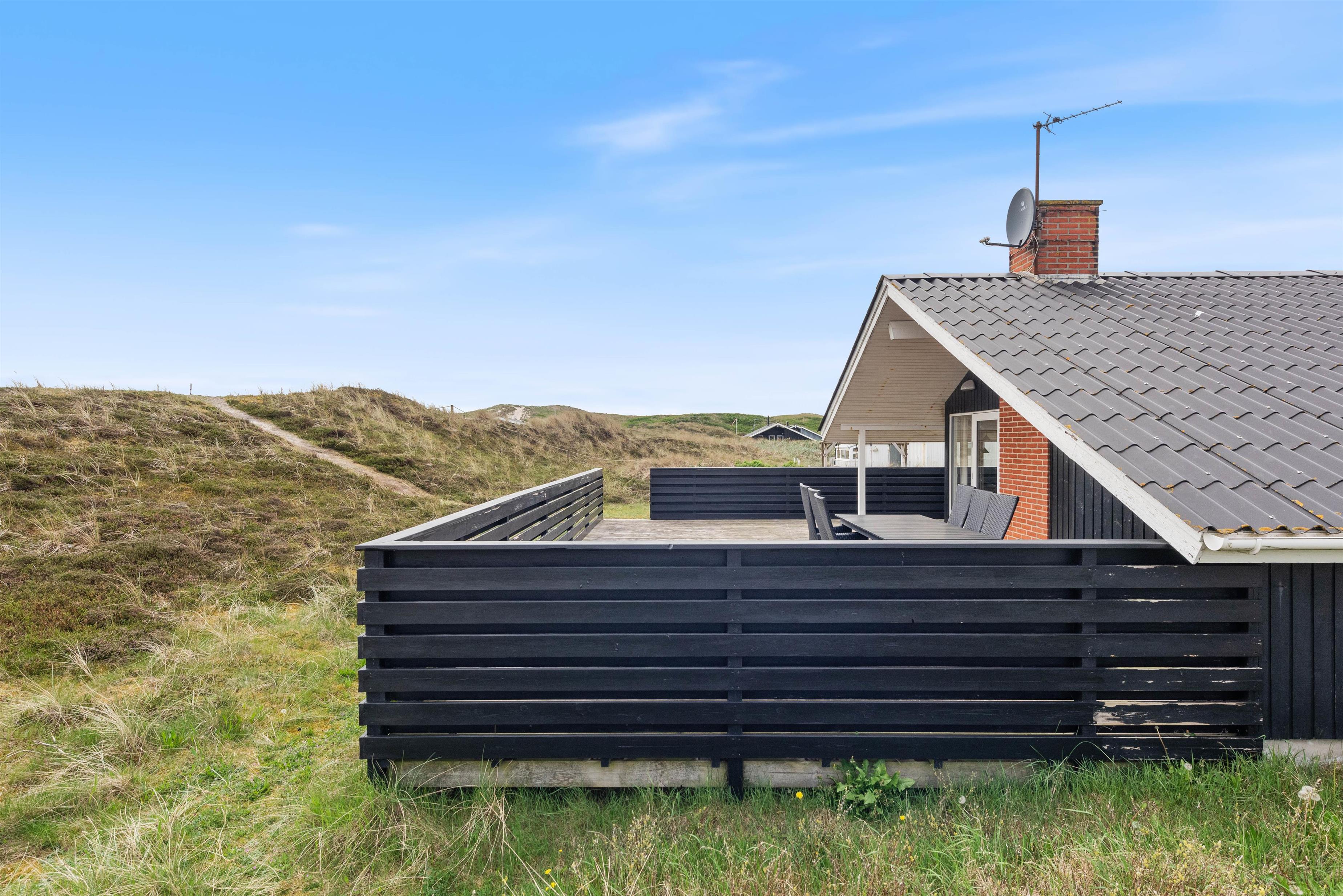 Here you'll find the perfect setting for a wonderful Danish holiday: a bright wooden house in a peaceful location close to the beach. This holiday home is comfortably and pleasantly furnished, and was partially renovated in 2020 - featuring a new bathroom and kitchen. The summer house stands privately on a hilly dune plot with a large fenced terrace. High-speed internet is also provided.