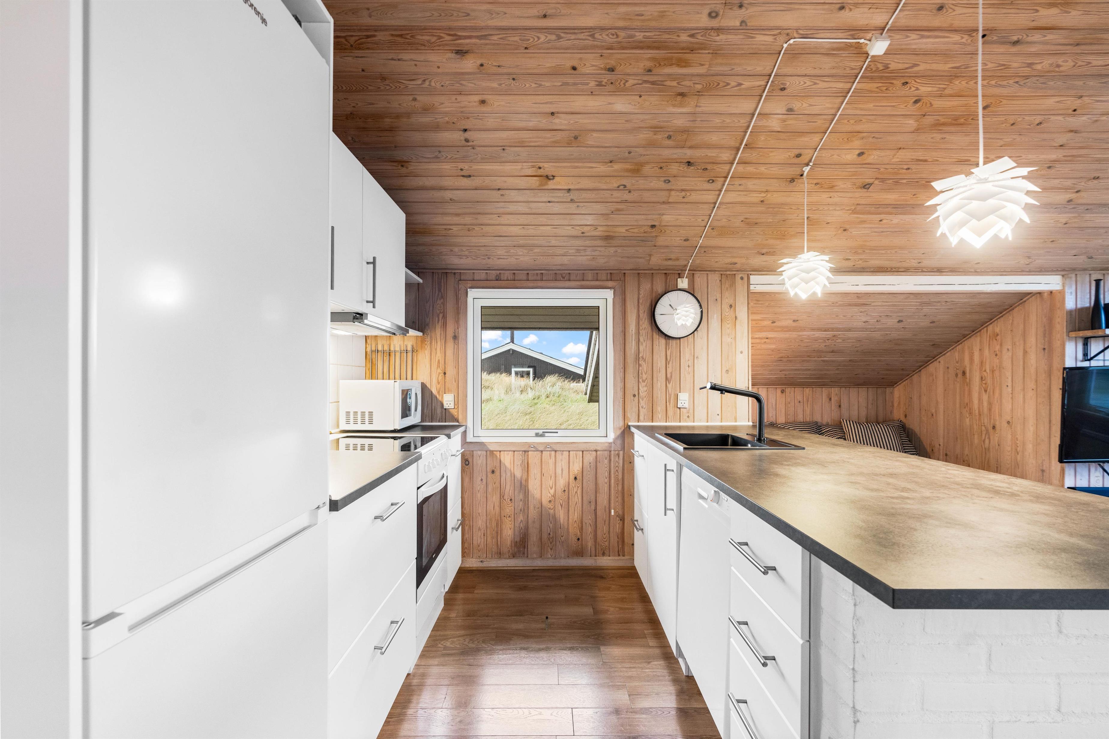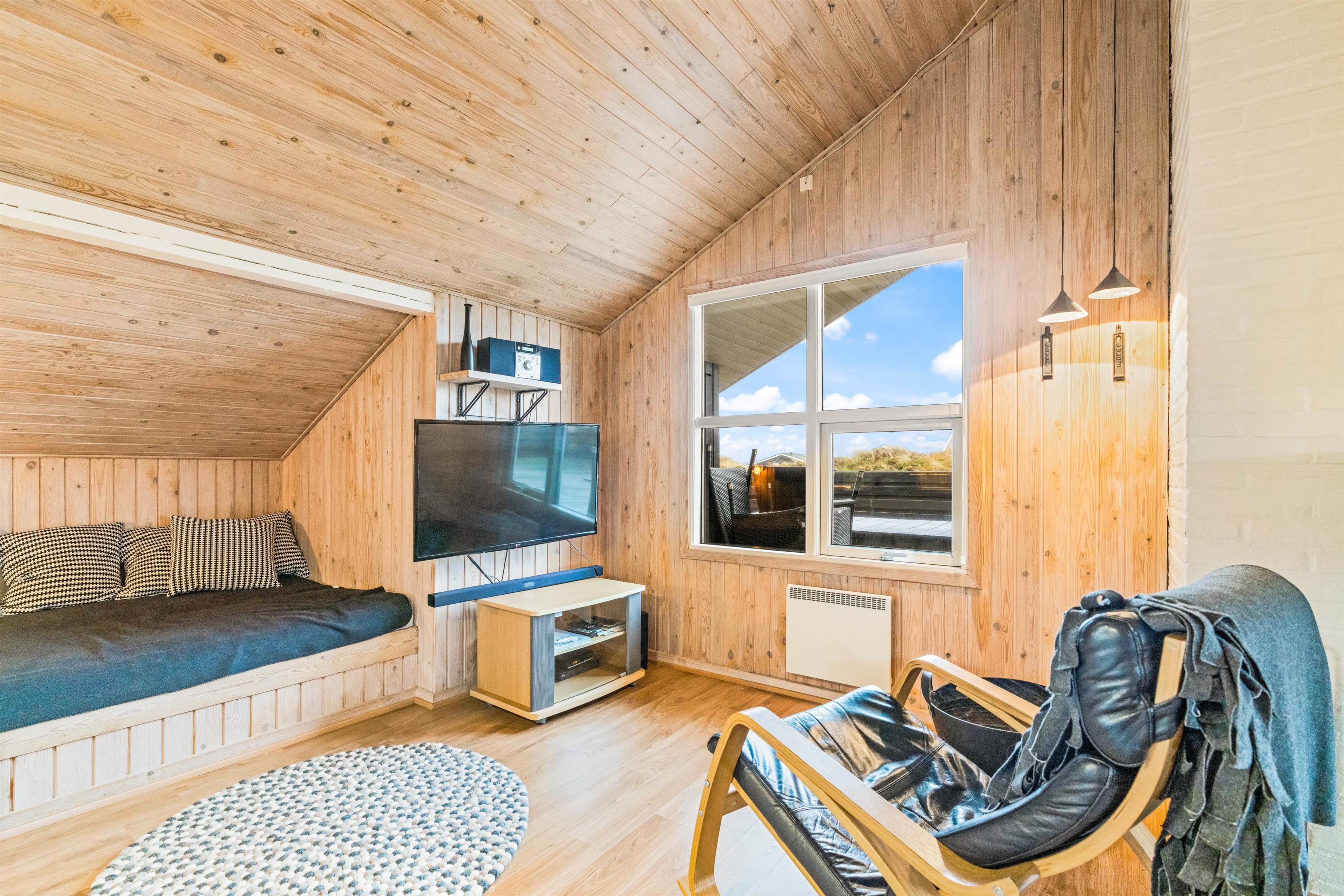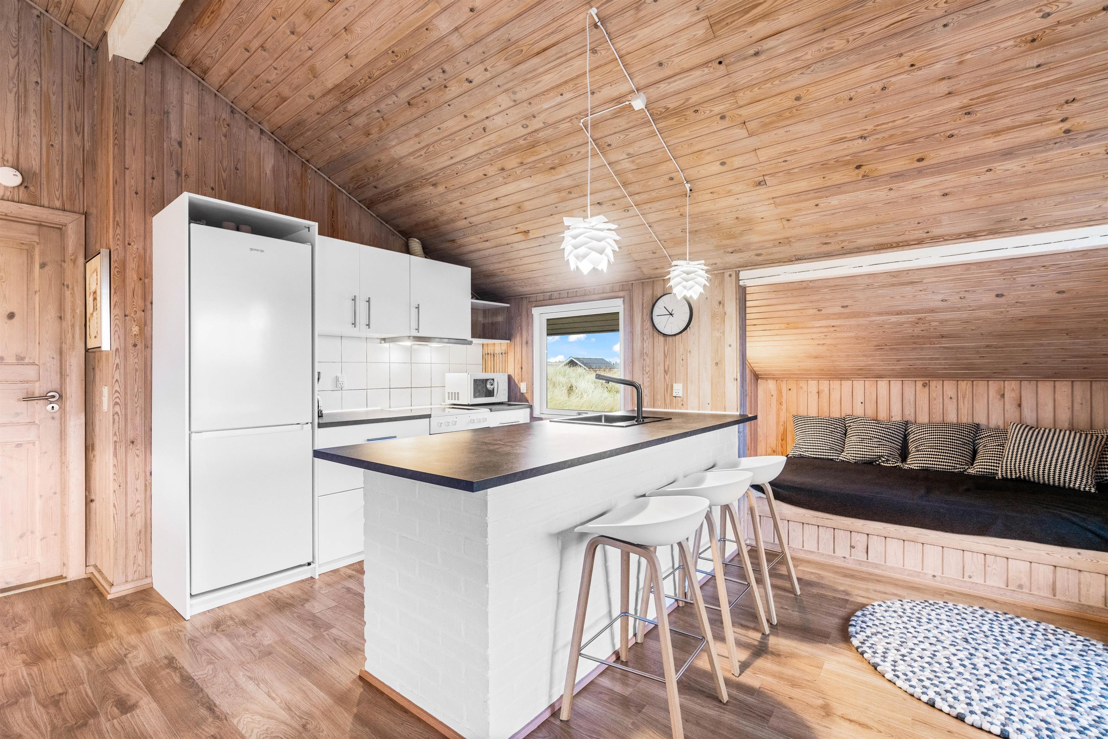 Here you'll find the perfect setting for a wonderful Danish holiday: a bright wooden house in a peaceful location close to the beach. This holiday home is comfortably and pleasantly furnished, and was partially renovated in 2020 - featuring a new bathroom and kitchen. The summer house stands privately on a hilly dune plot with a large fenced terrace. High-speed internet is also provided.